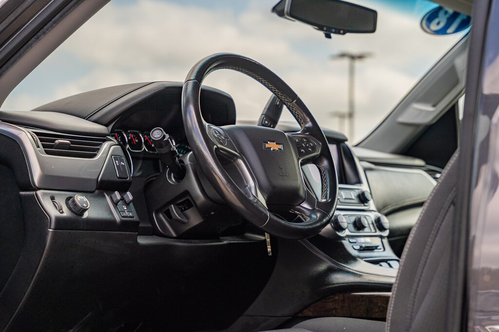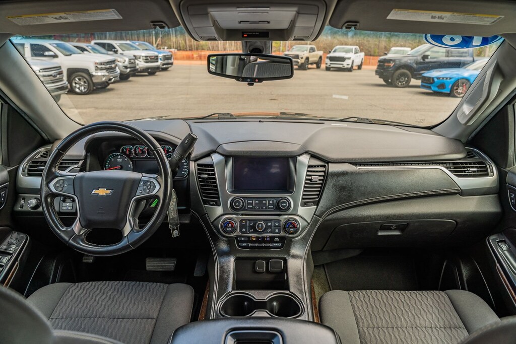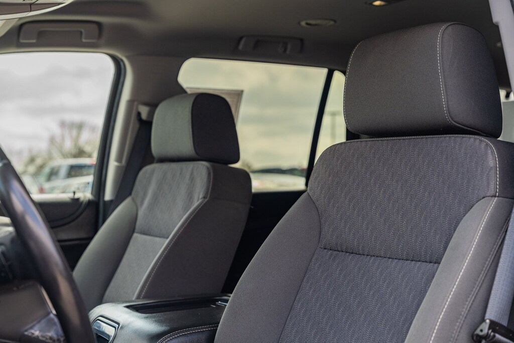 This vehicle comes equipped with Max Trailering Package (Integrated Trailer Brake Controller), Preferred Equipment Group 1LS (1st & 2nd Row Color-Keyed Carpeted Floor Mats, 2nd Row 60/40 Split-Folding Manual Bench, 3rd Row Manual 60/40 Split-Folding Fold Flat Bench, 4-Wheel Antilock Disc Brakes w/Brake Assist, 5 12-Volt Auxiliary Power Outlets, Black Assist Steps, Cargo Net, Color-Keyed Carpeting Floor Covering, Electronic Cruise Control w/Set & Resume Speed, Extended-Range Remote Keyless Entry, Front Passenger 6-Way Power Seat Adjuster, Leather-Wrapped Steering Wheel, OnStar Basic Plan For 5 Years, Rear Park Assist w/Audible Warning, Remote Vehicle Start, Roof-Mounted Luggage Rack Side Rails, and SiriusXM Satellite Radio), Premium Smooth Ride Suspension Package, Standard Suspension Package, Black Cloth, 18" x 8.5" Aluminum Wheels, 3rd row seats: split-bench, 4-Wheel Disc Brakes, 6 Speakers, 6-Speaker Audio System Feature, ABS brakes, Air Conditioning, Alloy wheels, AM/FM radio: SiriusXM, Apple CarPlay/Android Auto, Automatic temperature control, Bluetooth® For Phone, Brake assist, Bumpers: body-color, CD player, Compass, Delay-off headlights, Driver door bin, Driver Inboard & Front Passenger Airbags, Driver vanity mirror, Dual front impact airbags, Dual front side impact airbags, Electronic Stability Control, Emergency communication system: OnStar Guidance, Exterior Parking Camera Rear, Floor Console, Front anti-roll bar, Front Bucket Seats, Front Center Armrest, Front dual zone A/C, Front High-Back Reclining Bucket Seats, Front reading lights, Front wheel independent suspension, Fully automatic headlights, HD Radio, Heated door mirrors, Illuminated entry, Low tire pressure warning, Occupant sensing airbag, Outside temperature display, Overhead airbag, Overhead console, Panic alarm, Passenger door bin, Passenger vanity mirror, Power door mirrors, Power driver seat, Power passenger seat, Power steering, Power windows, Premium audio system: Chevrolet MyLink, Premium Cloth Seat Trim, Radio: Chevrolet MyLink AM/FM Stereo, Rain sensing wipers, Rear air conditioning, Rear anti-roll bar, Rear reading lights, Rear seat center armrest, Rear window defroster, Rear window wiper, Remote keyless entry, Roof rack: rails only, Security system, Single-Slot CD/MP3 Player, Speed control, Speed-sensing steering, Split folding rear seat, Spoiler, Steering wheel mounted audio controls, Tachometer, Tilt steering wheel, Traction control, Trip computer, Variably intermittent wipers, and Voltmeter.