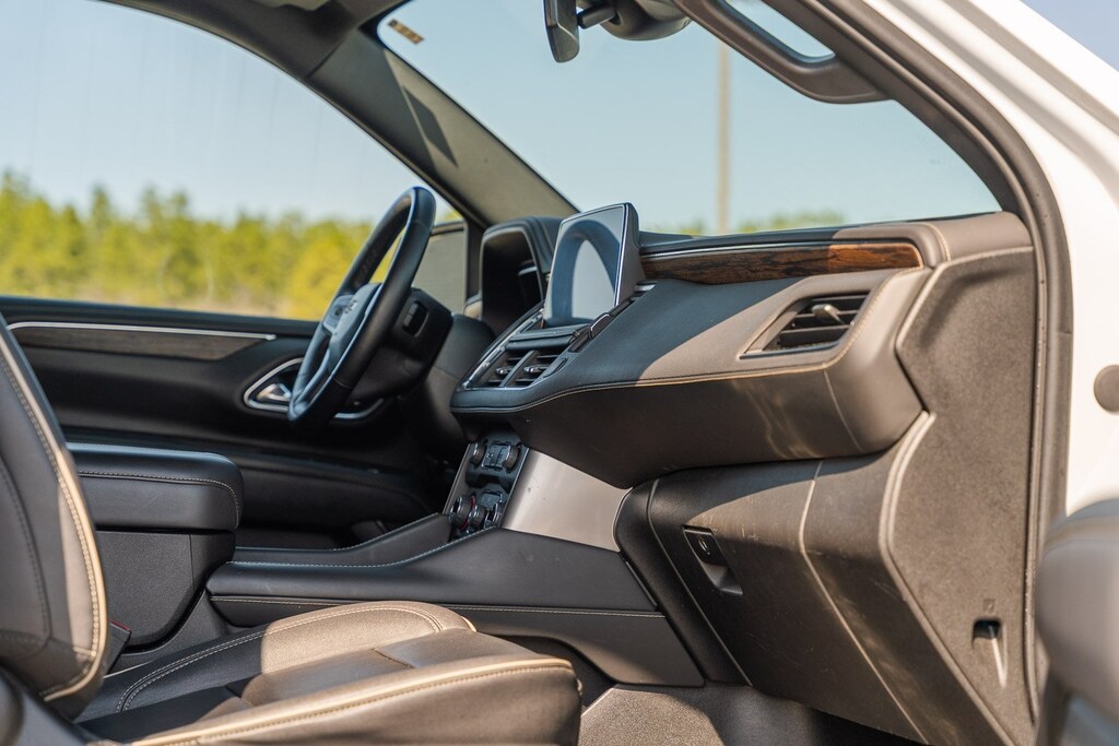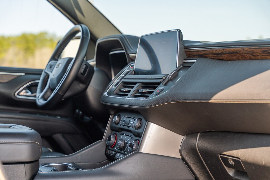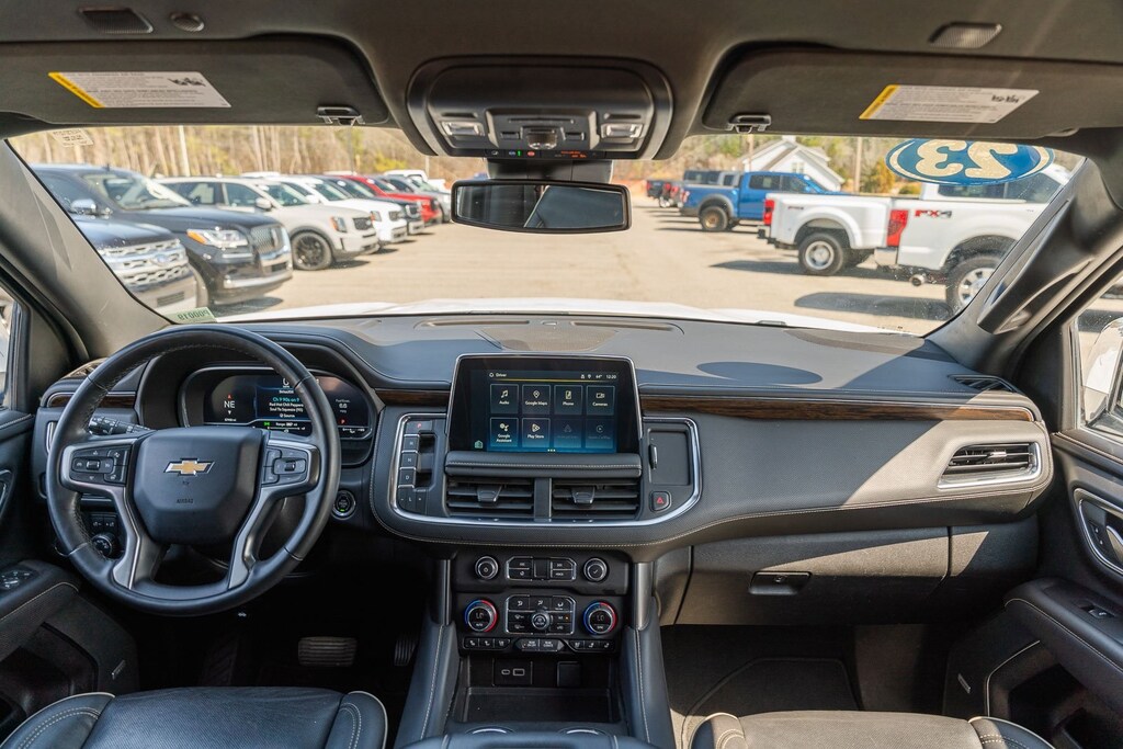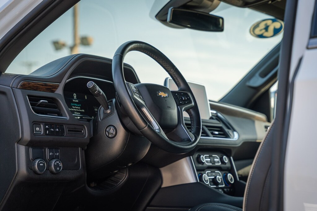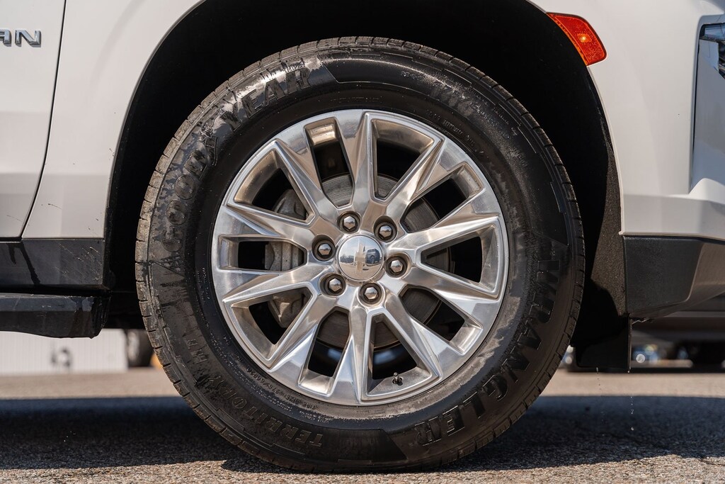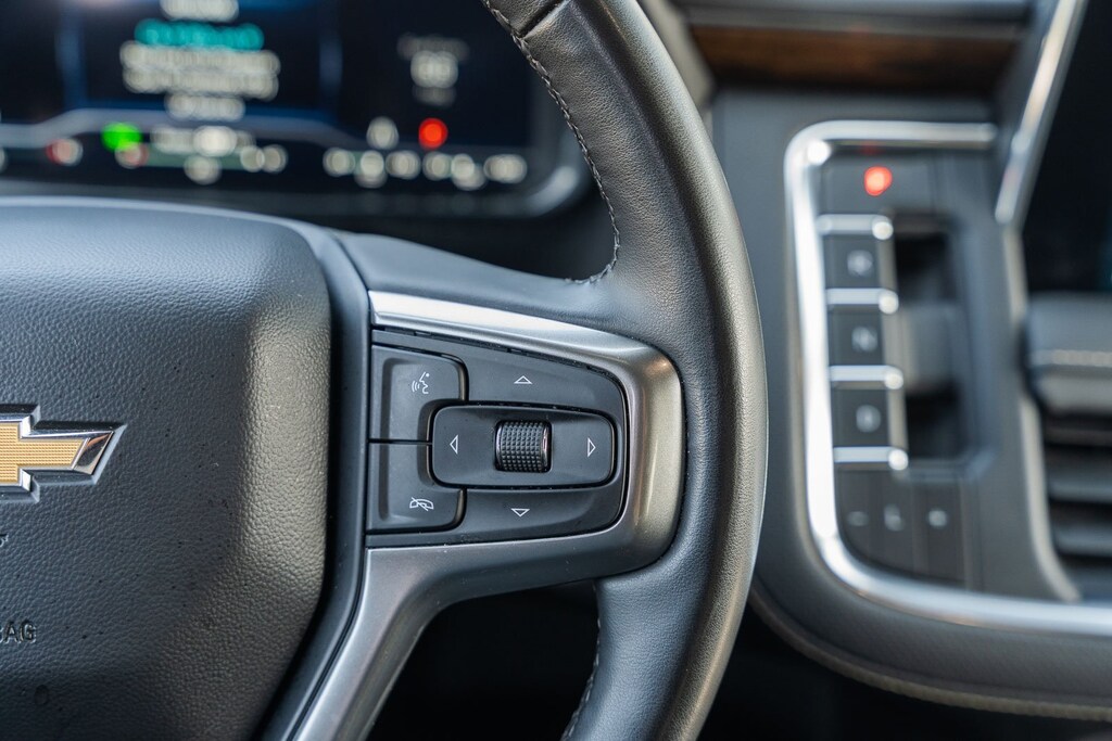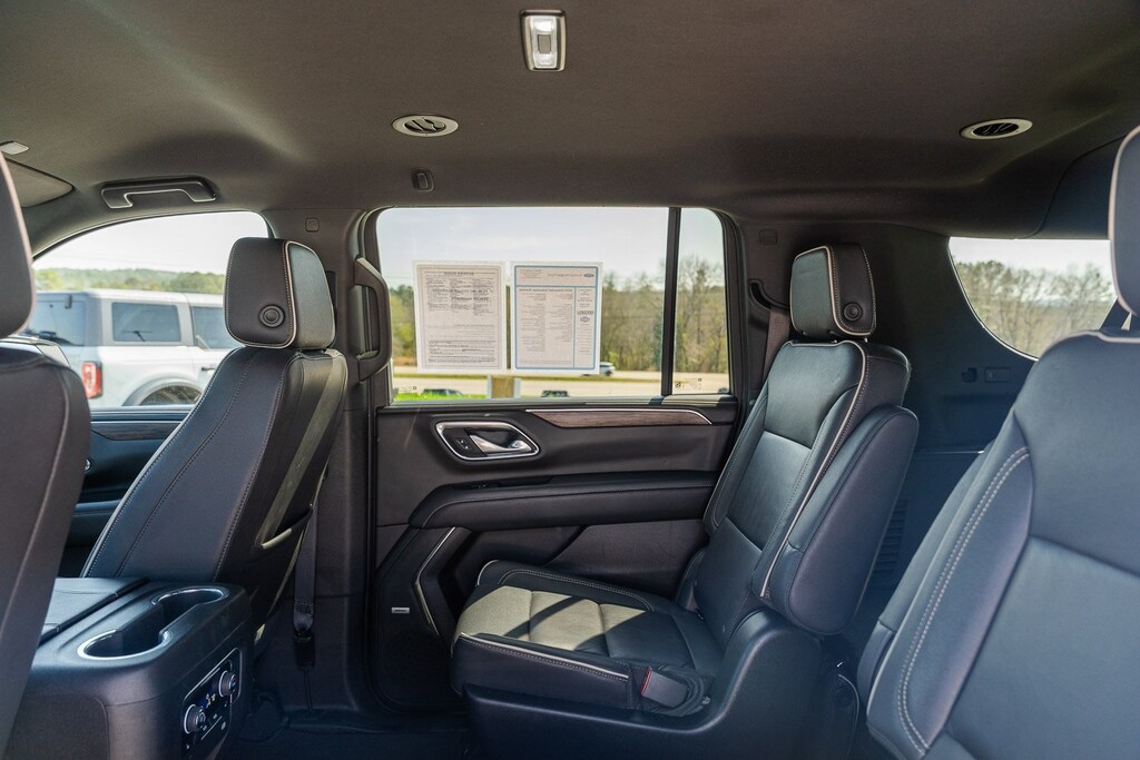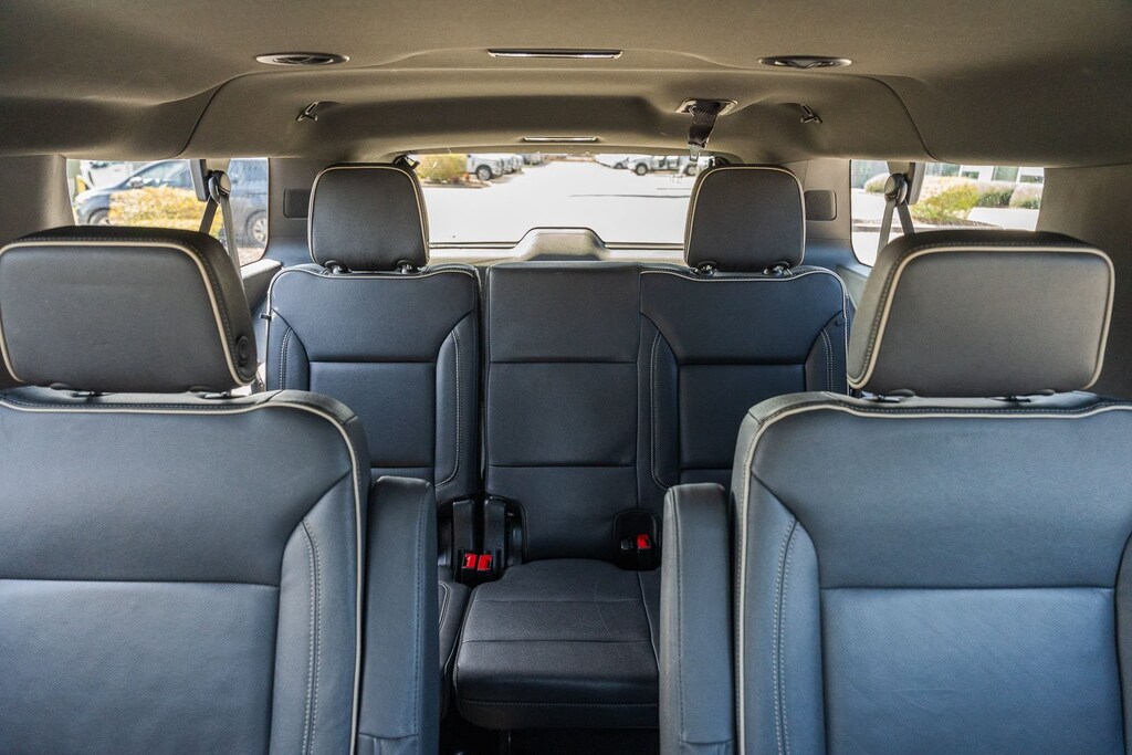 This vehicle comes equipped with Preferred Equipment Group 1LZ (1st & 2nd Row Color-Keyed Carpeted Floor Mats, 3rd Row 60/40 Power-Folding Split-Bench, Auto-Dimming Inside Rear-View Mirror, Bose 10-Speaker Surround w/CenterPoint, Bright Front & Rear Door Sill Plates, Chrome Door Handles w/Body-Color Strip, Chrome Mirror Caps, Color-Keyed Carpeting Floor Covering, Driver & Front Outboard Passenger Airbags, Dual Exhaust System, Enhanced Driver Information Center, Floor Console, Hands-Free Rear Power Programmable Liftgate, Heated & Ventilated Driver & Front Passenger Seats, Heated 2nd Row Outboard Seats, Heated Driver & Front Passenger Seats, Heated Steering Wheel, Infotainment Display, Lane Change Alert w/Side Blind Zone Alert, LED Daytime Running Lamps, Memory Settings, Outside Heated Power-Adjustable Mirrors, Power Release 2nd Row Bucket Seats, Power Tilt & Telescopic Steering Column, Rear Cross Traffic Alert, Remote Start, Safety Alert Seat, SiriusXM Radio w/360L, Universal Home Remote, Wireless Charging, and Wrapped Steering Wheel), GM Certified, 10 Speakers, 20" x 9" Polished Aluminum Wheels, 3.23 Rear Axle Ratio, 3rd row seats: split-bench, 4-Wheel Disc Brakes, ABS brakes, Adaptive suspension, Air Conditioning, Alloy wheels, AM/FM radio: SiriusXM with 360L, Apple CarPlay/Android Auto, Auto High-beam Headlights, Auto-dimming door mirrors, Auto-dimming Rear-View mirror, Auto-leveling suspension, Automatic temperature control, Brake assist, Bumpers: body-color, Compass, Delay-off headlights, Deleted 3 Years of Remote Access, Driver door bin, Driver vanity mirror, Dual front impact airbags, Dual front side impact airbags, Electronic Stability Control, Emergency communication system: OnStar and Chevrolet connected services capable, Four wheel independent suspension, Front anti-roll bar, Front Bucket Seats, Front Center Armrest, Front dual zone A/C, Front reading lights, Fully automatic headlights, Garage door transmitter, Heated door mirrors, Heated front seats, Heated rear seats, Heated steering wheel, Illuminated entry, Low tire pressure warning, Magnetic Ride Control Suspension, Memory seat, Navigation System, Occupant sensing airbag, Outside temperature display, Overhead airbag, Overhead console, Panic alarm, Passenger door bin, Passenger vanity mirror, Perforated Leather Seating Surfaces, Power door mirrors, Power driver seat, Power Liftgate, Power passenger seat, Power steering, Power windows, Premium audio system: Chevrolet Infotainment 3 Premium, Radio: Chevrolet Infotainment 3 Premium System, Rain sensing wipers, Rear air conditioning, Rear anti-roll bar, Rear reading lights, Rear window defroster, Rear window wiper, Remote keyless entry, Roof rack: rails only, Security system, Speed control, Speed-sensing steering, Split folding rear seat, Spoiler, Steering wheel memory, Steering wheel mounted audio controls, Tachometer, Telescoping steering wheel, Tilt steering wheel, Traction control, Trip computer, Turn signal indicator mirrors, Variably intermittent wipers, Ventilated front seats, and Voltmeter.