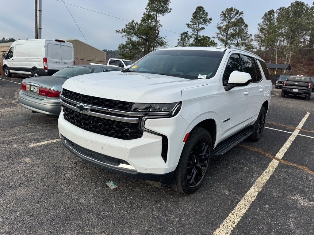 This vehicle comes equipped with License Plate Front Mounting Package, Preferred Equipment Group 1LS (1st & 2nd Row Color-Keyed Carpeted Floor Mats, Color-Keyed Carpeting Floor Covering, Driver & Front Outboard Passenger Airbags, Floor Console w/Storage Area, LED Daytime Running Lamps, Remote Start, SiriusXM Radio w/360L, and Wrapped Steering Wheel), Jet Black Cloth, 3.23 Rear Axle Ratio, 3rd row seats: split-bench, 4-Wheel Disc Brakes, 6 Speakers, 6-Speaker Audio System Feature, ABS brakes, Air Conditioning, Alloy wheels, AM/FM radio: SiriusXM with 360L, Apple CarPlay/Android Auto, Auto High-beam Headlights, Automatic temperature control, Black Name Plates (LPO), Brake assist, Bumpers: body-color, Compass, Delay-off headlights, Driver door bin, Driver vanity mirror, Dual front impact airbags, Dual front side impact airbags, Electronic Stability Control, Emergency communication system: OnStar and Chevrolet connected services capable, Four wheel independent suspension, Front & Rear Black Bowtie Emblems (LPO), Front anti-roll bar, Front Bucket Seats, Front Center Armrest, Front dual zone A/C, Front High-Back Reclining Bucket Seats, Front reading lights, Fully automatic headlights, Heated door mirrors, Illuminated entry, Infotainment Display, Low tire pressure warning, Occupant sensing airbag, Outside temperature display, Overhead airbag, Overhead console, Panic alarm, Passenger door bin, Passenger vanity mirror, Power door mirrors, Power driver seat, Power passenger seat, Power steering, Power windows, Premium Cloth Seat Trim, Premium Smooth Ride Suspension, Radio: Chevrolet Infotainment 3 System, Rain sensing wipers, Rear air conditioning, Rear anti-roll bar, Rear reading lights, Rear seat center armrest, Rear window defroster, Rear window wiper, Remote keyless entry, Roof rack: rails only, Security system, Speed control, Speed-sensing steering, Split folding rear seat, Spoiler, Steering wheel mounted audio controls, Tachometer, Telescoping steering wheel, Tilt steering wheel, Traction control, Trip computer, Variably intermittent wipers, Voltmeter, Wheels: 18" x 8.5" Bright Silver Painted Aluminum, Wheels: 22" Multi-Spoke Gloss Black (LPO) (SRV), and Wheels: 22" x 9" Steel Interim (LPO).