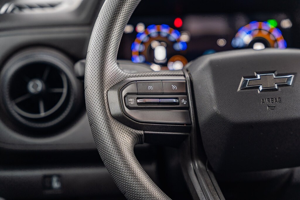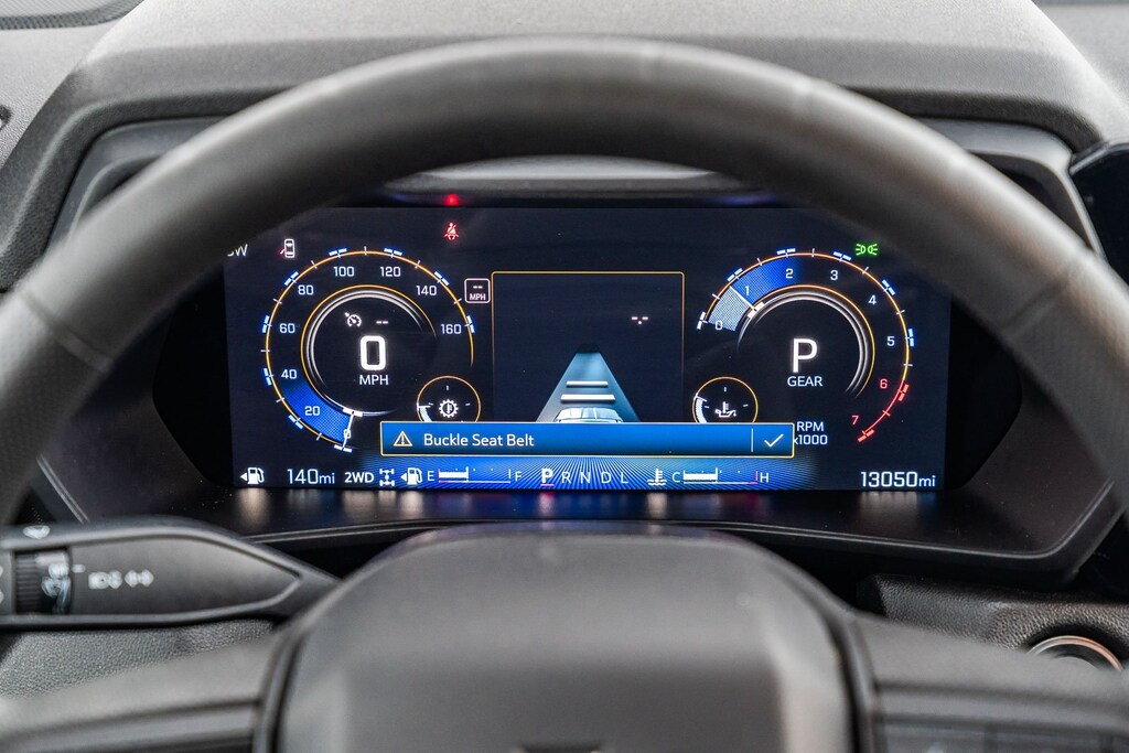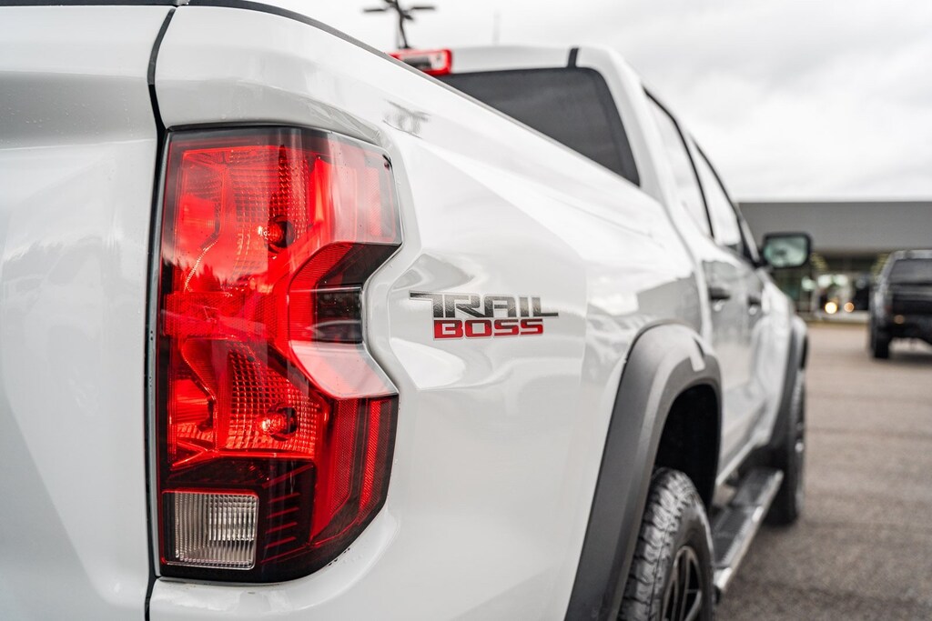 This vehicle comes equipped with Advanced Trailering Package (Trailering App), Heavy-Duty Trailering Package (Integrated Trailer Brake Controller), Preferred Equipment Group 0TR (Automatic Emergency Braking, Chevy Safety Assist, Following Distance Indicator, Forward Collision Alert, Front Pedestrian & Bicyclist Braking, IntelliBeam Automatic High Beam On/Off, and Lane Keep Assist w/Lane Departure Warning), Safety Package (Black Painted Mirror Caps, Heated Power-Adjustable Outside Mirrors, Rear Cross Traffic Braking, and Rear Park Assist), Technology Package (Adaptive Cruise Control, HD Surround Vision, Rear Pedestrian Alert, and Tailgate Keyed Cylinder Lock), Trail Boss Convenience Package (Electronic Automatic Cruise Control, Manual Rear-Sliding Window, and Rear-Window Electric Defogger), Trail Boss Convenience Package II (8-Way Power Driver Seat Adjuster, EZ-Lift & Lower Tailgate, Power Driver Lumbar Control Seat Adjuster, and StowFlex Tailgate Storage Compartment), Ford Blue Certified Eligible Certified, 4WD, 220 Amp Generator, 3.42 Rear Axle Ratio, 4-Way Manual Passenger Seat Adjuster, 4-Wheel Disc Brakes, 6 Speakers, 6-Speaker Audio System Feature, 6-Way Manual Driver Seat Adjuster, ABS brakes, Air Conditioning, All-Weather Floor Mats, Alloy wheels, AM/FM radio: SiriusXM, Apple CarPlay/Android Auto, Auto High-beam Headlights, Black Tailgate Lettering (LPO), Blind Zone Steering Assist w/Trailering, Brake assist, Cargo Area Lamps (LPO), Cloth Seat Trim, Compass, Delay-off headlights, Driver door bin, Driver vanity mirror, Dual front impact airbags, Dual front side impact airbags, Electronic Stability Control, Front anti-roll bar, Front Bucket Seats, Front Center Armrest, Front License Plate Kit, Front wheel independent suspension, Illuminated entry, Low tire pressure warning, Navigation System, Occupant sensing airbag, Outside temperature display, Overhead airbag, Overhead console, Panic alarm, Passenger door bin, Passenger vanity mirror, Power door mirrors, Power steering, Power windows, Radio data system, Radio: 11.3" Diagonal Advanced Color LCD Display, Rear reading lights, Rear step bumper, Remote keyless entry, Remote Start Kit w/2 Key Fobs (LPO), Security system, SiriusXM Radio, Speed-sensing steering, Split folding rear seat, Steering Wheel Mounted Audio Controls, Steering wheel mounted audio controls, Tachometer, Tilt steering wheel, Traction control, Trip computer, Variably intermittent wipers, Wheels: 18" x 8.5" Black High Gloss Aluminum, Wheels: 20" x 9" High Gloss Black Aluminum, and Wireless Phone Projection.