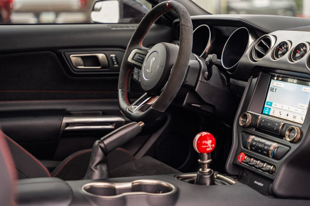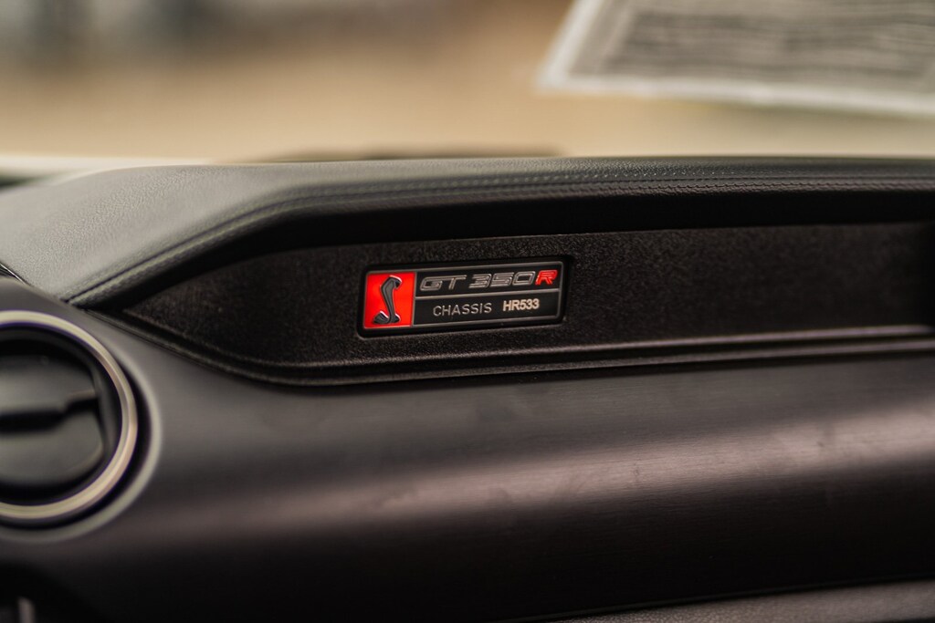 This vehicle comes equipped with GT350R Equipment Group 920A, R Electronics Package (AM/FM Stereo Single CD, Dual-Zone Electronic Automatic Temperature Control, Floor Mats, Rear-View Camera, SiriusXM Satellite Radio, SYNC 3 Communications & Entertainment System, Turn Signal Mirrors, Universal Garage Door Opener (UGDO), and Voice-Activated Touch-Screen Navigation System), R Package (Carbon Fiber Rear Wing, Rear View Camera Delete, SYNC Delete, and Wheels: 19" x 11" Fr & 19" x 11.5" Rr Carbon Fiber), Ford Blue Certified Certified, 4-Wheel Disc Brakes, 6 Speakers, ABS brakes, Air Conditioning, Alloy wheels, AM/FM radio, AM/FM Stereo/Single CD Player, Auto-dimming Rear-View mirror, Block heater, Brake assist, Bumpers: body-color, Compass, Delay-off headlights, Driver door bin, Driver vanity mirror, Dual front impact airbags, Dual front side impact airbags, Electronic Stability Control, Emergency communication system: 911 Assist, Exterior Parking Camera Rear, Four wheel independent suspension, Front anti-roll bar, Front Bucket Seats, Front Center Armrest, Front reading lights, Fully automatic headlights, High-Intensity Discharge Headlights, Illuminated entry, Knee airbag, Low tire pressure warning, Occupant sensing airbag, Outside temperature display, Over-the-Top Racing Stripe, Overhead airbag, Overhead console, Panic alarm, Passenger door bin, Passenger vanity mirror, Power door mirrors, Power steering, Power windows, Radio data system, Rear anti-roll bar, Rear window defroster, RECARO Cloth/Miko Suede Sport Seats, Remote keyless entry, Security system, Speed control, Speed-sensing steering, Speed-Sensitive Wipers, Split folding rear seat, Spoiler, Sport steering wheel, Steering wheel mounted audio controls, SYNC Communications & Entertainment System, Tachometer, Telescoping steering wheel, Tilt steering wheel, Traction control, Trip computer, Variably intermittent wipers, Voltmeter, Weathershield Full Vehicle Cover (Dealer Installed), and Wheels: 19" x 10.5" Fr/19" x 11" Rr Ebony Black.