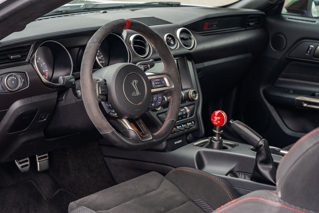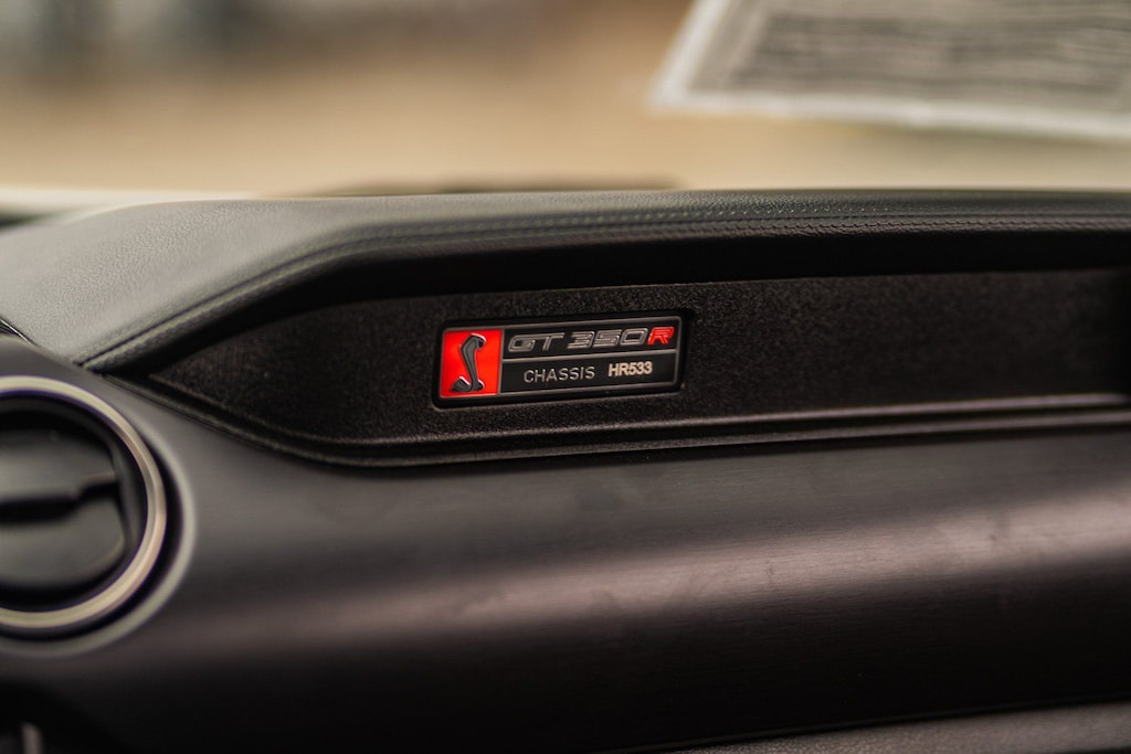 This vehicle comes equipped with R Package (Carbon Fiber Rear Wing, Rear View Camera Delete, SYNC Delete, and Wheels: 19" x 11" Fr & 19" x 11.5" Rr Carbon Fiber), Mustang Shelby GT350R R, Ford Blue Certified Certified, ABS brakes, Alloy wheels, Compass, Electronic Stability Control, Illuminated entry, Low tire pressure warning, Remote keyless entry, Traction control, 4-Wheel Disc Brakes, 6 Speakers, Air Conditioning, AM/FM radio, AM/FM Stereo/Single CD Player, Auto-dimming Rear-View mirror, Block heater, Brake assist, Bumpers: body-color, Delay-off headlights, Driver door bin, Driver vanity mirror, Dual front impact airbags, Dual front side impact airbags, Emergency communication system: 911 Assist, Exterior Parking Camera Rear, Four wheel independent suspension, Front anti-roll bar, Front Bucket Seats, Front Center Armrest, Front reading lights, Fully automatic headlights, High-Intensity Discharge Headlights, Knee airbag, Occupant sensing airbag, Outside temperature display, Overhead airbag, Overhead console, Panic alarm, Passenger door bin, Passenger vanity mirror, Power door mirrors, Power steering, Power windows, Radio data system, Rear anti-roll bar, Rear window defroster, RECARO Cloth/Miko Suede Sport Seats, Security system, Speed control, Speed-sensing steering, Speed-Sensitive Wipers, Split folding rear seat, Spoiler, Sport steering wheel, Steering wheel mounted audio controls, SYNC Communications & Entertainment System, Tachometer, Telescoping steering wheel, Tilt steering wheel, Trip computer, Variably intermittent wipers, Voltmeter, and Wheels: 19" x 10.5" Fr/19" x 11" Rr Ebony Black.