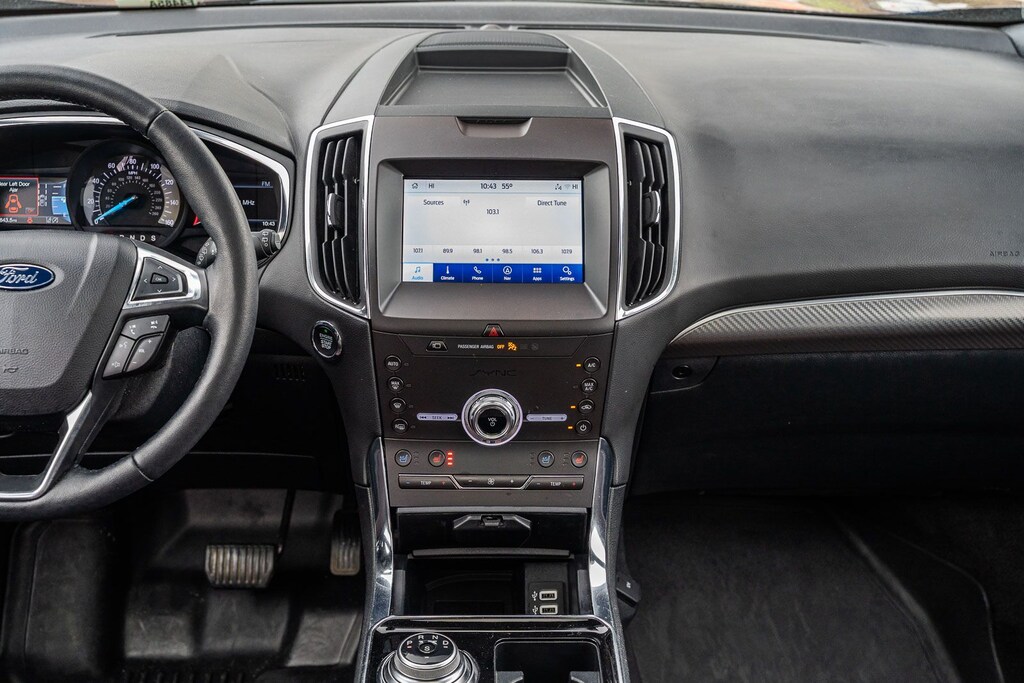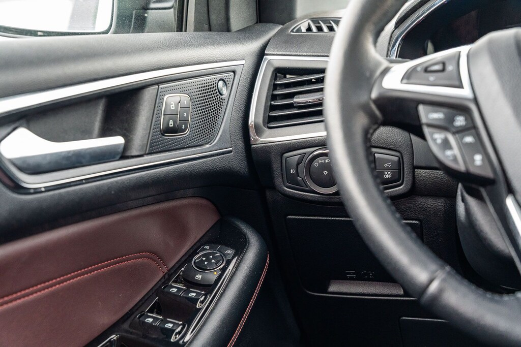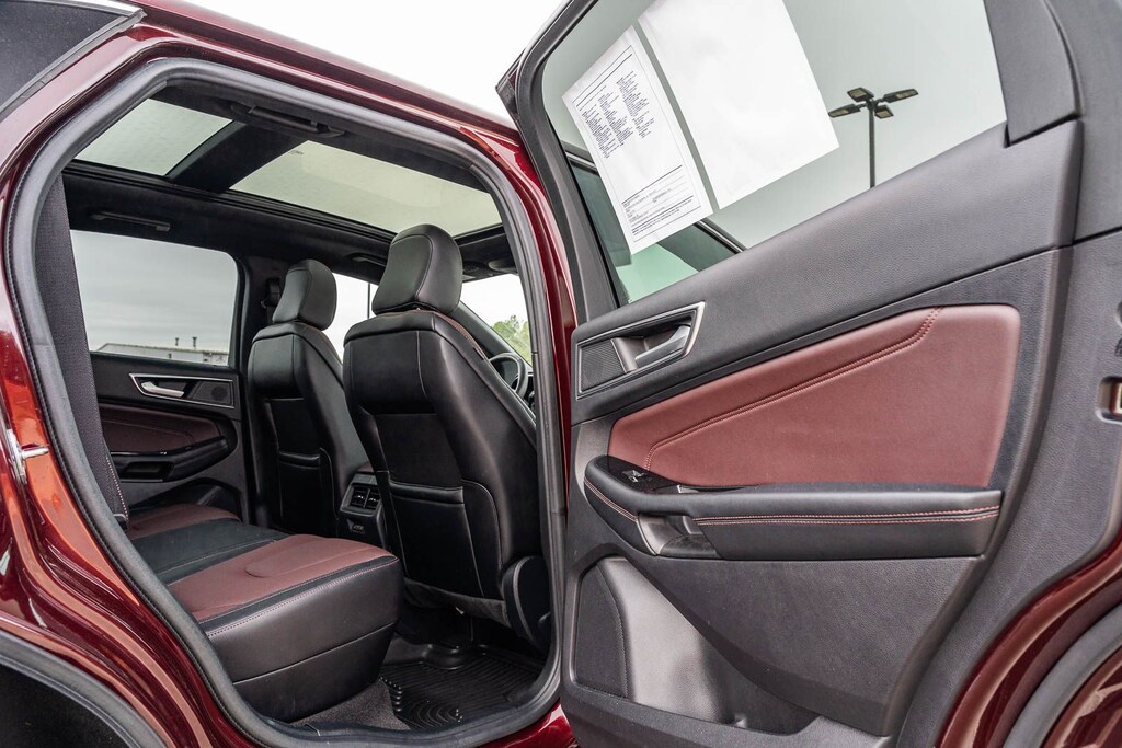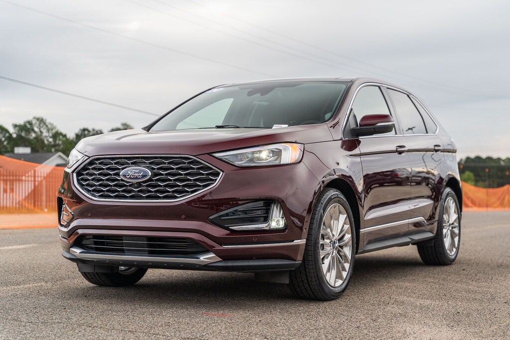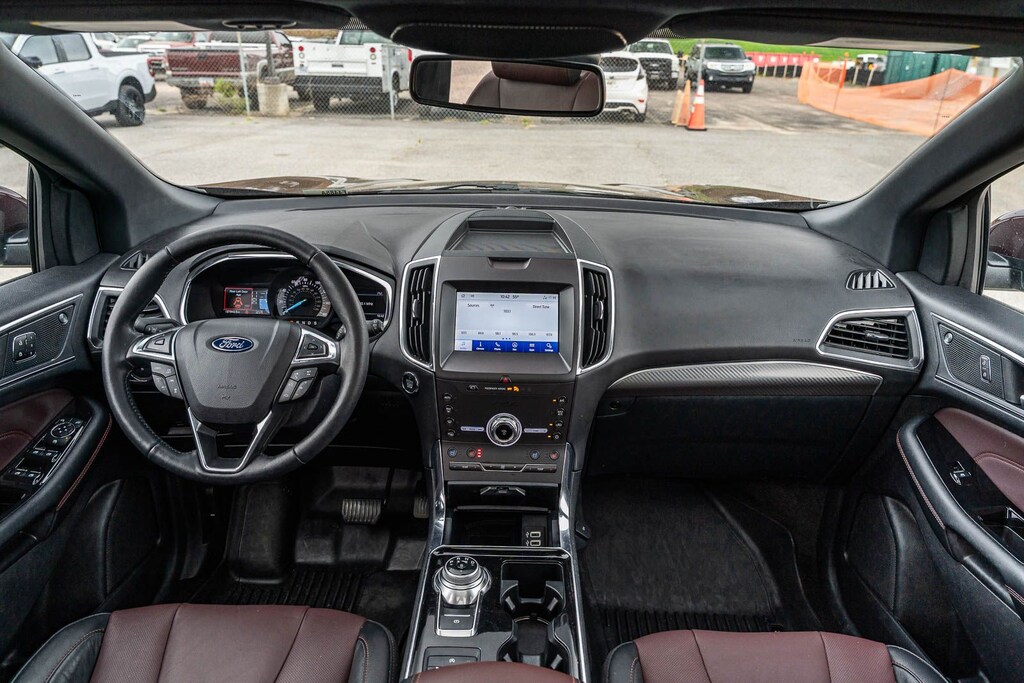 This vehicle comes equipped with Equipment Group 301A (Adaptive Cruise Control w/Stop & Go, Adaptive LED Headlamps, Auto-Dimming Driver's Sideview Mirror, Enhanced Active Park Assist, Evasive Steering Assist, Front 180-Degree Camera w/Split View & Washer, Heated Rear Seats, Lane Centering, Leather-Trimmed Heated/Cooled Sport Bucket Seats, Panoramic Vista Roof, SiriusXM Traffic & Travel Link, and Voice-Activated Touchscreen Navigation System), Titanium Elite Package (20" Polished Aluminum Wheels, Bright Chrome Accents & Surround Upper Grille, Brunello w/Brick Red Accent Stitching Door Inserts, Front & Rear Floor Mats, and Intrecciato Bright Alum Instrument Panel Appliques), Ford Certified, 12 Speakers, 3.80 Axle Ratio, 4-Wheel Disc Brakes, ABS brakes, Air Conditioning, Alloy wheels, AM/FM radio: SiriusXM, Auto High-beam Headlights, Auto tilt-away steering wheel, Auto-dimming Rear-View mirror, Automatic temperature control, Brake assist, Bumpers: body-color, Compass, Delay-off headlights, Driver door bin, Driver vanity mirror, Dual front impact airbags, Dual front side impact airbags, Electronic Stability Control, Emergency communication system: SYNC 3 911 Assist, FordPass Connect, Four wheel independent suspension, Front anti-roll bar, Front Bucket Seats, Front Center Armrest w/Storage, Front dual zone A/C, Front fog lights, Front reading lights, Fully automatic headlights, Garage door transmitter, Heated door mirrors, Heated front seats, Heated steering wheel, Illuminated entry, Knee airbag, Leather-Trimmed Heated Sport Bucket Seats, Low tire pressure warning, Memory seat, Occupant sensing airbag, Outside temperature display, Overhead airbag, Overhead console, Panic alarm, Passenger door bin, Passenger vanity mirror, Power door mirrors, Power driver seat, Power Liftgate, Power passenger seat, Power steering, Power windows, Radio: B&O Sound System by Bang & Olufsen, Rain sensing wipers, Rear anti-roll bar, Rear reading lights, Rear seat center armrest, Rear window defroster, Rear window wiper, Remote keyless entry, Roof rack: rails only, Security system, SiriusXM Radio, Speed control, Speed-Sensitive Wipers, Split folding rear seat, Spoiler, Steering wheel memory, Steering wheel mounted audio controls, SYNC 3 Communications & Entertainment System, Tachometer, Telescoping steering wheel, Tilt steering wheel, Traction control, Trip computer, Turn signal indicator mirrors, Variably intermittent wipers, and Wheels: 19" Luster Nickel-Painted Aluminum.