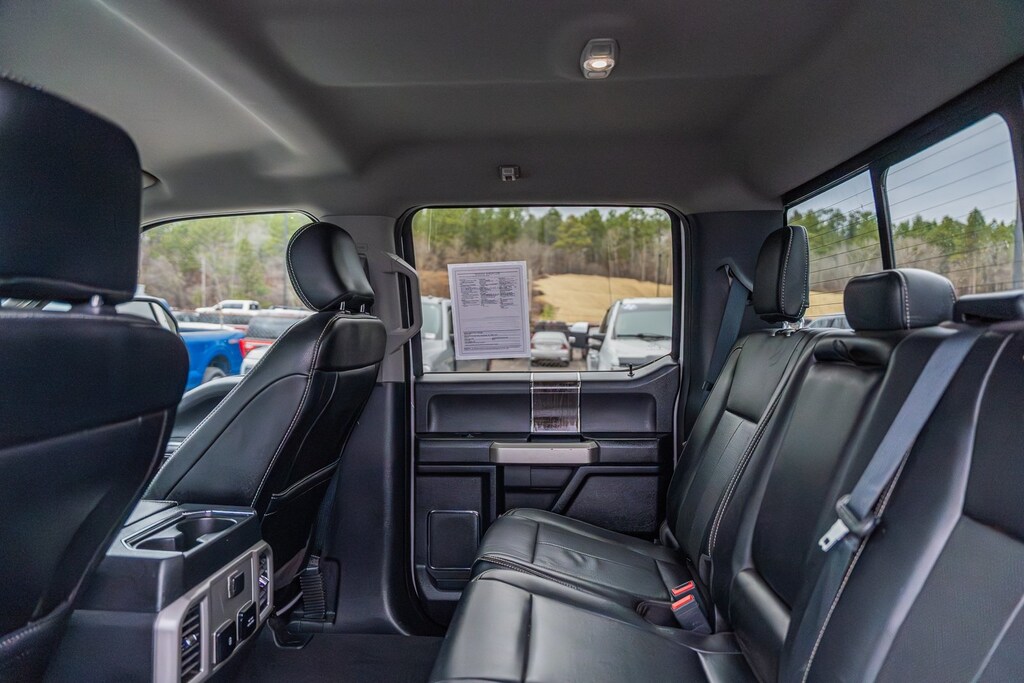 This vehicle comes equipped with FX4 Off-Road Package (Hill Descent Control, Off-Road Specifically Tuned Shock Absorbers, and Unique FX4 Off-Road Box Decal), GVWR: 10,000 lb Payload Package, High Capacity Trailer Tow Package, Lariat Value Package (Easy Entry®/Exit Memory Driver's Seat Feature, LED Box Lighting, Memory Power-Adjustable Pedals, Power Heated/Ventilated Driver Seat w/Memory, Power Heated/Ventilated Passenger Seat, PowerScope Trailer Tow Mirrors w/Memory, and Remote Start System), Order Code 608A, Ford Blue Certified Certified, 4WD, 10 Speakers, 110V/400W Outlet, 4-Wheel Disc Brakes, 6" Angular Chrome Step Bar, ABS brakes, Adjustable pedals, Air Conditioning, Alloy wheels, AM/FM radio: SiriusXM, Auto High-beam Headlights, Auto-dimming Rear-View mirror, Automatic temperature control, Brake assist, Bumpers: chrome, Compass, Delay-off headlights, Driver door bin, Driver vanity mirror, Dual front impact airbags, Dual front side impact airbags, Electronic Stability Control, Emergency communication system: SYNC 3 911 Assist, Engine Block Heater, Exterior Parking Camera Rear, Flow-Through Console, Front anti-roll bar, Front Bucket Seats, Front Center Armrest, Front dual zone A/C, Front fog lights, Front Leather Seating Surfaces 40/Console/40, Front reading lights, Front Wheel Well Liners (Pre-Installed), Fully automatic headlights, Heated door mirrors, Illuminated entry, Leather steering wheel, Low tire pressure warning, Outside temperature display, Overhead airbag, Overhead console, Panic alarm, Passenger door bin, Passenger vanity mirror, Power door mirrors, Power driver seat, Power passenger seat, Power steering, Power windows, PowerScope Trailer Tow Mirrors w/Heat, Radio data system, Radio: B&O System by Bang & Olufsen, Rear Parking Sensors, Rear reading lights, Rear seat center armrest, Rear step bumper, Rear window defroster, Remote keyless entry, Security system, SiriusXM Radio, Speed control, Split folding rear seat, Steering wheel mounted audio controls, SYNC 3 Communications & Entertainment System, Tachometer, Tailgate Step & Handle, Telescoping steering wheel, Tilt steering wheel, Traction control, Trip computer, Turn signal indicator mirrors, Upfitter Switches (6), Variably intermittent wipers, Wheels: 18" Bright Machined Cast Aluminum, and Wheels: 20" Bright Machined Cast Aluminum.