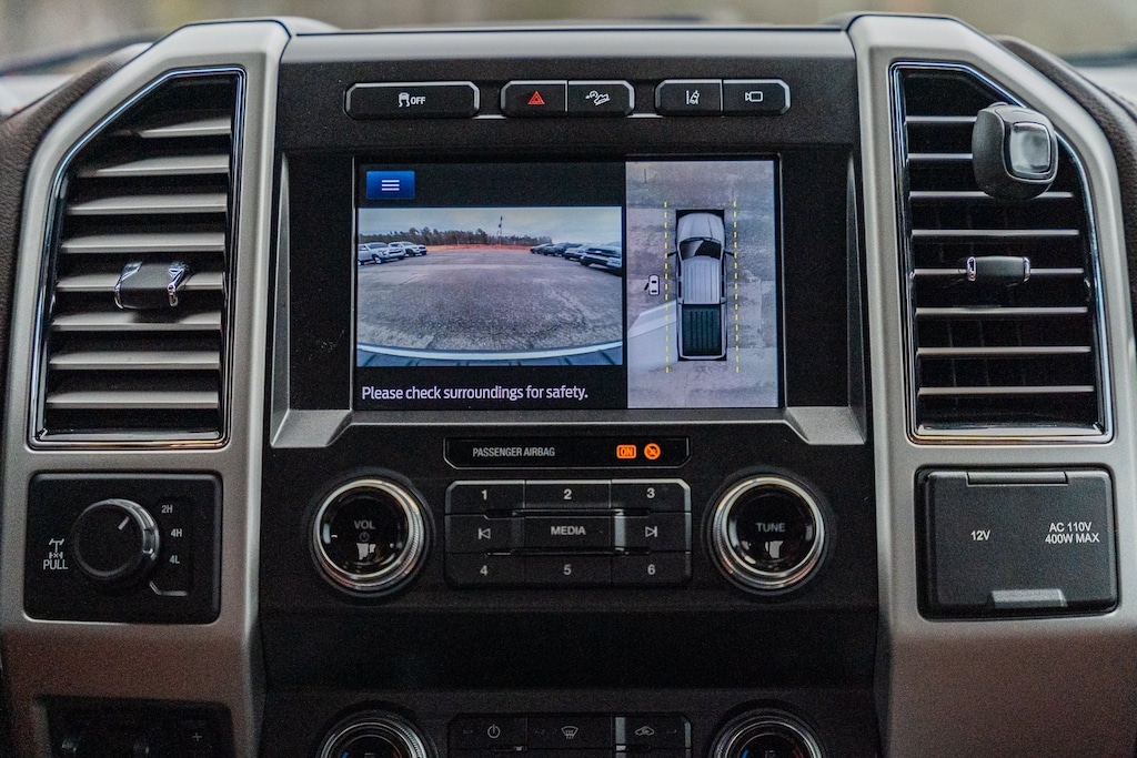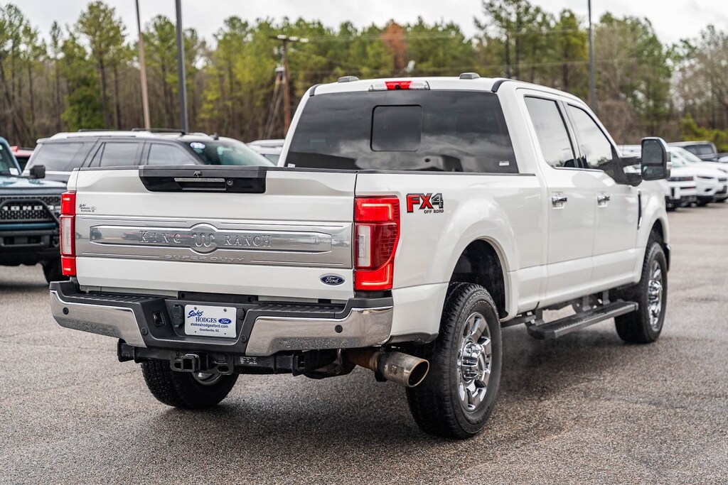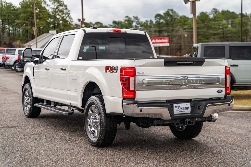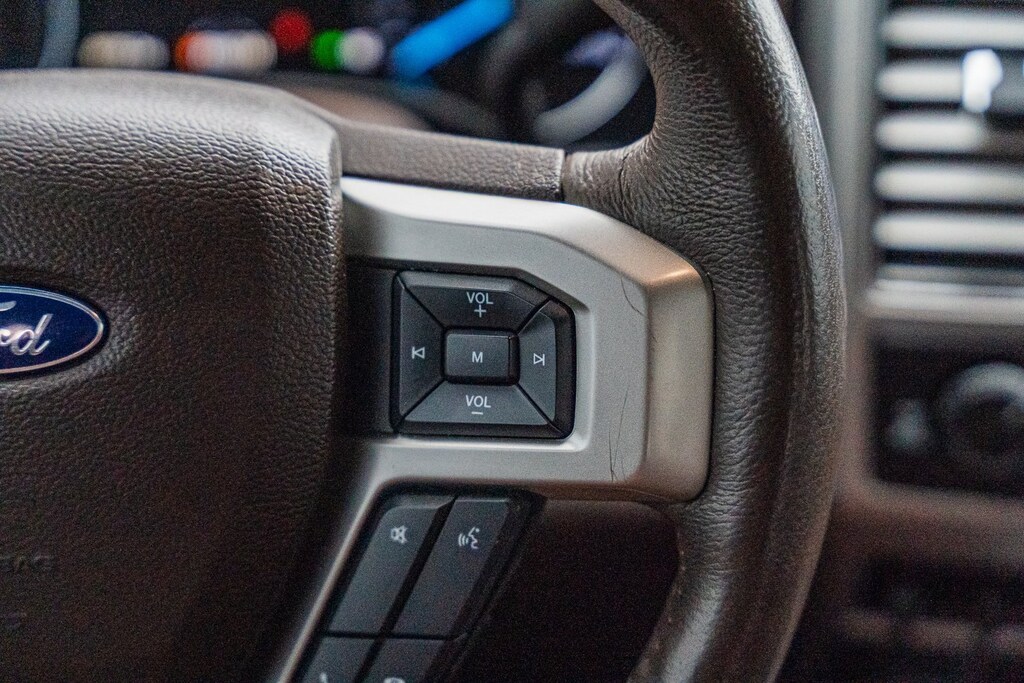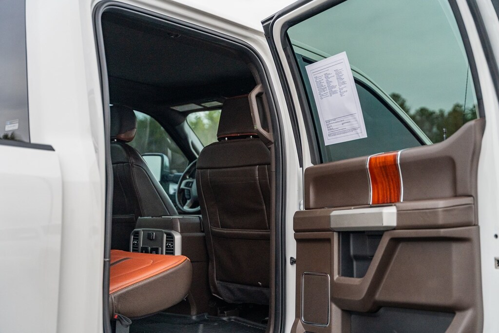This vehicle comes equipped with GVWR: 10,000 lb Payload Package, Ford Blue Certified Certified, 4WD, ABS brakes, Alloy wheels, Compass, Electronic Stability Control, Front dual zone A/C, Heated door mirrors, Heated front seats, Illuminated entry, Low tire pressure warning, Navigation System, Remote keyless entry, Traction control, 10 Speakers, 110V/400W Outlet, 3.73 Axle Ratio, 4-Wheel Disc Brakes, Adjustable pedals, Air Conditioning, AM/FM radio: SiriusXM, Auto High-beam Headlights, Auto tilt-away steering wheel, Auto-dimming Rear-View mirror, Automatic temperature control, Brake assist, Delay-off headlights, Driver door bin, Driver vanity mirror, Dual front impact airbags, Dual front side impact airbags, Emergency communication system: SYNC 3 911 Assist, Exterior Parking Camera Rear, Flow-Through Console, Front anti-roll bar, Front Bucket Seats, Front Center Armrest, Front fog lights, Front reading lights, Fully automatic headlights, Garage door transmitter, Heated steering wheel, Illuminated running boards, Leather steering wheel, Memory seat, Outside temperature display, Overhead airbag, Overhead console, Panic alarm, Passenger door bin, Passenger vanity mirror, Pedal memory, Power door mirrors, Power driver seat, Power passenger seat, Power steering, Power windows, PowerScope Trailer Tow Mirrors w/Heat, Radio data system, Radio: B&O System by Bang & Olufsen, Rain sensing wipers, Rear Parking Sensors, Rear reading lights, Rear seat center armrest, Rear step bumper, Rear window defroster, Security system, SiriusXM Radio, Speed control, Split folding rear seat, Steering wheel memory, Steering wheel mounted A/C controls, Steering wheel mounted audio controls, SYNC 3 Communications & Entertainment System, Tachometer, Telescoping steering wheel, Tilt steering wheel, Trip computer, Turn signal indicator mirrors, Unique King Ranch Leather 40/Console/40 Front Seats, Variably intermittent wipers, Ventilated front seats, and Wheels: 18" Bright Machined Cast Aluminum.