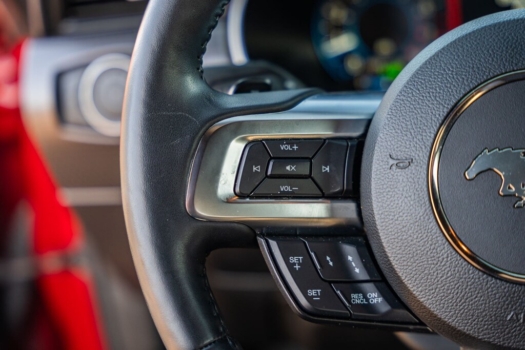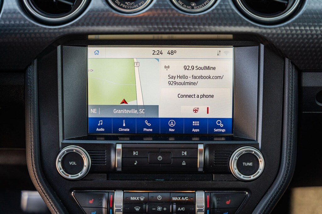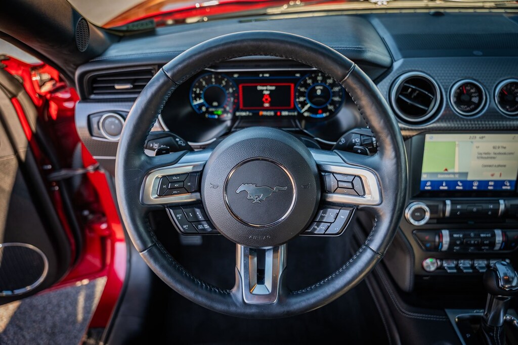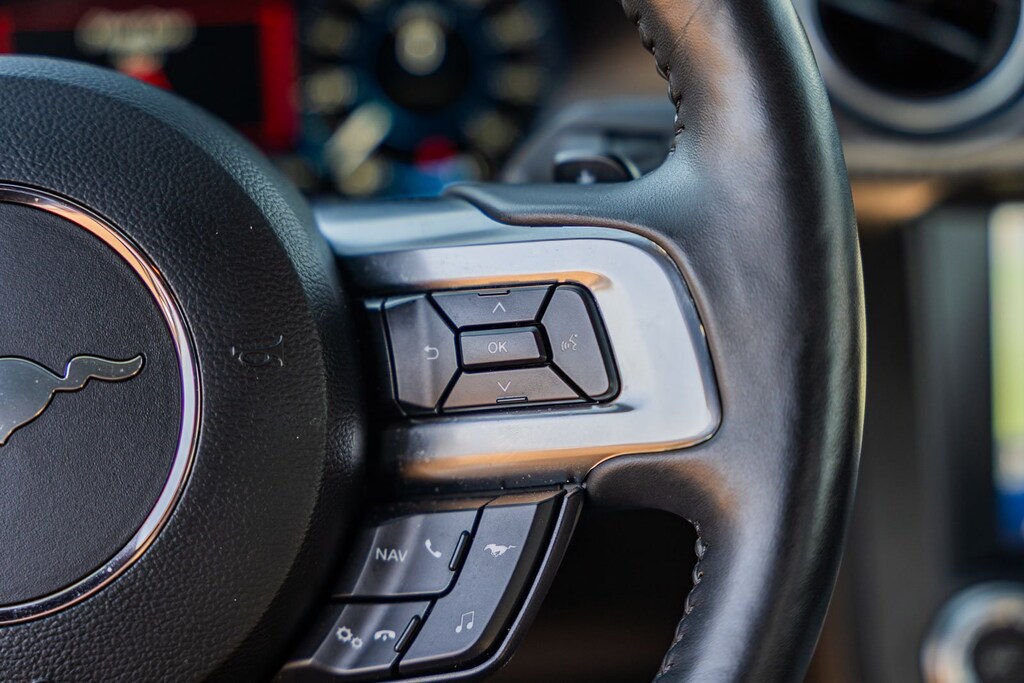 This vehicle comes equipped with 2.3L High Performance Package (3.55 Limited Slip Rear Axle, Active Valve Performance Exhaust, Engine Spun Aluminum Instrument Panel, Gauge Pack (Oil Pressure & Boost), Heavy-Duty Front Springs, Larger Brake Rotors, Larger Radiator, Magnetic Exterior Mirror, Magnetic Raised Blade Decklid Spoiler, and Wheels: 19" x 9" Machined-Face Aluminum), Ecoboost Handling Package (19" x 9.5" Premium Painted Aluminum Wheels, MagneRide Damping System, and Premium Brakes), Enhanced Security Package (Active Anti-Theft System and Wheel Locking Kit), Equipment Group 201A (Blind Spot Info System w/Cross-Traffic Alert, Leather Bucket Seats w/Color Accents, and Memory Driver Seat, Mirrors & Ambient Lighting), Ford Safe & Smart Package (Adaptive Cruise Control, Automatic High Beam, Lane-Keeping System, Pre-Collision Assist w/Pedestrian Detection, and Rain-Sensing Windshield Wipers), Premium Plus Package (12" LCD Digital Instrument Cluster w/MyColor, Heated Steering Wheel, and Voice-Activated Touch-Screen Navigation System), 4-Wheel Disc Brakes, 9 Speakers, ABS brakes, Air Conditioning, Alloy wheels, AM/FM radio: SiriusXM, AM/FM Stereo, Auto-dimming Rear-View mirror, Automatic temperature control, Brake assist, Bumpers: body-color, Climate Controlled Heated/Cooled Front Seats, Compass, Delay-off headlights, Driver door bin, Driver vanity mirror, Dual front impact airbags, Dual front side impact airbags, Electronic Stability Control, Emergency communication system: 911 Assist, Exterior Parking Camera Rear, Four wheel independent suspension, Front anti-roll bar, Front Bucket Seats, Front Center Armrest, Front dual zone A/C, Front fog lights, Front reading lights, Fully automatic headlights, Garage door transmitter, HD Radio, Heated door mirrors, Heated front seats, Illuminated entry, Knee airbag, Leather Bucket Seats, Leather Shift Knob, Linked Graphite Aluminum Instrument Panel, Low tire pressure warning, Metallic Gray Hood Accent Stripe, Occupant sensing airbag, Outside temperature display, Overhead airbag, Overhead console, Panic alarm, Passenger door bin, Passenger vanity mirror, Power door mirrors, Power driver seat, Power passenger seat, Power steering, Power windows, Premium Floor Mats w/Accent Stitch, Radio data system, Radio: B&O Sound System by Bang & Olufsen, Rear anti-roll bar, Rear window defroster, Remote keyless entry, Security system, SiriusXM Radio, Speed control, Speed-sensing steering, Speed-Sensitive Wipers, Split folding rear seat, Spoiler, Steering wheel mounted audio controls, SYNC 3 Communications & Entertainment System, Tachometer, Telescoping steering wheel, Tilt steering wheel, Traction control, Trip computer, Turn signal indicator mirrors, Variably intermittent wipers, Ventilated front seats, Voltmeter, and Wheels: 18" x 8" Machined-Face Aluminum.
