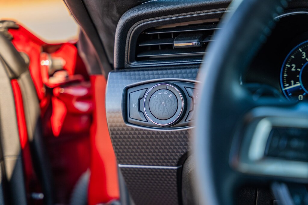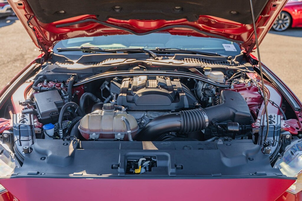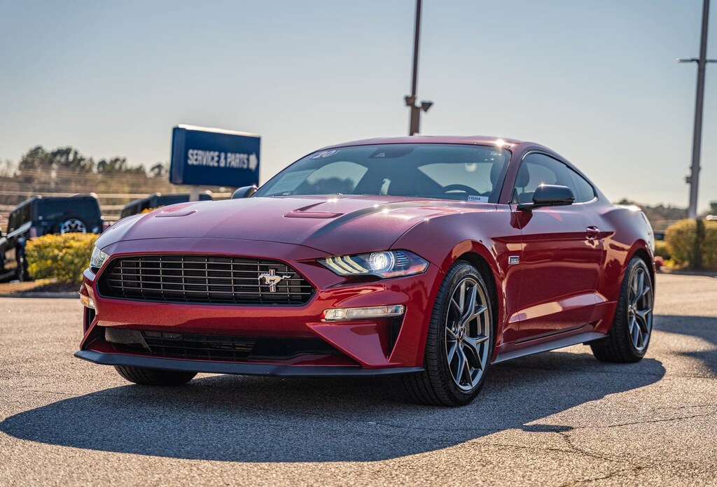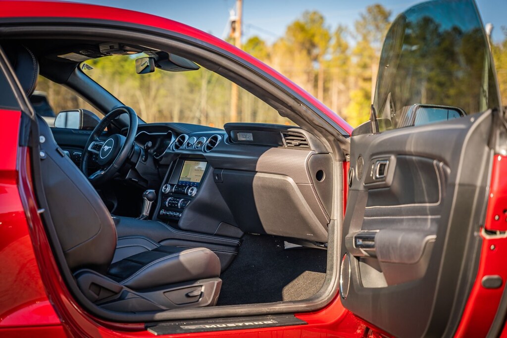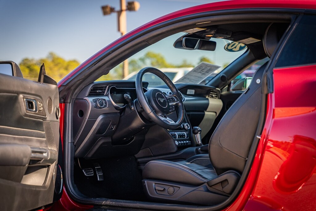 This vehicle comes equipped with 2.3L High Performance Package (3.55 Limited Slip Rear Axle, Active Valve Performance Exhaust, Engine Spun Aluminum Instrument Panel, Gauge Pack (Oil Pressure & Boost), Heavy-Duty Front Springs, Larger Brake Rotors, Larger Radiator, Magnetic Exterior Mirror, Magnetic Raised Blade Decklid Spoiler, and Wheels: 19" x 9" Machined-Face Aluminum), Ecoboost Handling Package (19" x 9.5" Premium Painted Aluminum Wheels, MagneRide Damping System, and Premium Brakes), Enhanced Security Package (Active Anti-Theft System and Wheel Locking Kit), Equipment Group 201A (Blind Spot Info System w/Cross-Traffic Alert, Leather Bucket Seats w/Color Accents, and Memory Driver Seat, Mirrors & Ambient Lighting), Ford Safe & Smart Package (Adaptive Cruise Control, Automatic High Beam, Lane-Keeping System, Pre-Collision Assist w/Pedestrian Detection, and Rain-Sensing Windshield Wipers), Premium Plus Package (12" LCD Digital Instrument Cluster w/MyColor, Heated Steering Wheel, and Voice-Activated Touch-Screen Navigation System), 4-Wheel Disc Brakes, 9 Speakers, ABS brakes, Air Conditioning, Alloy wheels, AM/FM radio: SiriusXM, AM/FM Stereo, Auto-dimming Rear-View mirror, Automatic temperature control, Brake assist, Bumpers: body-color, Climate Controlled Heated/Cooled Front Seats, Compass, Delay-off headlights, Driver door bin, Driver vanity mirror, Dual front impact airbags, Dual front side impact airbags, Electronic Stability Control, Emergency communication system: 911 Assist, Exterior Parking Camera Rear, Four wheel independent suspension, Front anti-roll bar, Front Bucket Seats, Front Center Armrest, Front dual zone A/C, Front fog lights, Front reading lights, Fully automatic headlights, Garage door transmitter, HD Radio, Heated door mirrors, Heated front seats, Illuminated entry, Knee airbag, Leather Bucket Seats, Leather Shift Knob, Linked Graphite Aluminum Instrument Panel, Low tire pressure warning, Metallic Gray Hood Accent Stripe, Occupant sensing airbag, Outside temperature display, Overhead airbag, Overhead console, Panic alarm, Passenger door bin, Passenger vanity mirror, Power door mirrors, Power driver seat, Power passenger seat, Power steering, Power windows, Premium Floor Mats w/Accent Stitch, Radio data system, Radio: B&O Sound System by Bang & Olufsen, Rear anti-roll bar, Rear window defroster, Remote keyless entry, Security system, SiriusXM Radio, Speed control, Speed-sensing steering, Speed-Sensitive Wipers, Split folding rear seat, Spoiler, Steering wheel mounted audio controls, SYNC 3 Communications & Entertainment System, Tachometer, Telescoping steering wheel, Tilt steering wheel, Traction control, Trip computer, Turn signal indicator mirrors, Variably intermittent wipers, Ventilated front seats, Voltmeter, and Wheels: 18" x 8" Machined-Face Aluminum.