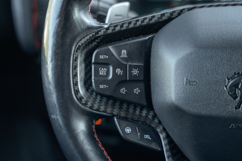 This vehicle comes equipped with Equipment Group 374A Lux Package, Lux Package (2 Smart Charging USB Ports In Dashboard, Adaptive Cruise Control, Connected Built-In Navigation, Evasive Steering Assist, Heated Steering Wheel, Radio: B&O Sound System by Bang & Olufsen, Universal Garage Door Opener, and Wireless Charging Pad), Ford Certified, 4-Wheel Disc Brakes, 4.7 Axle Ratio, 7 Speakers, ABS brakes, Air Conditioning, Alloy wheels, AM/FM radio: SiriusXM with 360L, AM/FM Stereo, Auto High-beam Headlights, Auto-dimming Rear-View mirror, Automatic temperature control, Brake assist, Compass, Connected Navigation, Convertible HardTop, Convertible roof lining, Delay-off headlights, Driver door bin, Driver vanity mirror, Dual front impact airbags, Dual front side impact airbags, Electronic Stability Control, Emergency communication system: 911 Assist, Exterior Parking Camera Rear, Front anti-roll bar, Front Bucket Seats, Front Center Armrest, Front dual zone A/C, Front fog lights, Front License Plate Bracket, Front reading lights, Front wheel independent suspension, Fully automatic headlights, Glass rear window, Hard Top Sound Deadening Headliner, Heated door mirrors, Heated front seats, Illuminated entry, Integrated roll-over protection, Interior Carbon Fiber Pack 6, Leather Shift Knob, Low tire pressure warning, Marine Grade Vinyl Bucket Seats, Navigation system: Connected Navigation, Occupant sensing airbag, Outside temperature display, Overhead airbag, Overhead console, Panic alarm, Passenger door bin, Passenger vanity mirror, Power door mirrors, Power steering, Power windows, Radio data system, Rear anti-roll bar, Rear seat center armrest, Rear window defroster, Rear window wiper, Remote keyless entry, Security system, SiriusXM Radio w/360L, Speed control, Split folding rear seat, Steering wheel mounted audio controls, SYNC 4, Tachometer, Telescoping steering wheel, Tilt steering wheel, Traction control, Trip computer, Turn signal indicator mirrors, Variably intermittent wipers, Voltmeter, and Wheels: 17" Black High Gloss-Painted Aluminum.