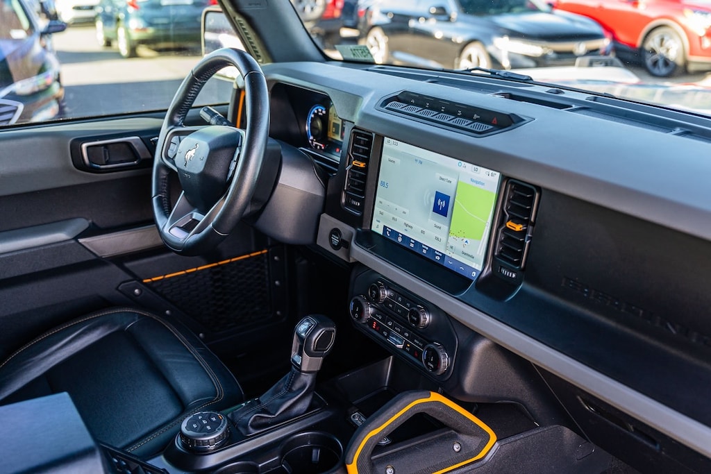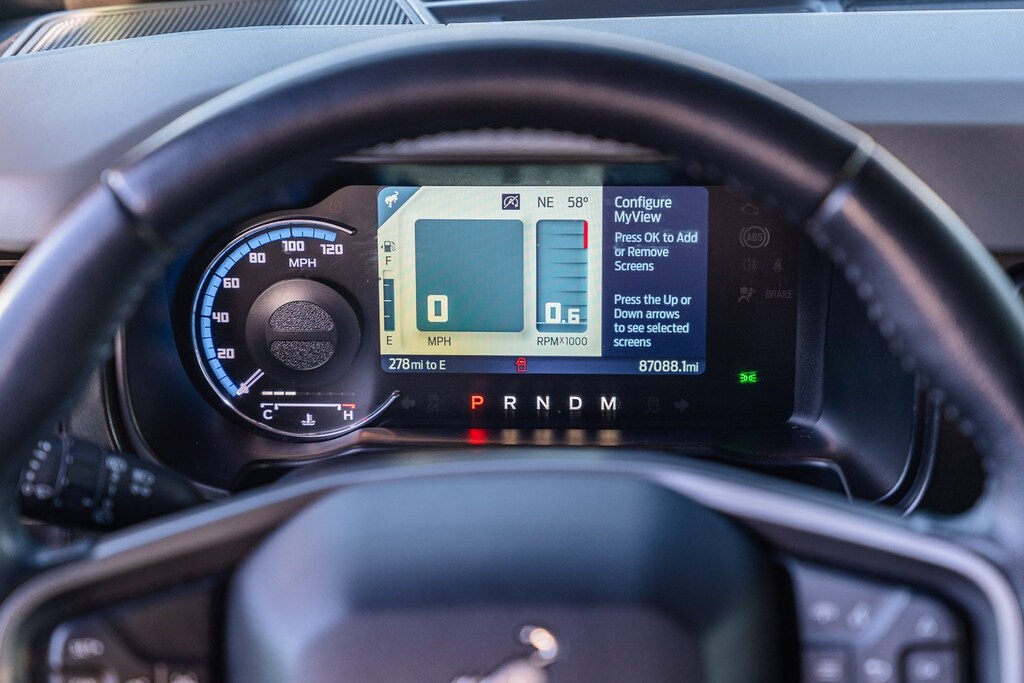 This vehicle comes equipped with Ford Certified, 4-Wheel Disc Brakes, 6 Speakers, ABS brakes, Air Conditioning, AM/FM radio: SiriusXM with 360L, AM/FM Stereo, Auto High-beam Headlights, Brake assist, Carbonized Gray Molded-In-Color Hard Top, Compass, Delay-off headlights, Driver door bin, Driver vanity mirror, Dual front impact airbags, Dual front side impact airbags, Electronic Stability Control, Emergency communication system: 911 Assist, Exterior Parking Camera Rear, Ford Performance Heavy-Duty Modular Front Bumper, Front & Rear Floor Liners, Front anti-roll bar, Front Bucket Seats, Front Center Armrest, Front License Plate Bracket, Front reading lights, Front Row Top Panels Storage Bag, Front wheel independent suspension, Fully automatic headlights, Heated door mirrors, Illuminated entry, Integrated roll-over protection, Keyless Entry Keypad, Low tire pressure warning, Occupant sensing airbag, Outside temperature display, Overhead airbag, Overhead console, Panic alarm, Passenger door bin, Passenger vanity mirror, Power door mirrors, Power steering, Power windows, Radio data system, Rear-Window Defroster & Washer, Remote keyless entry, Security system, SiriusXM Radio w/360L, Speed control, Split folding rear seat, Steering wheel mounted audio controls, SYNC 4, Tachometer, Telescoping steering wheel, Tilt steering wheel, Traction control, Trip computer, Variably intermittent wipers, and Wheels: 17" Black High Gloss-Painted Aluminum.