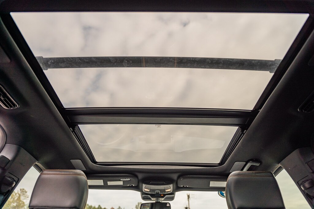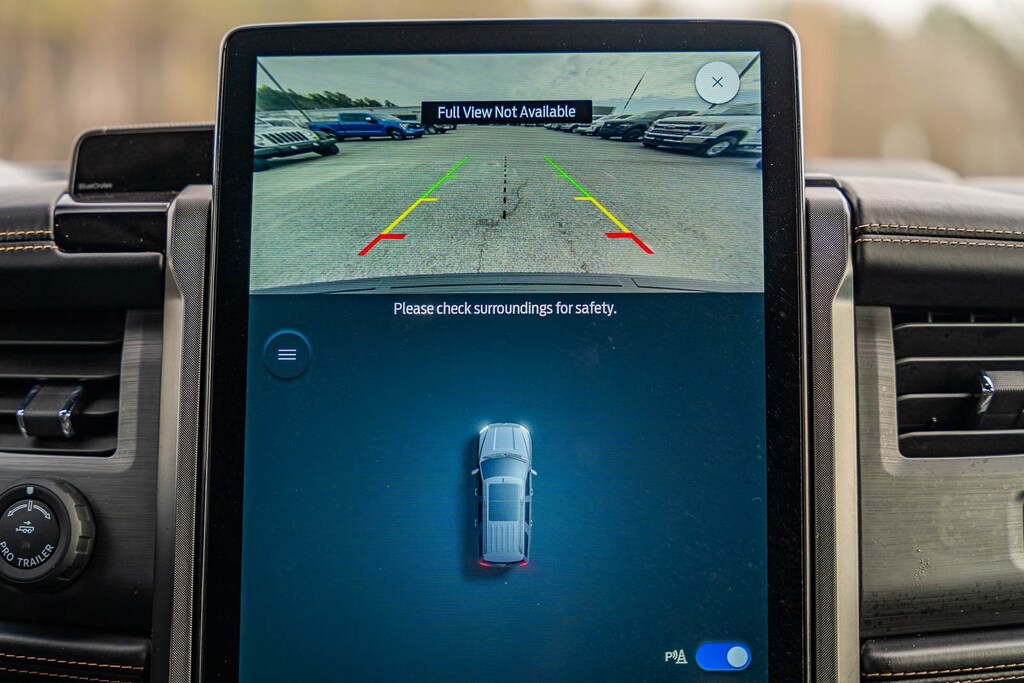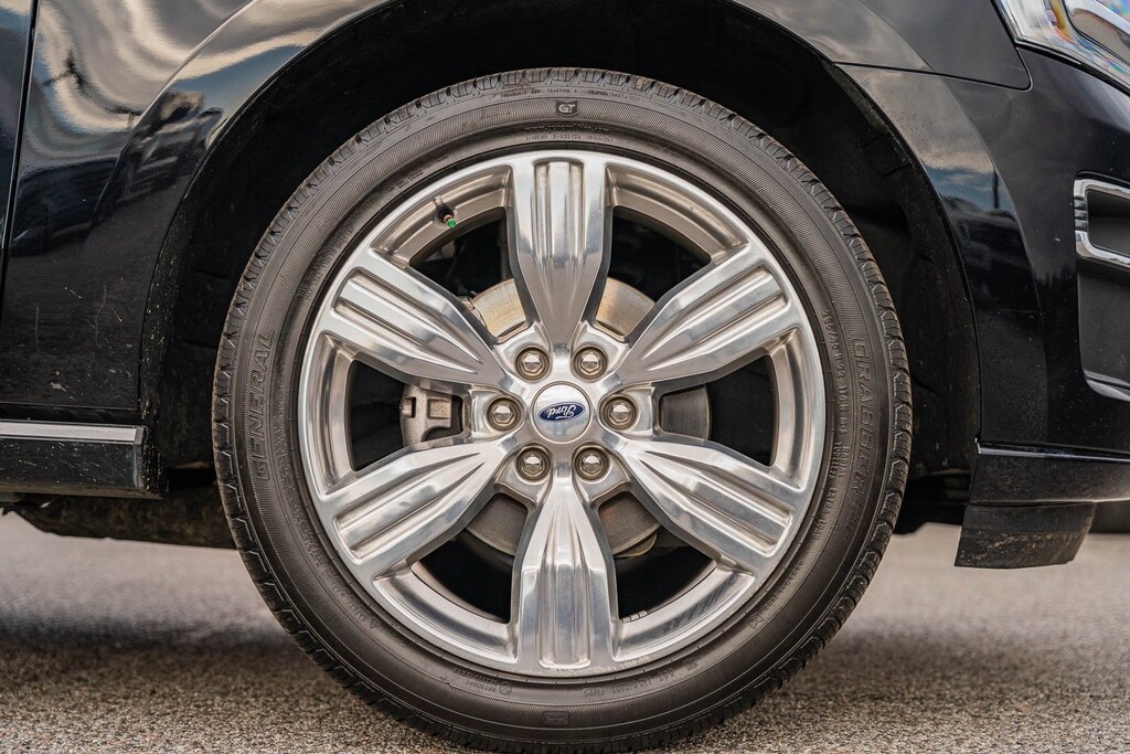 This vehicle comes equipped with Equipment Group 600A Standard Package, Heavy-Duty Trailer Tow Package (26mm Engine Radiator, 360-Degree Camera w/Trailer Reverse Guidance, Integrated Trailer Brake Controller, and Pro Trailer Backup Assist), Ford Gold Certified Certified, 22 Speakers, 3rd row seats: split-bench, 4-Wheel Disc Brakes, ABS brakes, Active Park Assist 2.0 Removal, Adaptive suspension, Adjustable pedals, Air Conditioning, Alloy wheels, AM/FM radio, Auto High-beam Headlights, Auto-dimming door mirrors, Auto-dimming Rear-View mirror, Automatic temperature control, Black Roof-Rail Crossbars, Brake assist, Bumpers: body-color, Compass, Delay-off headlights, Driver door bin, Driver vanity mirror, Dual front impact airbags, Dual front side impact airbags, Electronic Stability Control, Emergency communication system: SYNC 4 911 Assist, Exterior Parking Camera Rear, Four wheel independent suspension, Front anti-roll bar, Front Bucket Seats, Front Center Armrest, Front dual zone A/C, Front fog lights, Front reading lights, Fully automatic headlights, Garage door transmitter, Genuine wood console insert, Genuine wood dashboard insert, Genuine wood door panel insert, Hands-Free Foot-Activated Liftgate Removal (DISC), Heated door mirrors, Heated front seats, Heated rear seats, Heated steering wheel, Htd/Ventilated Prem Lthr Front Captain's Chairs (DISC), Illuminated entry, Leather steering wheel, Low tire pressure warning, Memory seat, Navigation System, Occupant sensing airbag, Outside temperature display, Overhead airbag, Overhead console, Panic alarm, Passenger door bin, Passenger vanity mirror, Pedal memory, Power door mirrors, Power driver seat, Power Liftgate, Power moonroof, Power passenger seat, Power steering, Power windows, Radio data system, Radio: B&O Unleashed Sound System by Bang & Olufsen, Rain sensing wipers, Rear air conditioning, Rear anti-roll bar, Rear audio controls, Rear reading lights, Rear window defroster, Rear window wiper, Reclining 3rd row seat, Remote keyless entry, Second Row Power Windows Removal, Security system, SiriusXM w/360L, Speed control, Speed-sensing steering, Speed-Sensitive Wipers, Split folding rear seat, Spoiler, Steering wheel memory, Steering wheel mounted audio controls, SYNC 4 w/Enhanced Voice Recognition, Tachometer, Telescoping steering wheel, Tilt steering wheel, Traction control, Trip computer, Turn signal indicator mirrors, Variably intermittent wipers, Ventilated front seats, Voltmeter, Wheels: 22" 12-Spoke Polished Aluminum, and Wheels: 22" 6-Spoke Polished Aluminum.