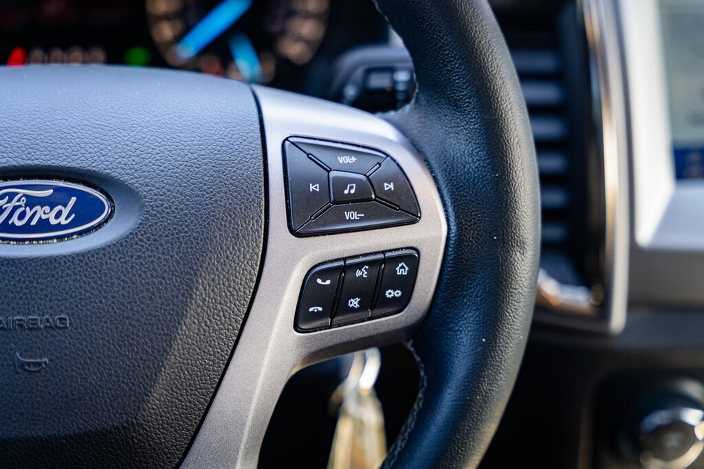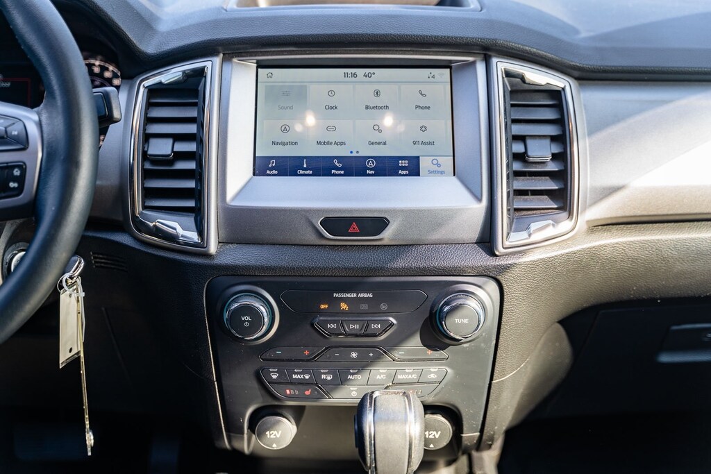 This vehicle comes equipped with Black Appearance Package (5" Rectangular Black Running Boards, Black Fender Vent Surround, Black Mesh Grille w/Black Painted Surround, Body-Color Front & Rear Bumpers, Tough Bed Spray-In Bedliner, and Wheels: 18" Black-Painted Aluminum), Equipment Group 302A High (110V AC Power Outlet, Auto-Dimming Rear-View Mirror, Heated Front Seats, Leather-Wrapped Shifter, Leather-Wrapped Steering Wheel, Manual-Sliding Rear Window, Power Mirrors w/Heated Glass, Rear Parking Sensors, and Remote Start System), Sport Appearance Package (Black Mesh Grille w/Magnetic Painted Surround, Black Wheel-Lip Molding, Magnetic Painted Fender Vent Surround, Magnetic Painted Front & Rear Bumper, Sport Box Decal, and Wheels: 17" Magnetic Painted Aluminum Sport), Technology Package (Adaptive Cruise Control, Front Parking Sensors, and Navigation), Trailer Tow Package (Class IV Trailer Hitch Receiver), Ford Certified, 3.73 Axle Ratio, 4-Wheel Disc Brakes, 4G LTE Wi-Fi Hotspot Removal, 6 Speakers, ABS brakes, Air Conditioning, Alloy wheels, AM/FM radio: SiriusXM, AM/FM Stereo, Auto High-beam Headlights, Auto Start-Stop Removal, Automatic temperature control, Brake assist, Bumpers: body-color, Compass, Delay-off headlights, Driver door bin, Driver vanity mirror, Dual front impact airbags, Dual front side impact airbags, Electronic Stability Control, Emergency communication system: SYNC 3 911 Assist, Exterior Parking Camera Rear, Front anti-roll bar, Front Bucket Seats, Front Center Armrest, Front dual zone A/C, Front fog lights, Front Premium Cloth Bucket Seats, Front reading lights, Front wheel independent suspension, Fully automatic headlights, Illuminated entry, Low tire pressure warning, Occupant sensing airbag, Outside temperature display, Overhead airbag, Overhead console, Panic alarm, Passenger door bin, Passenger vanity mirror, Power door mirrors, Power steering, Power windows, Rear reading lights, Rear seat center armrest, Rear step bumper, Rear window defroster, Remote keyless entry, Security system, SiriusXM Satellite Radio, Speed control, Speed-sensing steering, Steering wheel mounted audio controls, SYNC 3, SYNC 3/Apple CarPlay/Android Auto, Telescoping steering wheel, Tilt steering wheel, Traction control, Tray Style Floor Liner w/Carpet Floor Mats, Trip computer, Variably intermittent wipers, Voltmeter, and Wheels: 17" Silver-Painted Aluminum.