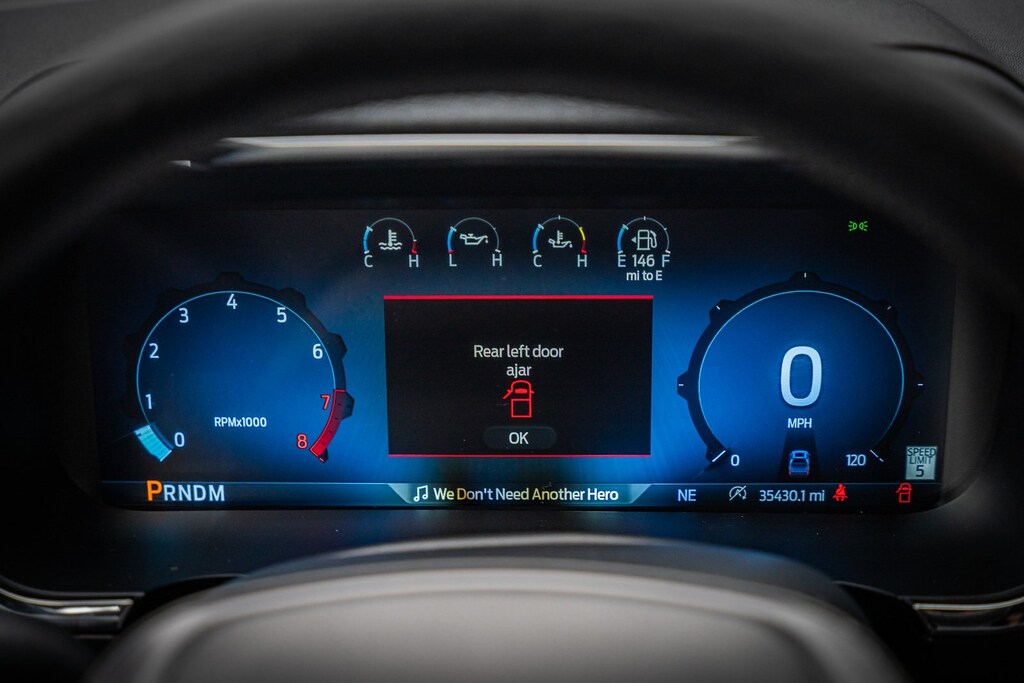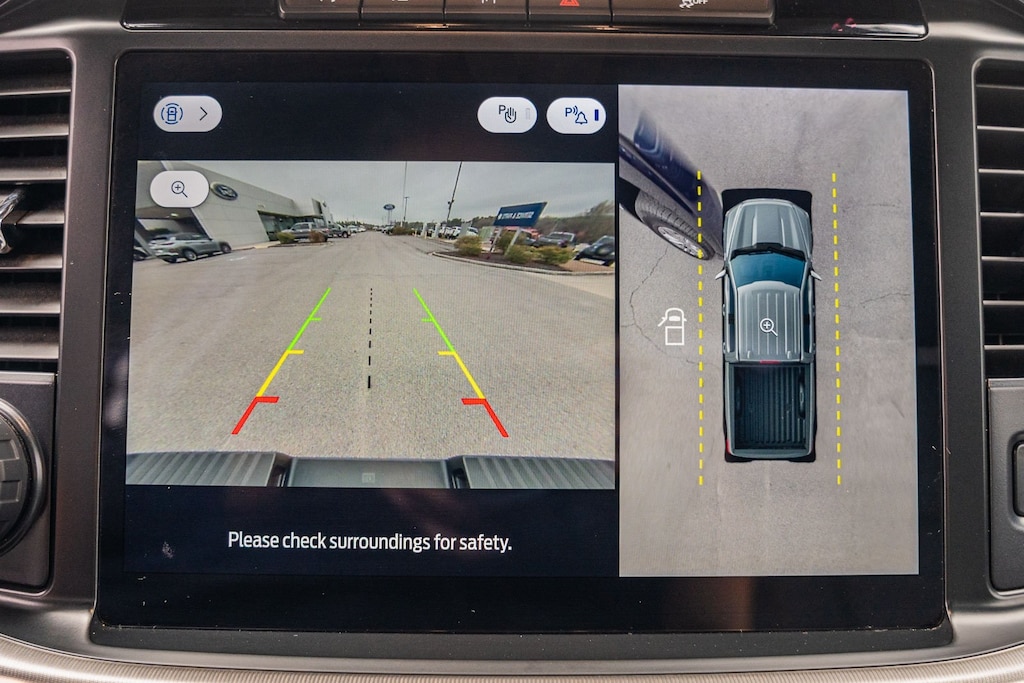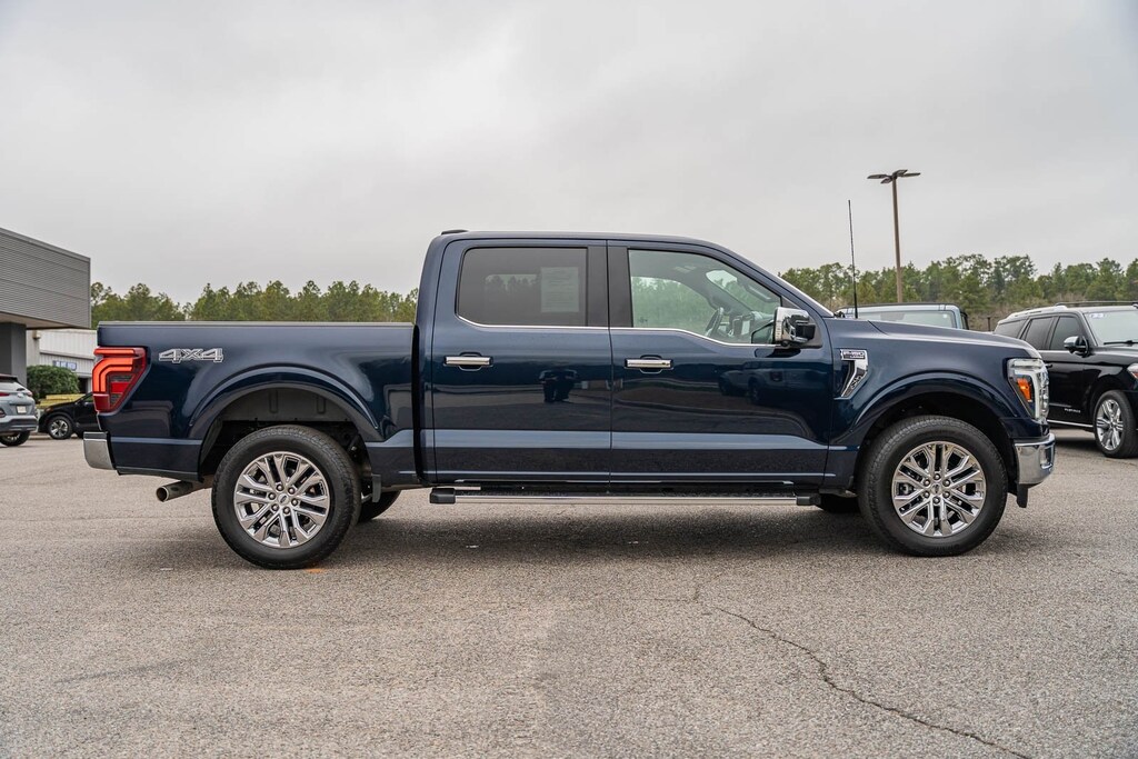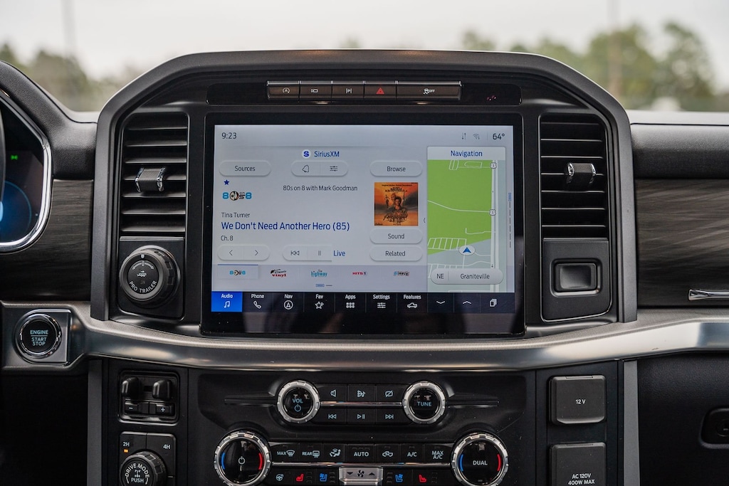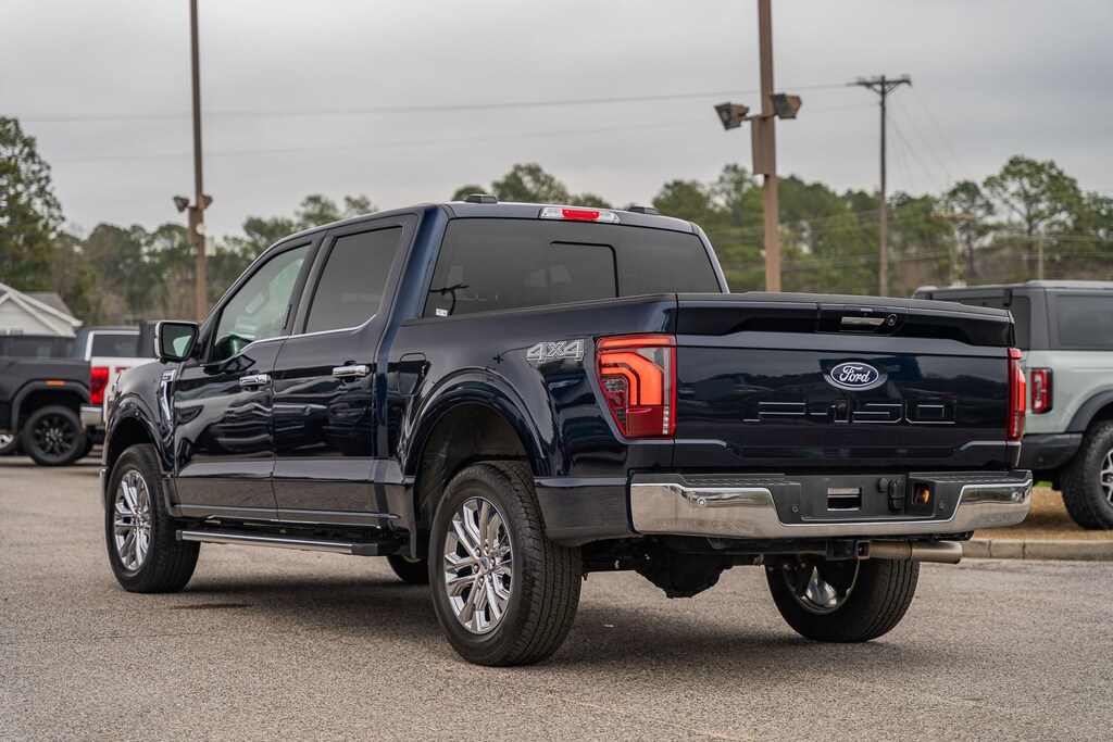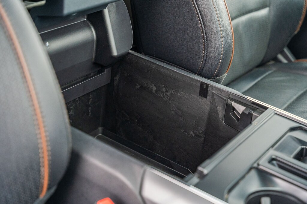 This vehicle comes equipped with Equipment Group 501A Standard, Tow/Haul Package, 4WD, 4-Wheel Disc Brakes, 8 Speakers, ABS brakes, Adjustable pedals, Air Conditioning, Alloy wheels, AM/FM radio: SiriusXM with 360L, Auto High-beam Headlights, Auto-dimming door mirrors, Auto-dimming Rear-View mirror, Automatic temperature control, Brake assist, Bumpers: chrome, Chrome wheels, Compass, Delay-off headlights, Driver door bin, Driver vanity mirror, Dual front impact airbags, Dual front side impact airbags, Electronic Stability Control, Emergency communication system: SYNC 4 911 Assist, Front anti-roll bar, Front Bucket Seats, Front Center Armrest, Front dual zone A/C, Front fog lights, Front reading lights, Front wheel independent suspension, Fully automatic headlights, Garage door transmitter, Heated door mirrors, Heated front seats, Heated steering wheel, Illuminated entry, Leather-Trimmed Bucket Seats, Low tire pressure warning, Memory seat, Navigation system: Connected Navigation, Occupant sensing airbag, Outside temperature display, Overhead airbag, Overhead console, Panic alarm, Passenger door bin, Passenger vanity mirror, Pedal memory, Power door mirrors, Power driver seat, Power passenger seat, Power steering, Power windows, Radio data system, Radio: B&O Sound System by Bang & Olufsen, Rain sensing wipers, Rear reading lights, Rear seat center armrest, Rear step bumper, Rear window defroster, Remote keyless entry, Security system, Speed control, Split folding rear seat, Steering wheel mounted audio controls, SYNC 4 w/Enhanced Voice Recognition, Tachometer, Telescoping steering wheel, Tilt steering wheel, Tough Bed Spray-In Bedliner, Traction control, Trip computer, Turn signal indicator mirrors, Variably intermittent wipers, Ventilated front seats, Voltmeter, and Wheels: 20" Chrome-Like PVD.