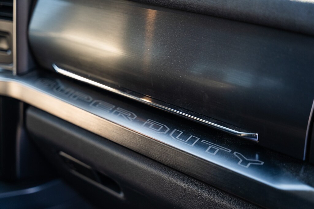 This vehicle comes equipped with Black Appearance Package (6" Ebony Black Angular Running Boards, Body Color Front & Rear Bumpers, Ebony Black Painted Front Grille Bars, Ebony Black Painted Mirror Caps, Rear Wheel Well Liners (Pre-Installed), Tough Bed Spray-In Bedliner, and Wheels: 20" Machined & Ebony Black High Gloss), F-250 >10K GVWR Package, Heavy-Service Front Suspension Package, Order Code 608A, Ford Gold Certified Certified, 4WD, 3.73 Axle Ratio, 4-Wheel Disc Brakes, 8 Speakers, ABS brakes, Adjustable pedals, Air Conditioning, All-Weather Floor Mats, Alloy wheels, AM/FM radio: SiriusXM with 360L, Auto High-beam Headlights, Auto tilt-away steering wheel, Auto-dimming Rear-View mirror, Automatic temperature control, Brake assist, Bumpers: chrome, Compass, Delay-off headlights, Driver door bin, Driver vanity mirror, Dual 68 AH/65 AGM Batteries, Dual front impact airbags, Dual front side impact airbags, Electronic Stability Control, Emergency communication system: SYNC 4 911 Assist, Exterior Parking Camera Rear, Flow-Through Console, Front anti-roll bar, Front Bucket Seats, Front Center Armrest, Front dual zone A/C, Front fog lights, Front Leather-Trimmed 40/Console/40 Seats, Front reading lights, Fully automatic headlights, Garage door transmitter, Heated door mirrors, Heated front seats, Heated rear seats, Heated steering wheel, Illuminated entry, Leather steering wheel, LED Roof Clearance Lights, Low tire pressure warning, Memory seat, Navigation system: Connected Navigation (includes complimentary 1-year trial), Outside temperature display, Overhead airbag, Overhead console, Panic alarm, Passenger door bin, Passenger vanity mirror, Pedal memory, Power door mirrors, Power driver seat, Power passenger seat, Power steering, Power windows, Pro Power Onboard - 2kW, Radio: B&O Sound System by Bang & Olufsen, Rain sensing wipers, Rear reading lights, Rear seat center armrest, Rear step bumper, Rear window defroster, Remote keyless entry, Security system, SiriusXM Radio w/360L, Speed control, Split folding rear seat, Steering wheel memory, Steering wheel mounted audio controls, SYNC 4 w/Enhanced Voice Recognition, Tachometer, Telescoping steering wheel, Tilt steering wheel, Traction control, Trip computer, Turn signal indicator mirrors, Variably intermittent wipers, Ventilated front seats, and Wheels: 18" Bright Machined & Carbonized Gray Alum.