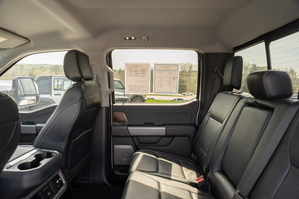 This vehicle comes equipped with F-250 >10K GVWR Package, Order Code 608A, Ford Certified, 4WD, 4-Wheel Disc Brakes, 8 Speakers, ABS brakes, Adjustable pedals, Air Conditioning, Alloy wheels, AM/FM radio: SiriusXM with 360L, Auto High-beam Headlights, Auto tilt-away steering wheel, Auto-dimming Rear-View mirror, Automatic temperature control, Brake assist, Bumpers: chrome, Compass, Delay-off headlights, Driver door bin, Driver vanity mirror, Dual 68 AH/65 AGM Batteries, Dual front impact airbags, Dual front side impact airbags, Electronic Stability Control, Emergency communication system: SYNC 4 911 Assist, Exterior Parking Camera Rear, Flow-Through Console, Front anti-roll bar, Front Bucket Seats, Front Center Armrest, Front dual zone A/C, Front fog lights, Front Leather-Trimmed 40/Console/40 Seats, Front License Plate Bracket, Front reading lights, Fully automatic headlights, Garage door transmitter, Heated door mirrors, Heated front seats, Heated rear seats, Heated steering wheel, Illuminated entry, Leather steering wheel, Low tire pressure warning, Memory seat, Navigation system: Connected Navigation (includes complimentary 1-year trial), Outside temperature display, Overhead airbag, Overhead console, Panic alarm, Passenger door bin, Passenger vanity mirror, Pedal memory, Power door mirrors, Power driver seat, Power passenger seat, Power steering, Power windows, Radio: B&O Sound System by Bang & Olufsen, Rain sensing wipers, Rear reading lights, Rear seat center armrest, Rear step bumper, Rear window defroster, Remote keyless entry, Security system, SiriusXM Radio w/360L, Speed control, Split folding rear seat, Steering wheel memory, Steering wheel mounted audio controls, SYNC 4 w/Enhanced Voice Recognition, Tachometer, Telescoping steering wheel, Tilt steering wheel, Traction control, Trip computer, Turn signal indicator mirrors, Variably intermittent wipers, Ventilated front seats, and Wheels: 18" Bright Machined & Carbonized Gray Alum.