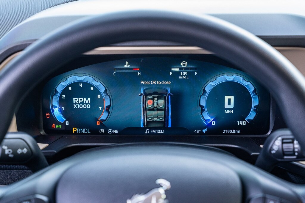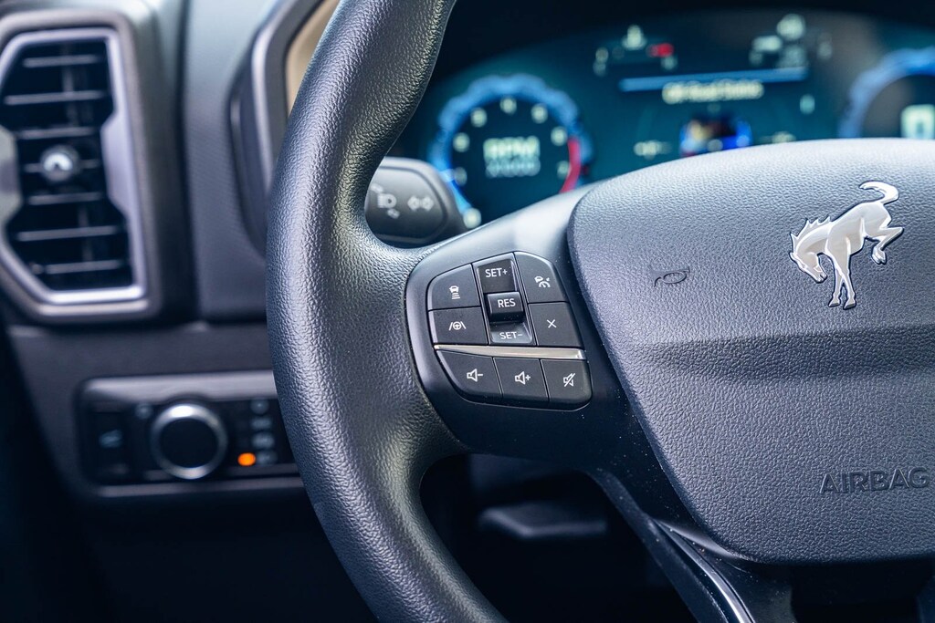 This vehicle comes equipped with Equipment Group 200A, Ford Certified, 4-Wheel Disc Brakes, 6 Speakers, ABS brakes, Air Conditioning, Alloy wheels, AM/FM radio: SiriusXM, AM/FM Stereo, Auto High-beam Headlights, Automatic temperature control, Brake assist, Cloth w/Easy-to-Clean Front Bucket Seats, Compass, Delay-off headlights, Driver door bin, Driver vanity mirror, Dual front impact airbags, Dual front side impact airbags, Electronic Stability Control, Emergency communication system: SYNC 4 911 Assist, Four wheel independent suspension, Front & Rear Floor Liners w/o Carpet Mats, Front anti-roll bar, Front Bucket Seats, Front Center Armrest, Front License Plate Bracket, Front reading lights, Fully automatic headlights, Heated door mirrors, Illuminated entry, Knee airbag, Low tire pressure warning, Occupant sensing airbag, Outside temperature display, Overhead airbag, Overhead console, Panic alarm, Passenger door bin, Passenger vanity mirror, Power door mirrors, Power steering, Power windows, Radio data system, Rear anti-roll bar, Rear Parking Sensors, Rear reading lights, Rear seat center armrest, Rear window defroster, Rear window wiper, Remote keyless entry, Security system, SiriusXM, Speed control, Speed-sensing steering, Speed-Sensitive Wipers, Split folding rear seat, Steering wheel mounted audio controls, SYNC 4 w/Enhanced Voice Recognition, Tachometer, Telescoping steering wheel, Tilt steering wheel, Traction control, Trip computer, Variably intermittent wipers, and Wheels: 17" Carbonized Gray-Painted Aluminum.
