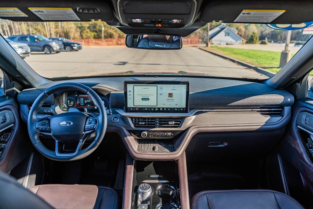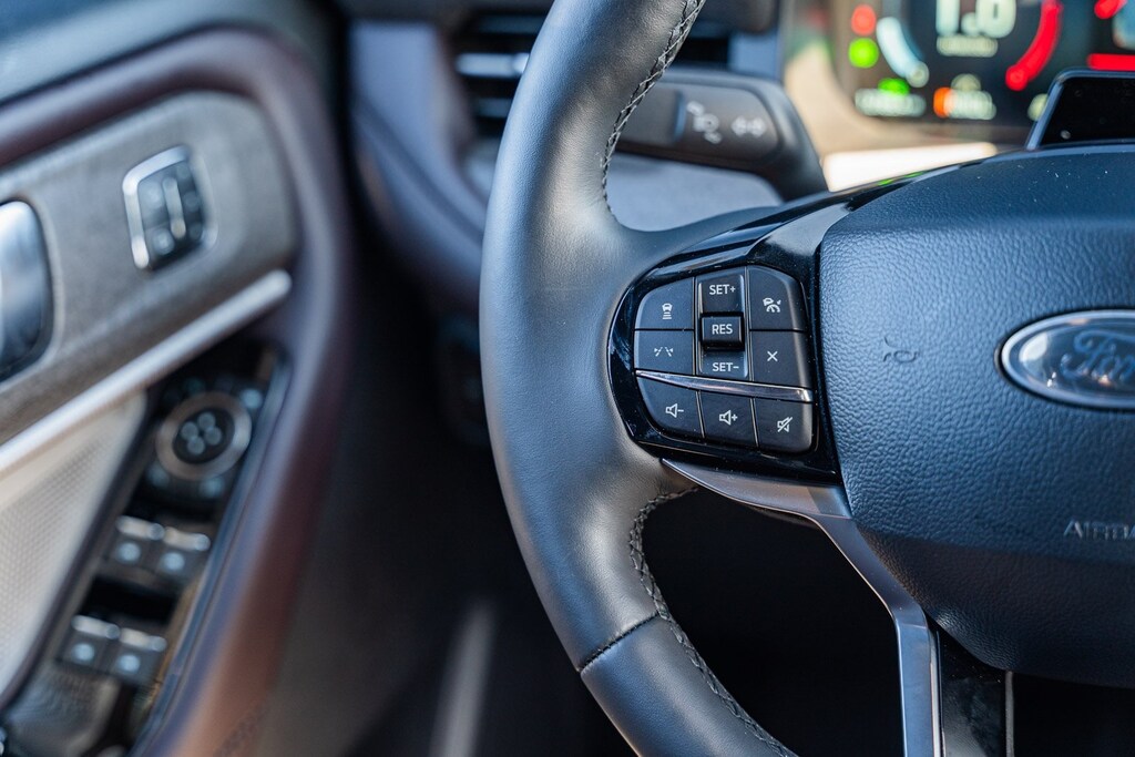 This vehicle comes equipped with Equipment Group 600A Ultimate Package (3.31 Non-Limited Slip Rear Axle), Lux Leather Package, Ultimate Package (Wheels: 21" Dark Alloy-Painted Machined Aluminum), Explorer Platinum, Ford Gold Certified Certified, 3.0L EcoBoost V6, 4WD, 14 Speakers, 3.58 Non-Limited Slip Rear Axle, 3rd row seats: bench, 4-Wheel Disc Brakes, ABS brakes, ActiveX Trimmed Sport Captain's Chairs, Air Conditioning, Alloy wheels, AM/FM radio: SiriusXM with 360L, Apple CarPlay/Android Auto, Auto High-beam Headlights, Auto-dimming door mirrors, Auto-dimming Rear-View mirror, Automatic temperature control, Brake assist, Bumpers: body-color, Compass, Delay-off headlights, Driver door bin, Driver vanity mirror, Dual front impact airbags, Dual front side impact airbags, Electronic Stability Control, Emergency communication system: 911 Assist, Exterior Parking Camera Rear, Four wheel independent suspension, Front anti-roll bar, Front Bucket Seats, Front Center Armrest, Front dual zone A/C, Front fog lights, Front reading lights, Fully automatic headlights, Garage door transmitter, Heated door mirrors, Heated front seats, Heated rear seats, Heated steering wheel, Illuminated entry, Knee airbag, Leather steering wheel, Low tire pressure warning, Memory seat, Navigation System, Occupant sensing airbag, Outside temperature display, Overhead airbag, Overhead console, Panic alarm, Passenger door bin, Passenger vanity mirror, Power door mirrors, Power driver seat, Power Liftgate, Power moonroof, Power passenger seat, Power steering, Power windows, Radio data system, Radio: B&O Sound System by Bang & Olufsen w/HD, Rain sensing wipers, Rear air conditioning, Rear anti-roll bar, Rear reading lights, Rear window defroster, Rear window wiper, Remote keyless entry, Security system, Speed control, Speed-sensing steering, Speed-Sensitive Wipers, Split folding rear seat, Spoiler, Steering wheel mounted audio controls, Tachometer, Telescoping steering wheel, Tilt steering wheel, Traction control, Trip computer, Turn signal indicator mirrors, Variably intermittent wipers, Ventilated front seats, and Wheels: 20" Luster Nickel-Painted Aluminum.