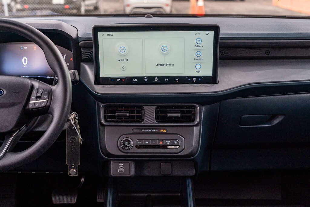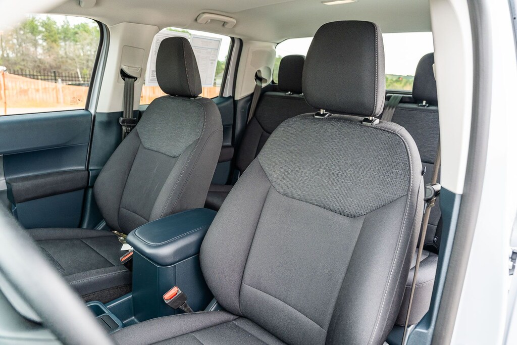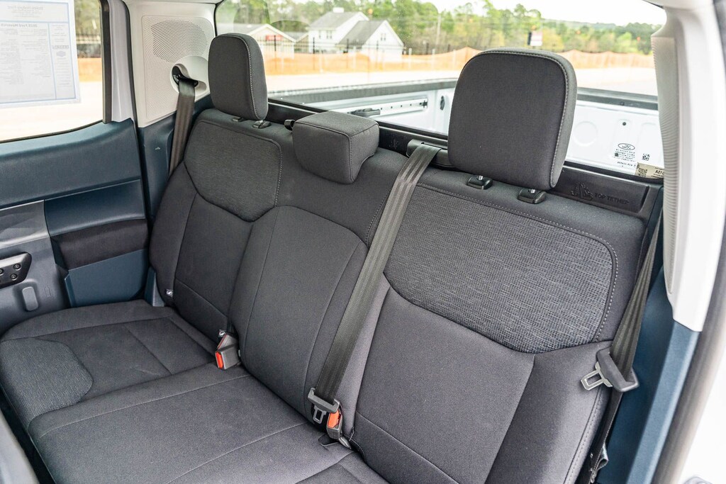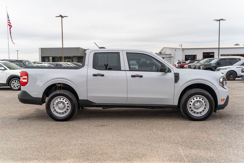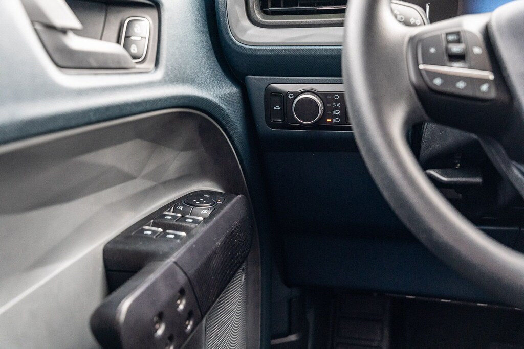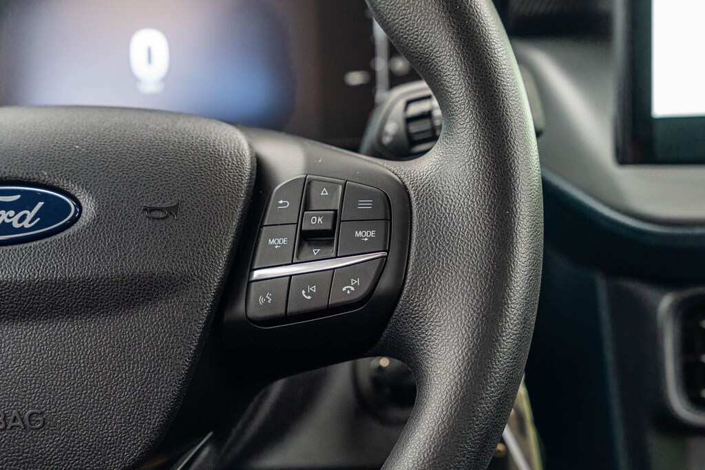 This vehicle comes equipped with Equipment Group 102A, Ford Co-Pilot360 1.0 (Auto High Beams, BLIS w/Cross-Traffic Alert, Cross Traffic Brake Assist, Evasive Steering Assist, Intersection Assist, Lane-Keeping System, Power Glass Manual-Folding Mirrors, Pre-Collision Assist w/Automatic Emergency Braking, Rear Parking Sensors, and Rear-View Camera), Ford Certified, 2.91 Axle Ratio, 4-Wheel Disc Brakes, 6 Speakers, ABS brakes, Air Conditioning, AM/FM radio: SiriusXM with 360L, Apple CarPlay/Android Auto, Auto High-beam Headlights, Automatic temperature control, Bed Tie Down Locking Rails w/2 Locking Brackets, Brake assist, Bumpers: body-color, Compass, Delay-off headlights, Driver door bin, Driver vanity mirror, Dual front impact airbags, Dual front side impact airbags, Electronic Stability Control, Emergency communication system: SYNC 4 911 Assist, Exterior Parking Camera Rear, Four wheel independent suspension, Front & Rear Floor Liners w/o Carpet Mats, Front anti-roll bar, Front Bucket Seats, Front Center Armrest, Front Cloth Bucket Seats, Front reading lights, Fully automatic headlights, Illuminated entry, Internet access capable: FordPass Connect 5G, Knee airbag, Low tire pressure warning, Occupant sensing airbag, Outside temperature display, Overhead airbag, Overhead console, Panic alarm, Passenger door bin, Passenger vanity mirror, Power steering, Power windows, Radio data system, Radio: AM/FM Stereo w/6 Speakers, Rear anti-roll bar, Rear step bumper, Remote keyless entry, SiriusXM w/360L, Speed control, Speed-sensing steering, Steering wheel mounted audio controls, SYNC 4 w/Enhanced Voice Recognition, Telescoping steering wheel, Tilt steering wheel, Traction control, Trip computer, and Wheels: 17" Steel w/Sparkle Silver Painted Cover.