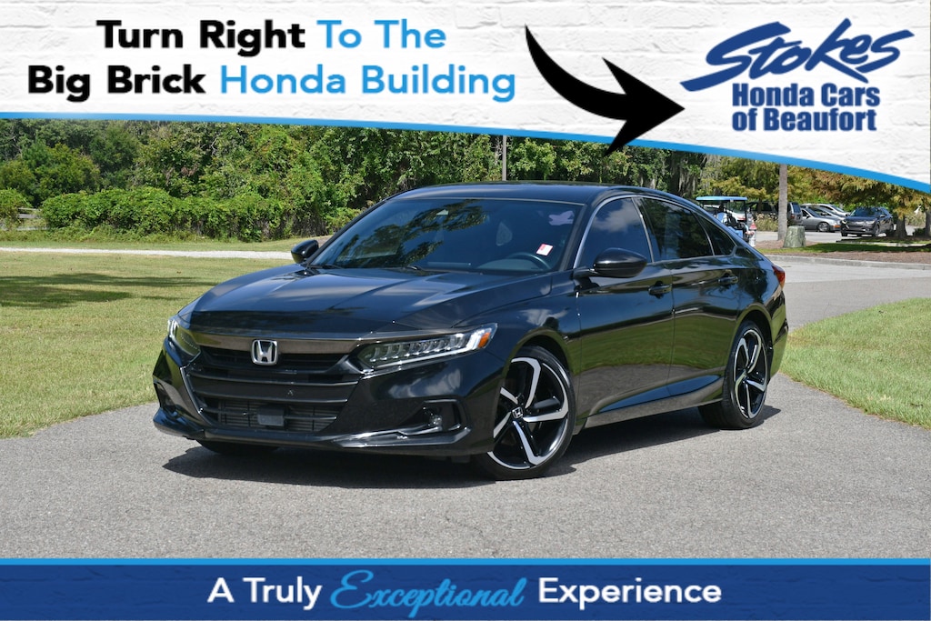 Clean CARFAX. 2021 Honda Accord Sport 1.5T I4 DOHC 16V Turbocharged VTEC CVT ***STOKES HONDA CARS OF BEAUFORT*** THIS VEHICLE IS LOCATED IN OUR USED CAR SECTION NEXT TO HARGRAY ACROSS FROM REGIONS BANK CALL 843-379-4137 TO SCHEDULE YOUR TEST DRIVE.