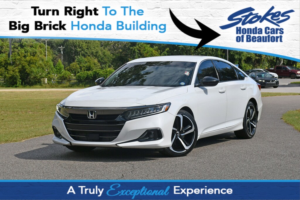 Clean CARFAX. CARFAX One-Owner. 2022 Honda Accord Sport 1.5T I4 DOHC 16V Turbocharged VTEC CVT ***STOKES HONDA CARS OF BEAUFORT*** THIS VEHICLE IS LOCATED IN OUR USED CAR SECTION NEXT TO HARGRAY ACROSS FROM REGIONS BANK CALL 843-379-4137 TO SCHEDULE YOUR TEST DRIVE.