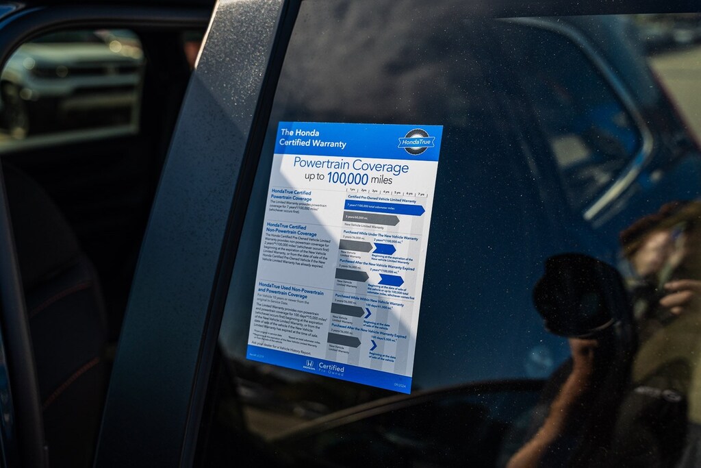 * Vehicles purchased within New Vehicle Limited Warranty period: extends New Vehicle Limited Warranty to 5 years*/60,000 miles*. Honda Care Roadside Assistance for 2 year/100,000 miles (whichever occurs first). Up to two complimentary oil changes within the first year of ownership. SiriusXM 90-Day Trial.