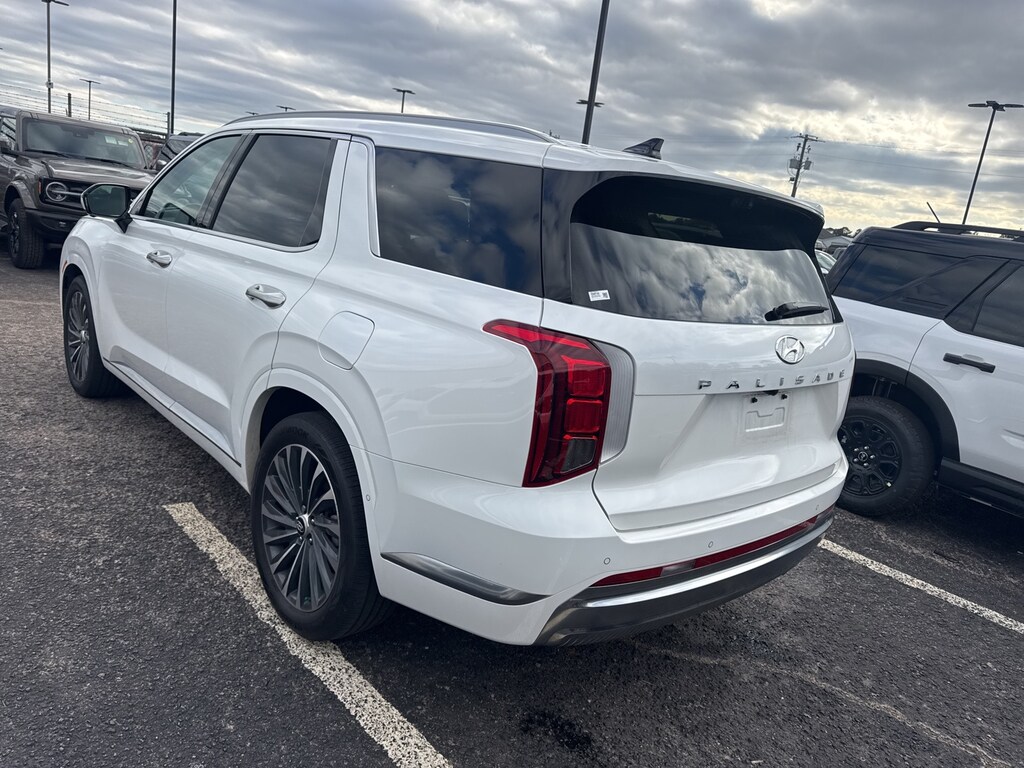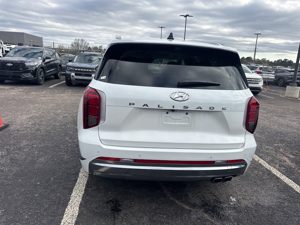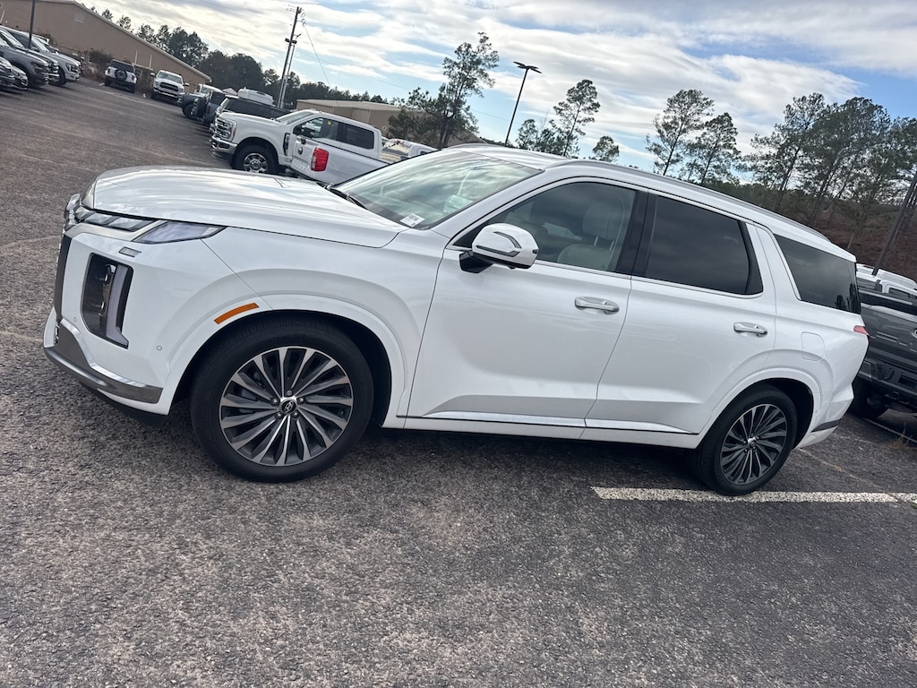 This vehicle comes equipped with Option Group 01, Hyundai Certified, 12 Speakers, 3rd row seats: split-bench, 4-Wheel Disc Brakes, ABS brakes, Air Conditioning, Alloy wheels, AM/FM radio: SiriusXM, Apple CarPlay & Android Auto, Auto High-beam Headlights, Auto-dimming door mirrors, Auto-dimming Rear-View mirror, Auto-leveling suspension, Automatic temperature control, Brake assist, Bumpers: body-color, Cargo Net, Carpeted Floor Mats, Compass, Delay-off headlights, Driver door bin, Driver vanity mirror, Dual front impact airbags, Dual front side impact airbags, Electronic Stability Control, Emergency communication system, Exterior Parking Camera Rear, First Aid Kit, Four wheel independent suspension, Front anti-roll bar, Front Bucket Seats, Front Center Armrest, Front dual zone A/C, Front reading lights, Fully automatic headlights, Garage door transmitter: HomeLink, harman/kardon® Speakers, Heads-Up Display, Heated & Ventilated Front Bucket Seats, Heated door mirrors, Heated front seats, Heated rear seats, Heated steering wheel, Illuminated Door Sill Plates, Illuminated entry, Knee airbag, Leather steering wheel, Low tire pressure warning, Memory seat, Navigation System, Occupant sensing airbag, Outside temperature display, Overhead airbag, Overhead console, Panic alarm, Passenger door bin, Passenger vanity mirror, Power door mirrors, Power driver seat, Power Liftgate, Power moonroof, Power passenger seat, Power steering, Power windows, Premium Nappa Leather Seat Trim, Radio data system, Radio: AM/FM/MP3 Premium Audio System, Rain sensing wipers, Rear air conditioning, Rear anti-roll bar, Rear audio controls, Rear reading lights, Rear side impact airbag, Rear window defroster, Rear window wiper, Reclining 3rd row seat, Remote keyless entry, Security system, Speed control, Speed-sensing steering, Split folding rear seat, Spoiler, Steering wheel mounted audio controls, Tachometer, Telescoping steering wheel, Tilt steering wheel, Traction control, Trip computer, Turn signal indicator mirrors, Variably intermittent wipers, Ventilated front seats, Ventilated rear seats, and Wheels: 20" x 7.5J Calligraphy Exclusive Alloy.