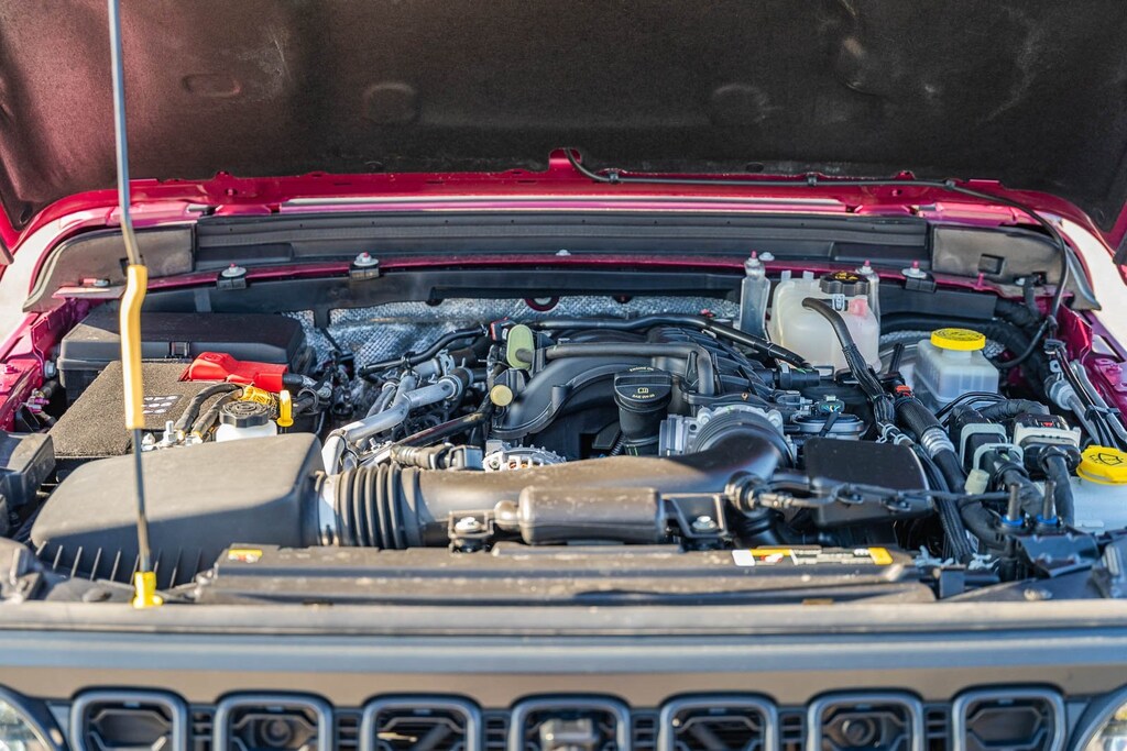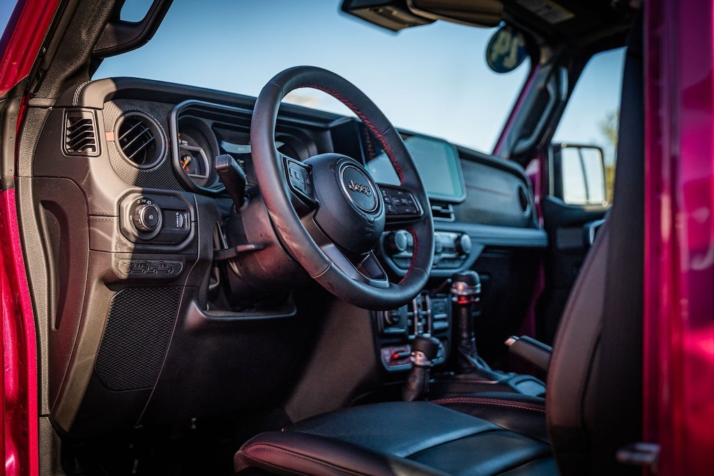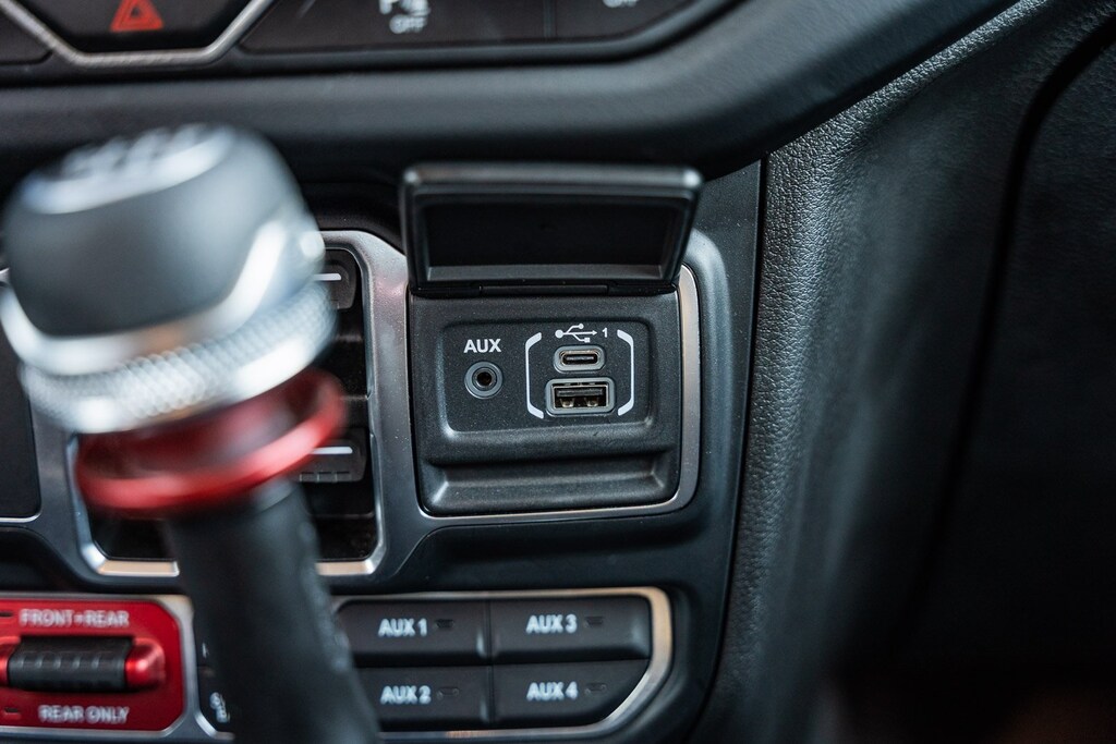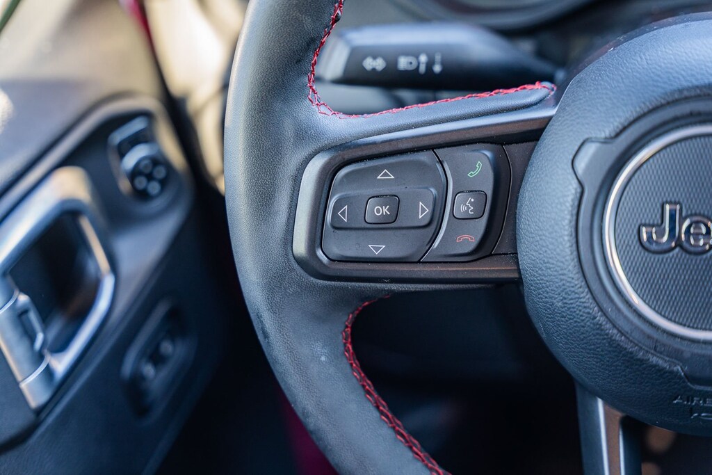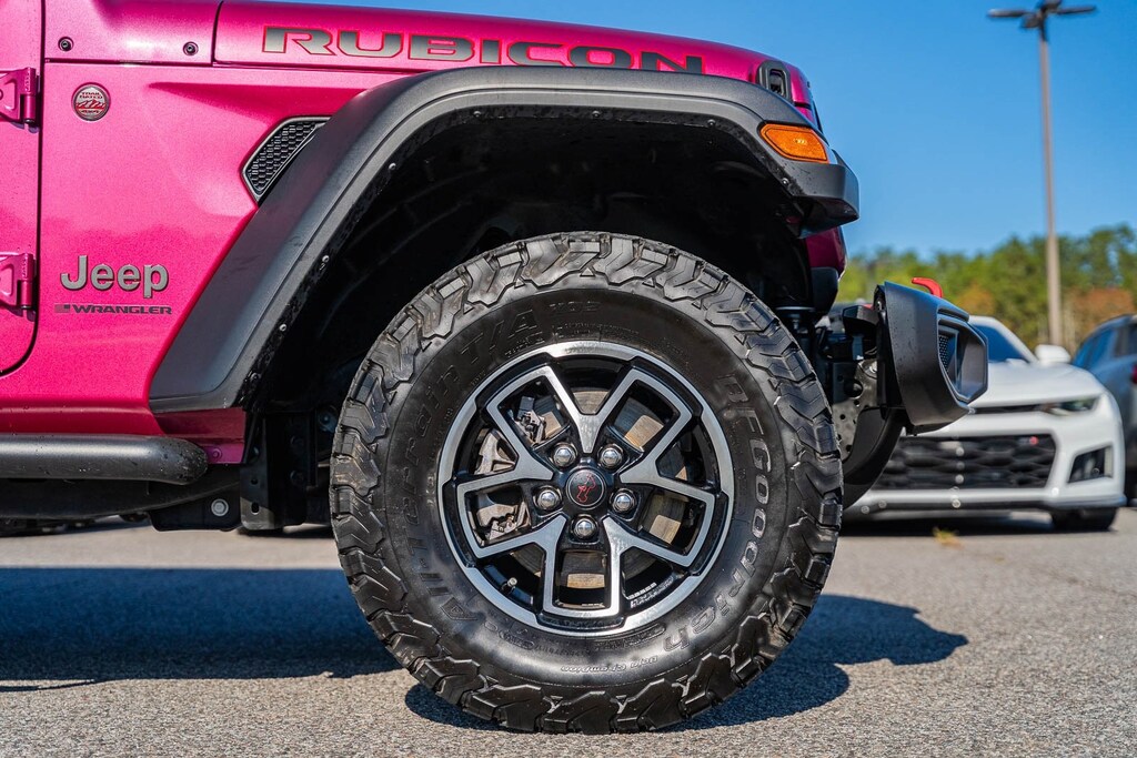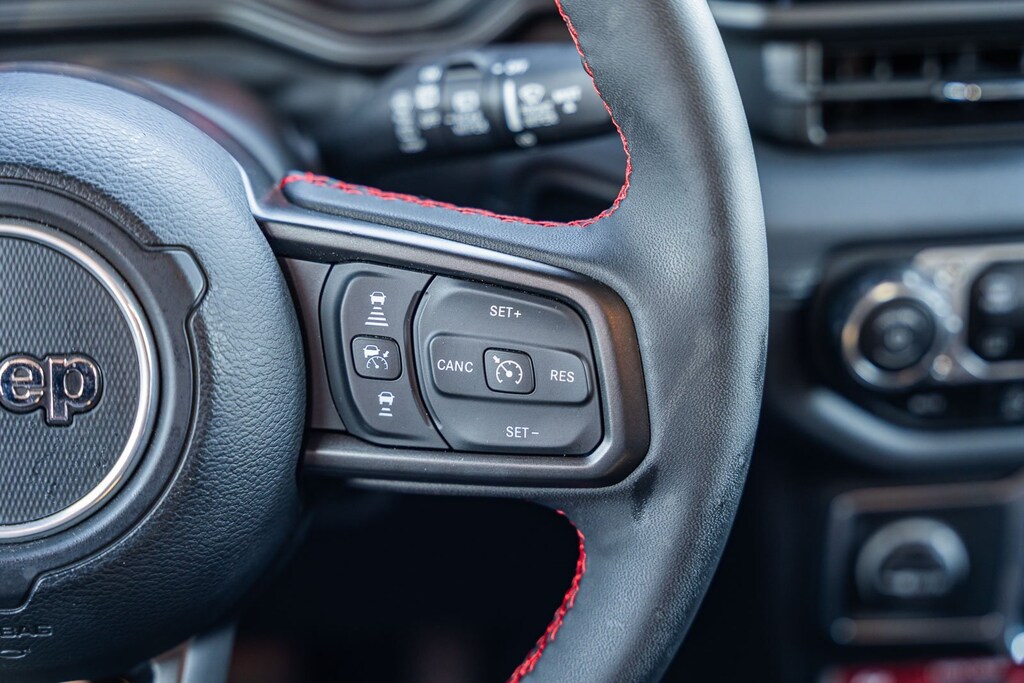 This vehicle comes equipped with Convenience Group (Heated Front Seats, Heated Steering Wheel, and Remote Start System), Quick Order Package 23R Rubicon, Safety Group (Auto High Beam Headlamp Control, Blind Spot & Cross Path Detection, and ParkSense Rear Park Assist System), Technology Group (12.3" Touchscreen Display, 4G LTE Wi-Fi Hot Spot, Alpine Premium Audio System, Apple CarPlay, Auto-Dimming Rear-View Mirror, Connected Travel & Traffic Services, Connectivity - US/Canada, Disassociated Touchscreen Display, Google Android Auto, GPS Navigation, HD Radio, Integrated Center Stack Radio, Integrated Off-Road Camera, Integrated Voice Command w/Bluetooth, Radio: Uconnect 5 Nav w/12.3" Display, SiriusXM Radio Service, and SiriusXM w/360L), Ford Blue Certified Eligible Certified, 4-Wheel Disc Brakes, 4.10 Rear Axle Ratio, 8 Speakers, 97 MPH Vehicle Max Speed Calibration, ABS brakes, Air Conditioning, Alloy wheels, AM/FM radio: SiriusXM, Apple CarPlay/Android Auto, Automatic temperature control, Aux Battery, Black 3-Piece Hard Top, Brake assist, Cloth Low-Back Bucket Seats, Compass, Delay-off headlights, Driver door bin, Driver vanity mirror, Dual front impact airbags, Dual front side impact airbags, Electronic Stability Control, Emergency communication system: Jeep Connect, Freedom Panel Storage Bag, Front anti-roll bar, Front Bucket Seats, Front Center Armrest w/Storage, Front dual zone A/C, Front fog lights, Front reading lights, Fully automatic headlights, Heated door mirrors, Illuminated entry, Integrated roll-over protection, Low tire pressure warning, MOPAR Performance Satin Black Grille, No Soft Top, Non-Lock Fuel Cap w/o Discriminator, Occupant sensing airbag, Outside temperature display, Overhead airbag, Panic alarm, ParkView Rear Back-Up Camera, Passenger door bin, Passenger vanity mirror, Performance Suspension, Power door mirrors, Power steering, Power windows, Radio data system, Radio: Uconnect 5 w/12.3" Display, Rear anti-roll bar, Rear reading lights, Rear Window Defroster, Rear Window Wiper/Washer, Remote keyless entry, Security system, Speed control, Split folding rear seat, Steering wheel mounted audio controls, Stop-Start Dual Battery System, Tachometer, Telescoping steering wheel, Tilt steering wheel, Traction control, Trip computer, Variably intermittent wipers, Voltmeter, and Wheels: 17" x 7.5" Machined/Painted Black.