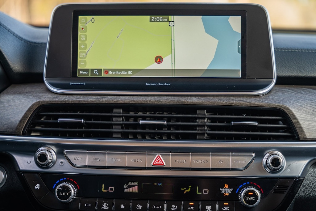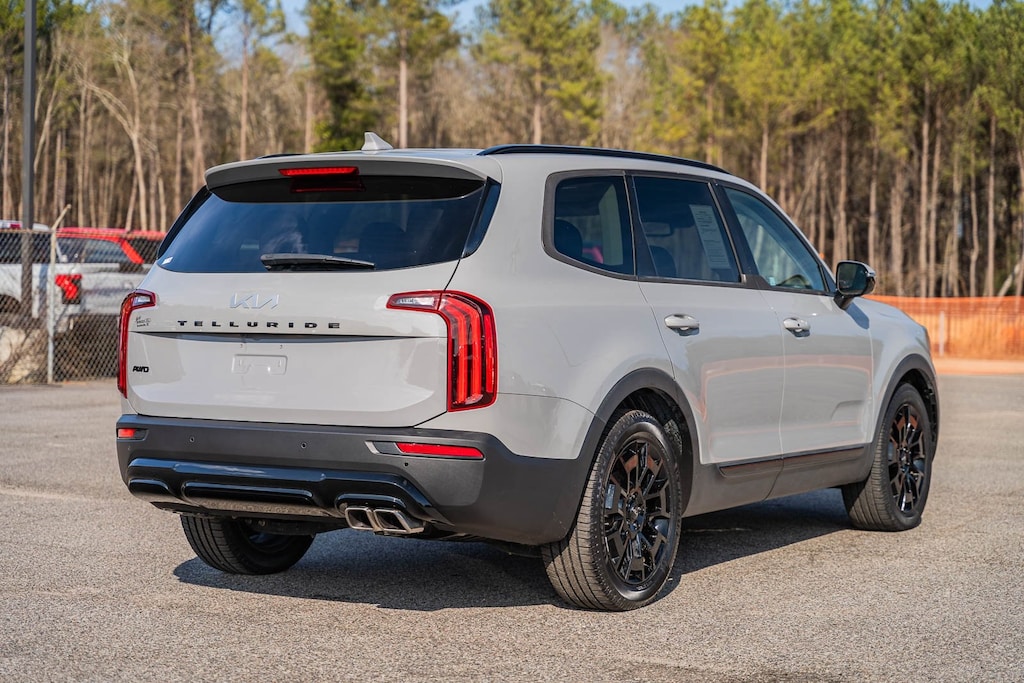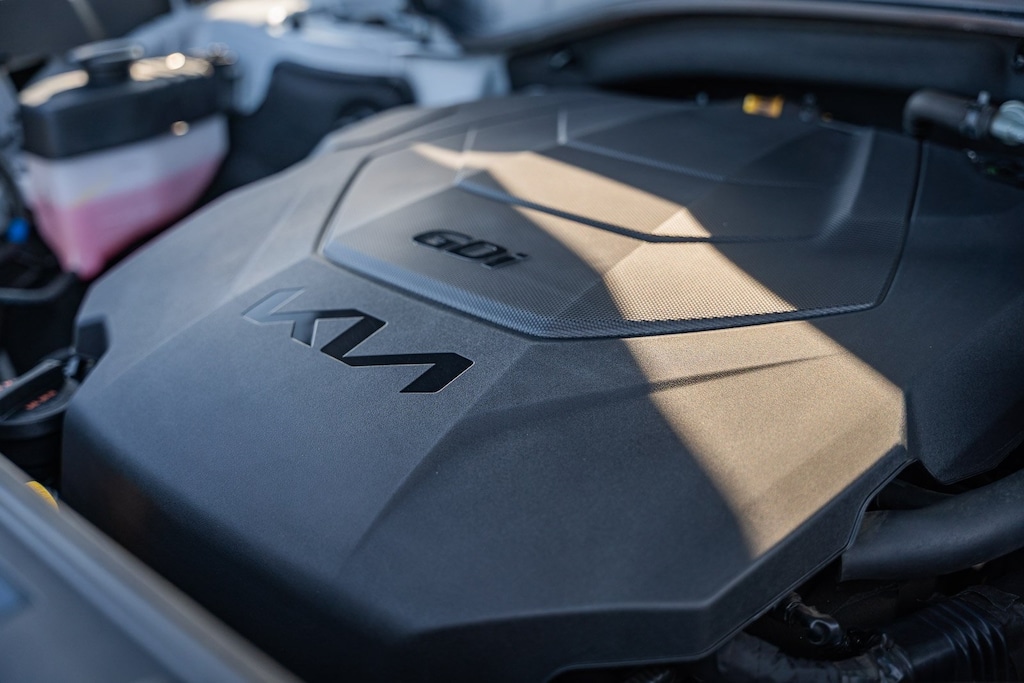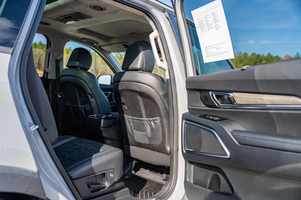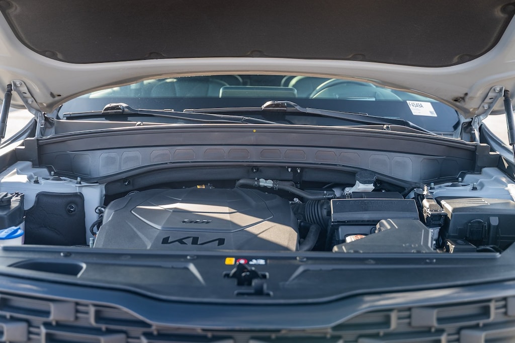 This vehicle comes equipped with Nightfall Edition Package (Black Finish Radiator Grille, Body Color Exterior Door Handles, Exclusive Black Fog Light Bezel, Exclusive Black Headlight Bezels, Front & Rear Gloss Black Finish Bumper Skid Plates, Gloss Black Finish Exterior Emblems, Gloss Black Finish Front & Rear Door Garnish, Gloss Black Finish Roof Rails, and Wheels: 20" x 7.5" Exclusive Black Alloy), SX Prestige Package (110V Inverter, Heads-Up Display, Heated & Ventilated 2nd Row Seats, Premium Cloth Headliner & Pillar Trim, Premium Nappa Leather Seat Trim, and Rain-Sensing Front Windshield Wipers), Kia Certified, 10 Speakers, 3.648 Axle Ratio, 3rd row seats: split-bench, 4-Wheel Disc Brakes, ABS brakes, Air Conditioning, Alloy wheels, AM/FM radio: SiriusXM, Apple CarPlay & Android Auto, Auto High-beam Headlights, Auto-dimming Rear-View mirror, Automatic temperature control, Brake assist, Bumpers: body-color, Carpeted Floor Mats, Compass, Delay-off headlights, Driver door bin, Driver vanity mirror, Dual front impact airbags, Dual front side impact airbags, Electronic Stability Control, Emergency communication system: 911 Connect, Four wheel independent suspension, Front anti-roll bar, Front Bucket Seats, Front Center Armrest, Front dual zone A/C, Front fog lights, Front reading lights, Fully automatic headlights, Garage door transmitter: HomeLink, harman/kardon® Speakers, Heated & Ventilated Front Bucket Seats, Heated door mirrors, Heated front seats, Heated steering wheel, Illuminated entry, Knee airbag, Leather Seat Trim, Leather Shift Knob, Leather steering wheel, Low tire pressure warning, Memory seat, Navigation System, Occupant sensing airbag, Outside temperature display, Overhead airbag, Overhead console, Panic alarm, Passenger door bin, Passenger vanity mirror, Power door mirrors, Power driver seat, Power Liftgate, Power moonroof, Power passenger seat, Power steering, Power windows, Radio data system, Radio: AM/FM harman/kardon Audio System, Rear air conditioning, Rear anti-roll bar, Rear audio controls, Rear reading lights, Rear window defroster, Rear window wiper, Reclining 3rd row seat, Remote keyless entry, Roof rack: rails only, Security system, Smart Key w/ Push Button and Remote Start, Speed control, Speed-sensing steering, Split folding rear seat, Spoiler, Steering wheel mounted audio controls, Tachometer, Telescoping steering wheel, Tilt steering wheel, Traction control, Trip computer, Turn signal indicator mirrors, Variably intermittent wipers, Ventilated front seats, and Wheels: 20" x 7.5" Black Alloy.