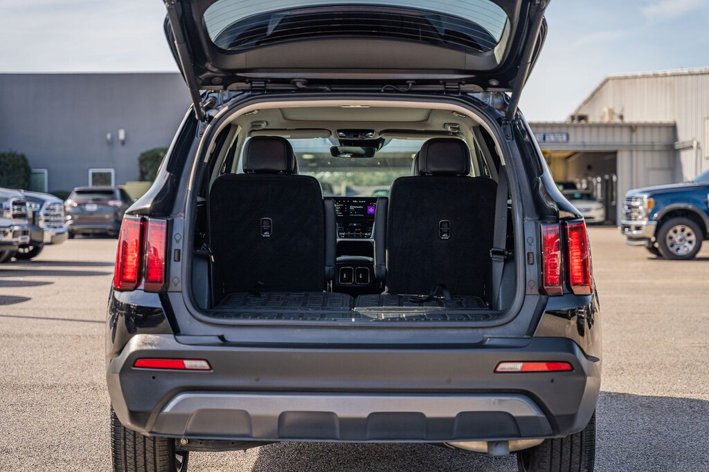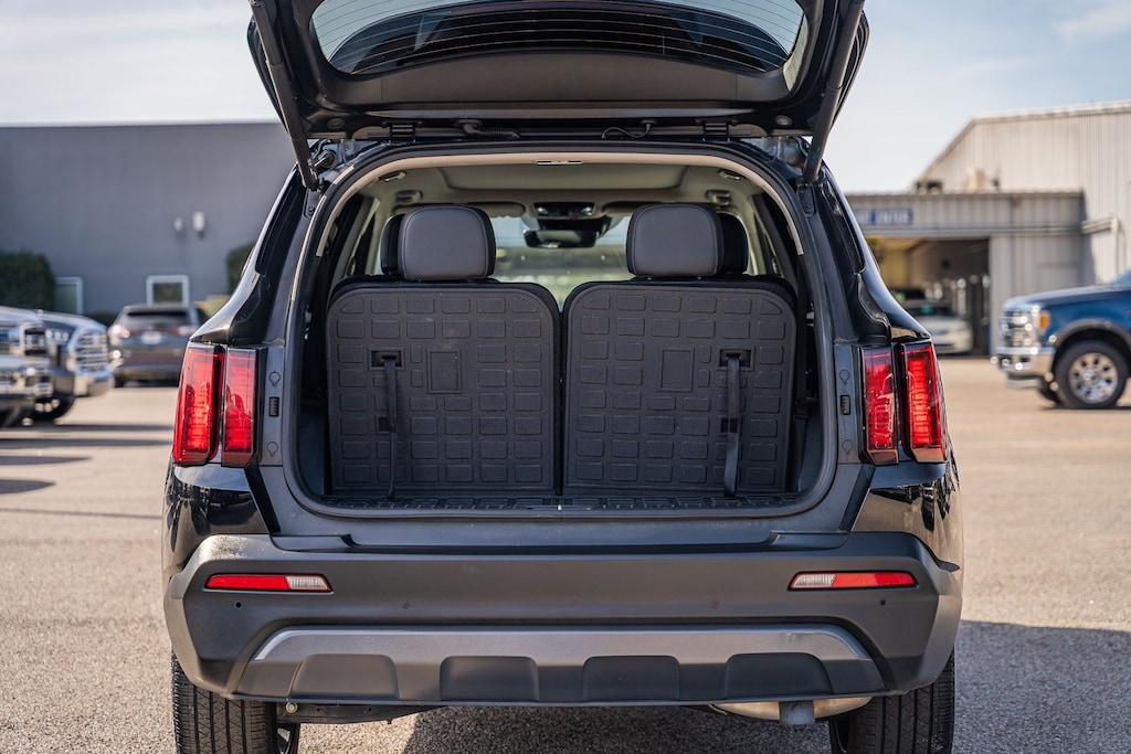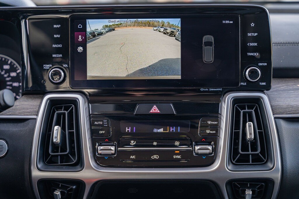 This vehicle comes equipped with Ford Blue Certified Eligible Certified, AWD, 3.316 Axle Ratio, 3rd row seats: split-bench, 4-Wheel Disc Brakes, 6 Speakers, ABS brakes, Air Conditioning, Alloy wheels, AM/FM radio: SiriusXM, Apple CarPlay & Android Auto, Auto High-beam Headlights, Auto-dimming Rear-View mirror, Automatic temperature control, Brake assist, Bumpers: body-color, Cargo Cover, Cargo Net, Carpet Floor Mats, Carpeted Cargo Mat w/Seatback Protection, Delay-off headlights, Driver door bin, Driver vanity mirror, Dual front impact airbags, Dual front side impact airbags, Electronic Stability Control, Emergency communication system, Exterior Parking Camera Rear, Four wheel independent suspension, Front anti-roll bar, Front Bucket Seats, Front Center Armrest, Front dual zone A/C, Front fog lights, Front reading lights, Fully automatic headlights, Heated door mirrors, Heated Front Bucket Seats, Heated front seats, Illuminated entry, Knee airbag, Leather Shift Knob, Leather steering wheel, Low tire pressure warning, Navigation System, Occupant sensing airbag, Outside temperature display, Overhead airbag, Overhead console, Panic alarm, Passenger door bin, Passenger vanity mirror, Power door mirrors, Power driver seat, Power Liftgate, Power moonroof, Power passenger seat, Power steering, Power windows, Radio data system, Radio: AM/FM Audio System, Rear air conditioning, Rear anti-roll bar, Rear reading lights, Rear window defroster, Rear window wiper, Remote keyless entry, Roof rack: rails only, Security system, Smart Key w/ Push Button and Remote Start, Speed control, Speed-sensing steering, Split folding rear seat, Spoiler, Steering wheel mounted audio controls, SynTex Artificial Leather Seat Trim, Tachometer, Telescoping steering wheel, Tilt steering wheel, Traction control, Trip computer, Turn signal indicator mirrors, Variably intermittent wipers, Wheel Locks, and Wheels: 8.5J x 20" Matte Gray Alloy.