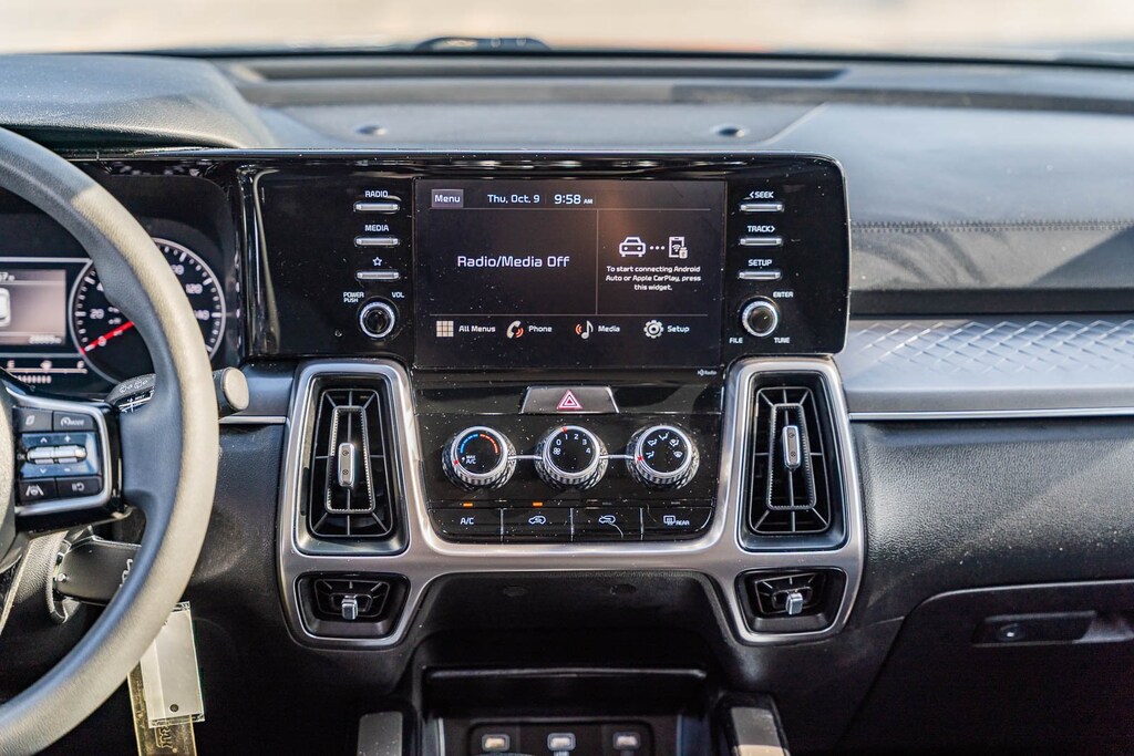 This vehicle comes equipped with Ford Blue Certified Eligible Certified, 3.798 Axle Ratio, 3rd row seats: split-bench, 4-Wheel Disc Brakes, 6 Speakers, 7.0J x 17" Alloy Wheels, ABS brakes, Air Conditioning, Alloy wheels, AM/FM radio, Apple CarPlay & Android Auto, Auto High-beam Headlights, Brake assist, Bumpers: body-color, Carpet Floor Mats, Cloth Seat Trim, Delay-off headlights, Driver door bin, Driver vanity mirror, Dual front impact airbags, Dual front side impact airbags, Electronic Stability Control, Exterior Parking Camera Rear, Four wheel independent suspension, Front anti-roll bar, Front Bucket Seats, Front Center Armrest, Front reading lights, Fully automatic headlights, Heated door mirrors, Illuminated entry, Knee airbag, Low tire pressure warning, Occupant sensing airbag, Outside temperature display, Overhead airbag, Overhead console, Panic alarm, Passenger door bin, Passenger vanity mirror, Power door mirrors, Power steering, Power windows, Radio data system, Radio: AM/FM Audio System, Rear anti-roll bar, Rear reading lights, Rear seat center armrest, Rear window defroster, Rear window wiper, Remote keyless entry, Security system, Speed control, Speed-sensing steering, Split folding rear seat, Spoiler, Steering wheel mounted audio controls, Tachometer, Telescoping steering wheel, Tilt steering wheel, Traction control, Trip computer, Turn signal indicator mirrors, and Variably intermittent wipers.