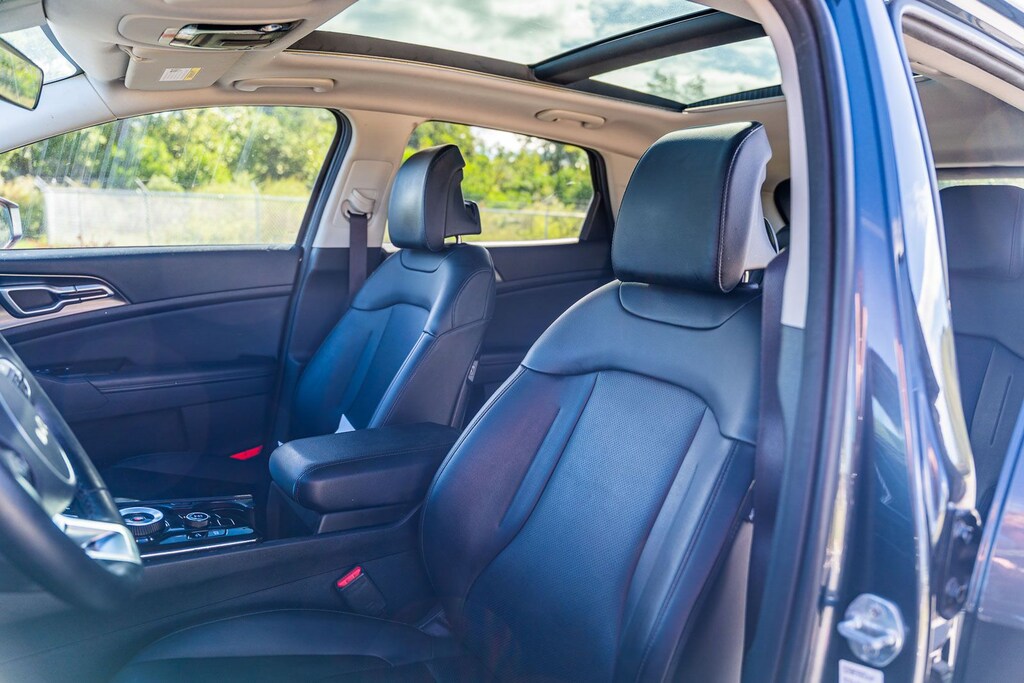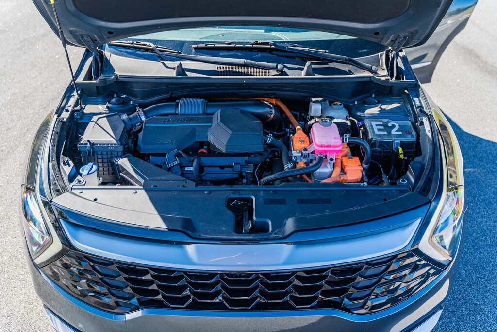 This Sportage Hybrid EX includes EX Premium Package (LED Interior Lighting, Panoramic Sunroof, and Smart Power Liftgate), Kia Certified, 1.6L Turbo GDI 4-Cylinder, 4-Wheel Disc Brakes, 6 Speakers, ABS brakes, Air Conditioning, Alloy wheels, AM/FM radio: SiriusXM, Apple CarPlay & Android Auto, Auto High-beam Headlights, Automatic temperature control, Axle Ratio: 3.32, Brake assist, Bumpers: body-color, Carpet Floor Mats, Compass, Delay-off headlights, Driver door bin, Driver vanity mirror, Dual front impact airbags, Dual front side impact airbags, Electronic Stability Control, Emergency communication system, Four wheel independent suspension, Front anti-roll bar, Front Bucket Seats, Front Center Armrest, Front dual zone A/C, Fully automatic headlights, Heated door mirrors, Heated Front Bucket Seats, Heated front seats, Heated steering wheel, Illuminated entry, Low tire pressure warning, Navigation System, Occupant sensing airbag, Outside temperature display, Overhead airbag, Overhead console, Panic alarm, Passenger door bin, Passenger vanity mirror, Power door mirrors, Power driver seat, Power steering, Power windows, Radio: AM/FM/HD Audio System, Rain sensing wipers, Rear anti-roll bar, Rear seat center armrest, Rear window defroster, Rear window wiper, Remote keyless entry, Security system, Speed control, Speed-sensing steering, Split folding rear seat, Spoiler, Steering wheel mounted audio controls, SynTex Leatherette Seat Trim, Tachometer, Telescoping steering wheel, Tilt steering wheel, Traction control, Trip computer, Turn signal indicator mirrors, Variably intermittent wipers, and Wheels: 18" x 7.5J Machined Alloy . While every effort has been made to ensure display of accurate data, the vehicle listings within this web site may not reflect all accurate vehicle items. All Inventory listed is subject to prior sale. The vehicle photo displayed may be an example only. Pricing throughout the web site does not include any options that may have been installed at the dealership. Please see the dealer for details. Vehicles may be in transit or currently in production. Some vehicles are shown with optional equipment. See the actual vehicle for complete accuracy of features, options & pricing. Because of the numerous possible combinations of vehicle models, styles, colors and options, the vehicle pictures on this site may not match your vehicle exactly; however, it will match as closely as possible. Some vehicle images shown are stock photos and may not reflect your exact choice of vehicle, color, trim and specification. Not responsible for pricing or typographical errors. Virtual Inventory, Available Configurations and In-Transit inventory contains vehicles that have not actually been manufactured. These vehicles show consumers sample vehicles that may be available. Pricing, Options, Color, and other data pertaining to these vehicles are provided for example only. All information pertaining to these vehicles should be independently verified through the dealer. 38/38 City/Highway MPG