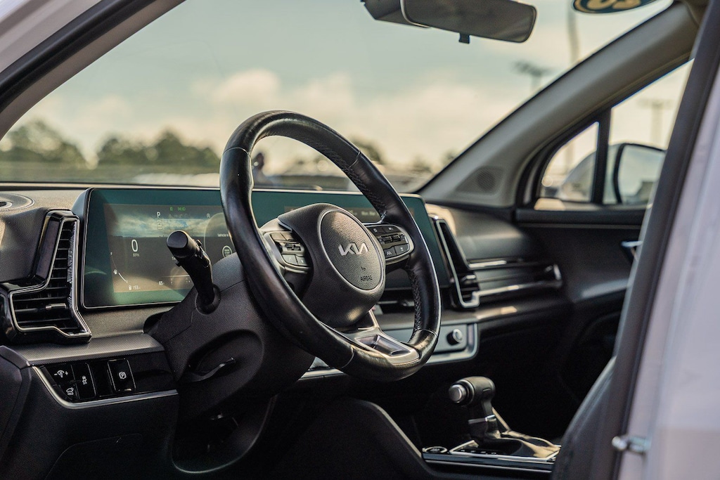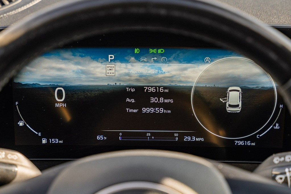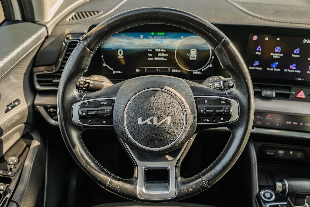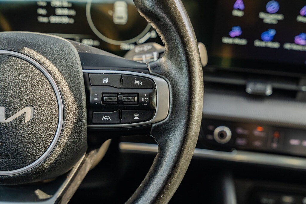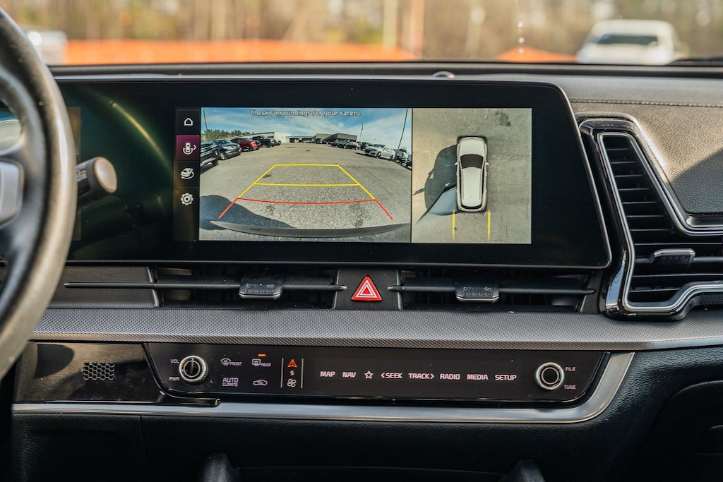 This vehicle comes equipped with Kia Certified, 4-Wheel Disc Brakes, 8 Speakers, ABS brakes, Air Conditioning, Alloy wheels, AM/FM radio: SiriusXM, Apple CarPlay & Android Auto, Auto High-beam Headlights, Auto-dimming Rear-View mirror, Automatic temperature control, Axle Ratio: 3.648, Brake assist, Bumpers: body-color, Carpeted Floor Mats, Compass, Delay-off headlights, Driver door bin, Driver vanity mirror, Dual front impact airbags, Dual front side impact airbags, Electronic Stability Control, Emergency communication system, Four wheel independent suspension, Front anti-roll bar, Front Bucket Seats, Front Center Armrest, Front dual zone A/C, Front fog lights, Front reading lights, Fully automatic headlights, Garage door transmitter: HomeLink, harman/kardon® Speakers, Heated & Ventilated Front Bucket Seats, Heated door mirrors, Heated front seats, Heated steering wheel, Illuminated entry, Leather Shift Knob, Leather steering wheel, Low tire pressure warning, Memory seat, Navigation System, Occupant sensing airbag, Outside temperature display, Overhead airbag, Overhead console, Panic alarm, Passenger door bin, Passenger vanity mirror, Power door mirrors, Power driver seat, Power Liftgate, Power moonroof, Power passenger seat, Power steering, Power windows, Premium Leatherette Seat Trim, Radio: AM/FM/HD Audio System, Rain sensing wipers, Rear anti-roll bar, Rear reading lights, Rear seat center armrest, Rear window defroster, Rear window wiper, Remote keyless entry, Security system, Speed control, Speed-sensing steering, Split folding rear seat, Spoiler, Steering wheel mounted audio controls, Tachometer, Telescoping steering wheel, Tilt steering wheel, Traction control, Trip computer, Turn signal indicator mirrors, Variably intermittent wipers, Ventilated front seats, and Wheels: 19" Gloss Black Alloy.