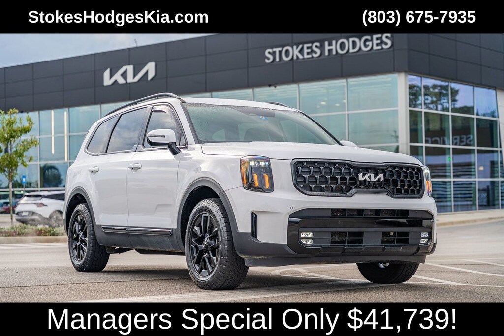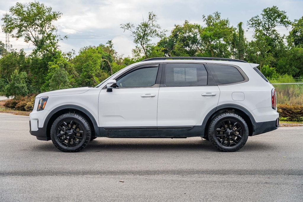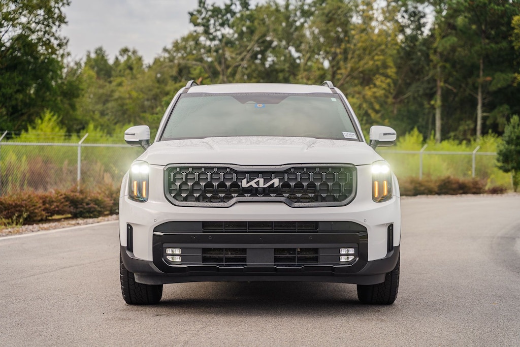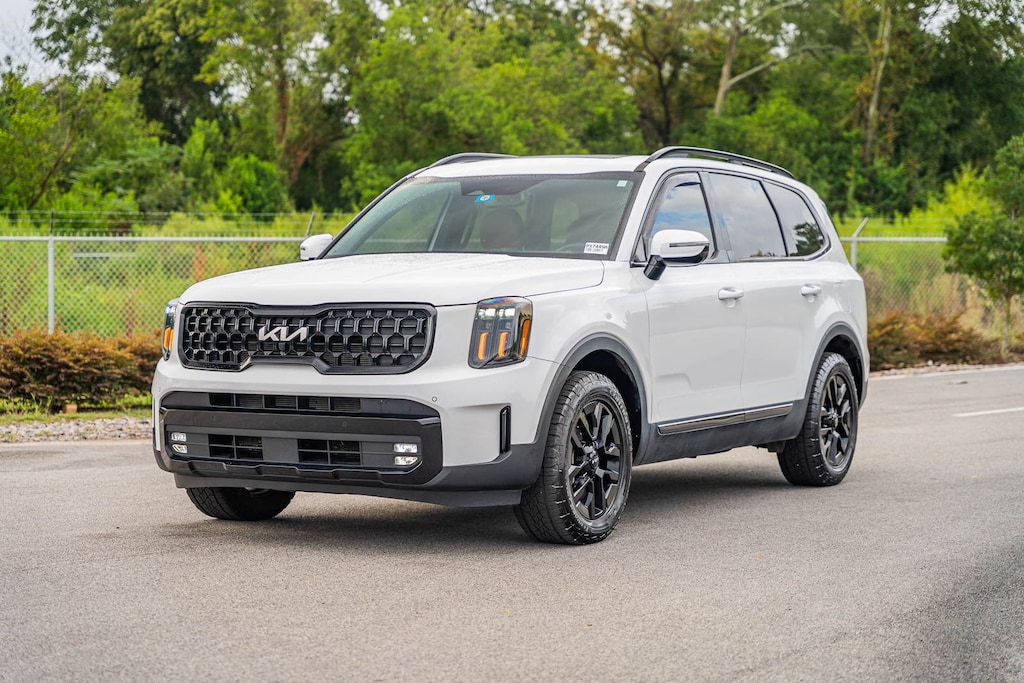 This Telluride SX X-Pro includes Terracotta Interior Color Package, Kia Certified, 10 Speakers, 3.648 Axle Ratio, 3rd row seats: split-bench, 4-Wheel Disc Brakes, ABS brakes, Air Conditioning, Alloy wheels, AM/FM radio: SiriusXM, Apple CarPlay & Android Auto, Auto High-beam Headlights, Auto-dimming Rear-View mirror, Auto-leveling suspension, Automatic temperature control, Black Wheel Locks, Brake assist, Bumpers: body-color, Compass, Delay-off headlights, Driver door bin, Driver vanity mirror, Dual front impact airbags, Dual front side impact airbags, Electronic Stability Control, Emergency communication system: 911 Connect, Exterior Parking Camera Rear, Four wheel independent suspension, Front anti-roll bar, Front Bucket Seats, Front Center Armrest, Front dual zone A/C, Front fog lights, Front reading lights, Fully automatic headlights, Garage door transmitter: HomeLink, harman/kardon® Speakers, Heated & Ventilated Front Bucket Seats, Heated door mirrors, Heated front seats, Heated steering wheel, Hybrid Cargo Net, Illuminated entry, Knee airbag, Leather Seat Trim, Leather Shift Knob, Leather steering wheel, Low tire pressure warning, Memory seat, Navigation System, Occupant sensing airbag, Outside temperature display, Overhead airbag, Overhead console, Panic alarm, Passenger door bin, Passenger vanity mirror, Power door mirrors, Power driver seat, Power Liftgate, Power moonroof, Power passenger seat, Power steering, Power windows, Radio data system, Radio: AM/FM Harman Kardon Audio System, Rear air conditioning, Rear anti-roll bar, Rear audio controls, Rear reading lights, Rear side impact airbag, Rear window defroster, Rear window wiper, Reclining 3rd row seat, Remote keyless entry, Roof rack: rails only, Security system, Smart Key w/ Push Button and Remote Start, Speed control, Speed-sensing steering, Split folding rear seat, Spoiler, Steering wheel mounted audio controls, Tachometer, Telescoping steering wheel, Tilt steering wheel, Traction control, Trip computer, Turn signal indicator mirrors, Variably intermittent wipers, Ventilated front seats, and Wheels: 18" x 7.5" Black Finish X-PRO Exclusive . While every effort has been made to ensure display of accurate data, the vehicle listings within this web site may not reflect all accurate vehicle items. All Inventory listed is subject to prior sale. The vehicle photo displayed may be an example only. Pricing throughout the web site does not include any options that may have been installed at the dealership. Please see the dealer for details. Vehicles may be in transit or currently in production. Some vehicles are shown with optional equipment. See the actual vehicle for complete accuracy of features, options & pricing. Because of the numerous possible combinations of vehicle models, styles, colors and options, the vehicle pictures on this site may not match your vehicle exactly; however, it will match as closely as possible. Some vehicle images shown are stock photos and may not reflect your exact choice of vehicle, color, trim and specification. Not responsible for pricing or typographical errors. Virtual Inventory, Available Configurations and In-Transit inventory contains vehicles that have not actually been manufactured. These vehicles show consumers sample vehicles that may be available. Pricing, Options, Color, and other data pertaining to these vehicles are provided for example only. All information pertaining to these vehicles should be independently verified through the dealer.