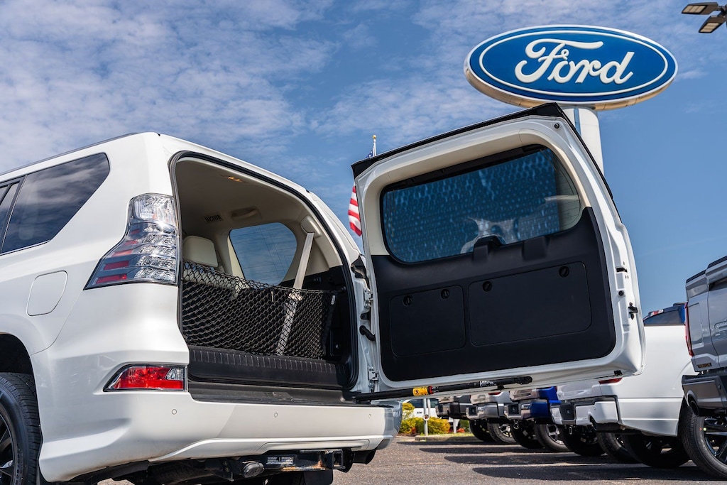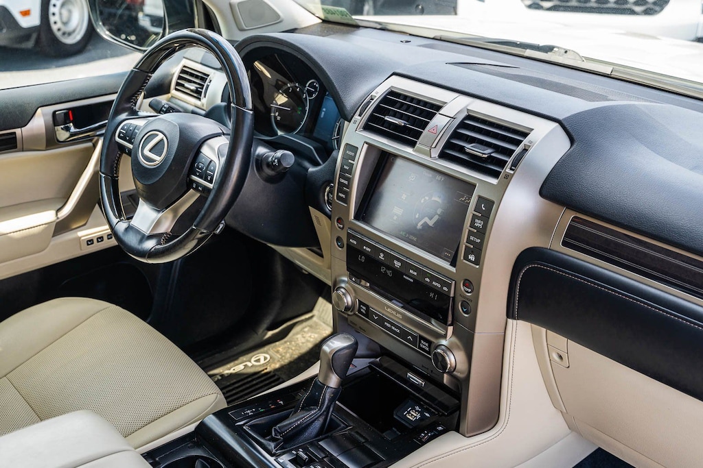 This vehicle comes equipped with Ford Blue Certified Eligible Certified, 3.909 Axle Ratio, 3rd row seats: split-bench, 4-Wheel Disc Brakes, 9 Speakers, ABS brakes, Air Conditioning, Alloy wheels, AM/FM radio: SiriusXM, Anti-whiplash front head restraints, Auto High-beam Headlights, Auto tilt-away steering wheel, Auto-dimming Rear-View mirror, Automatic temperature control, Bodyside moldings, Brake assist, Bumpers: body-color, CD player, Compass, Delay-off headlights, Driver door bin, Driver vanity mirror, Driver's Seat Mounted Armrest, Dual front impact airbags, Dual front side impact airbags, Electronic Stability Control, Emergency communication system, Exterior Parking Camera Rear, Front anti-roll bar, Front Bucket Seats, Front dual zone A/C, Front reading lights, Front wheel independent suspension, Fully automatic headlights, Garage door transmitter: HomeLink, Heated door mirrors, Illuminated entry, Illuminated running boards, Knee airbag, Leather Shift Knob, Leather steering wheel, Low tire pressure warning, Memory seat, Occupant sensing airbag, Outside temperature display, Overhead airbag, Overhead console, Panic alarm, Passenger door bin, Passenger seat mounted armrest, Passenger vanity mirror, Power door mirrors, Power driver seat, Power moonroof, Power passenger seat, Power steering, Power windows, Radio data system, Radio: AM/FM Lexus Multimedia System, Rear anti-roll bar, Rear reading lights, Rear seat center armrest, Rear side impact airbag, Rear window defroster, Rear window wiper, Remote keyless entry, Roof rack: rails only, Security system, Speed control, Speed-sensing steering, Split folding rear seat, Spoiler, Steering wheel memory, Steering wheel mounted audio controls, Synthetic Leather NuLuxe Seat Trim, Tachometer, Telescoping steering wheel, Tilt steering wheel, Traction control, Trip computer, Turn signal indicator mirrors, Variably intermittent wipers, and Wheels: 18" x 7.5J 6-Spoke Aluminum Alloy.