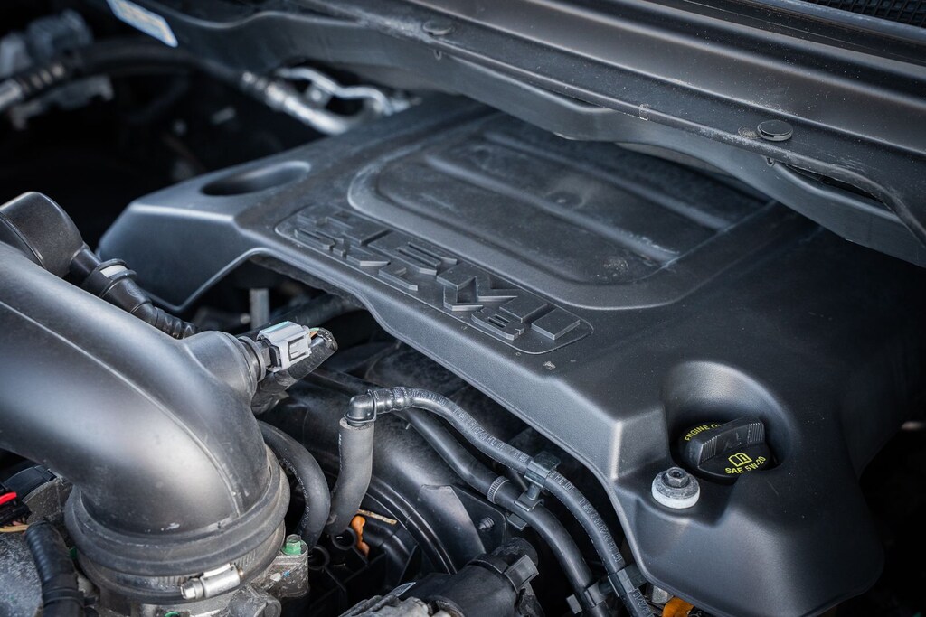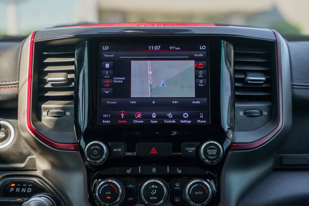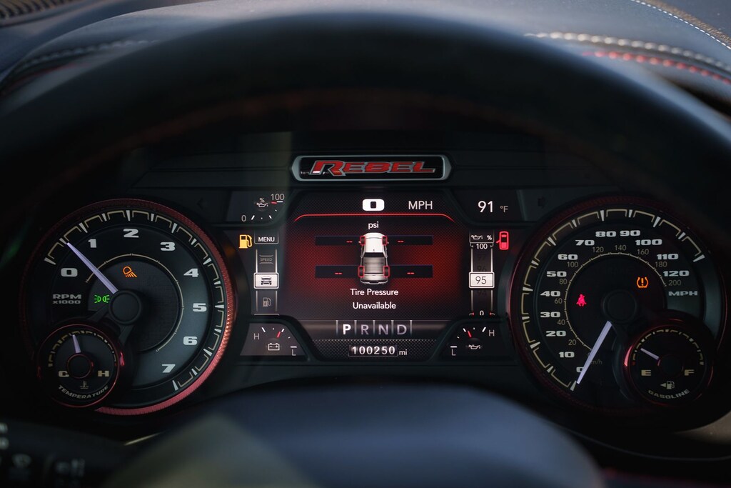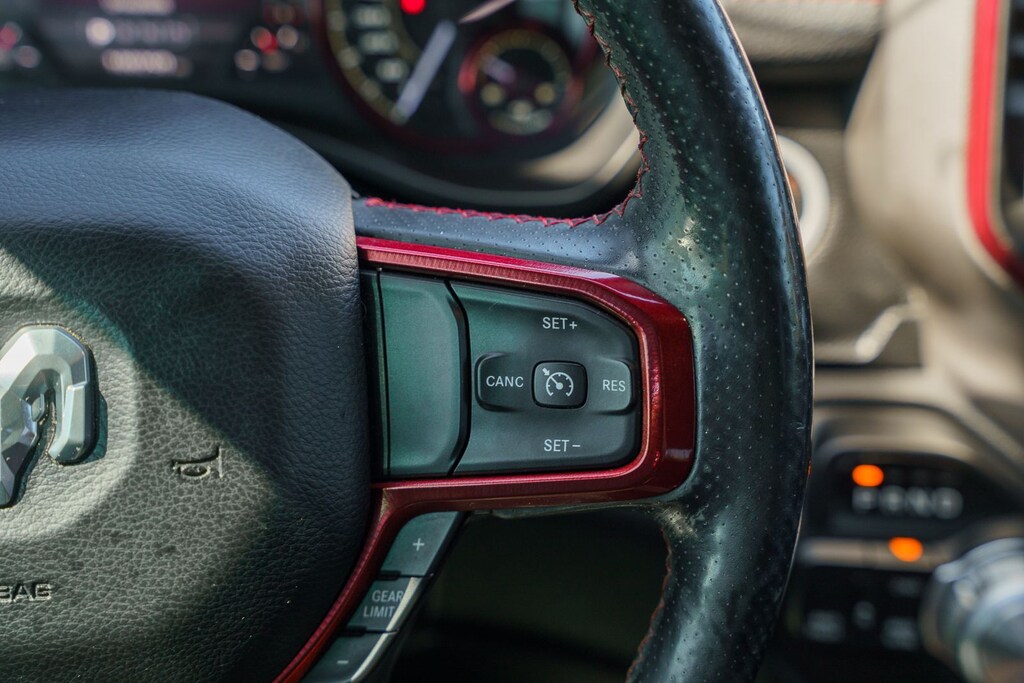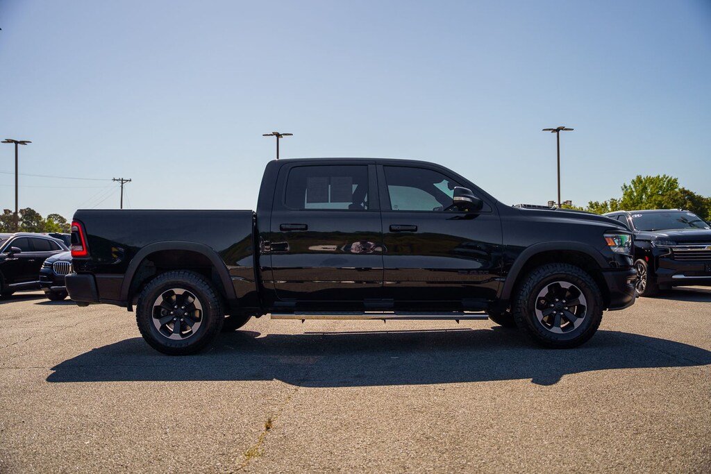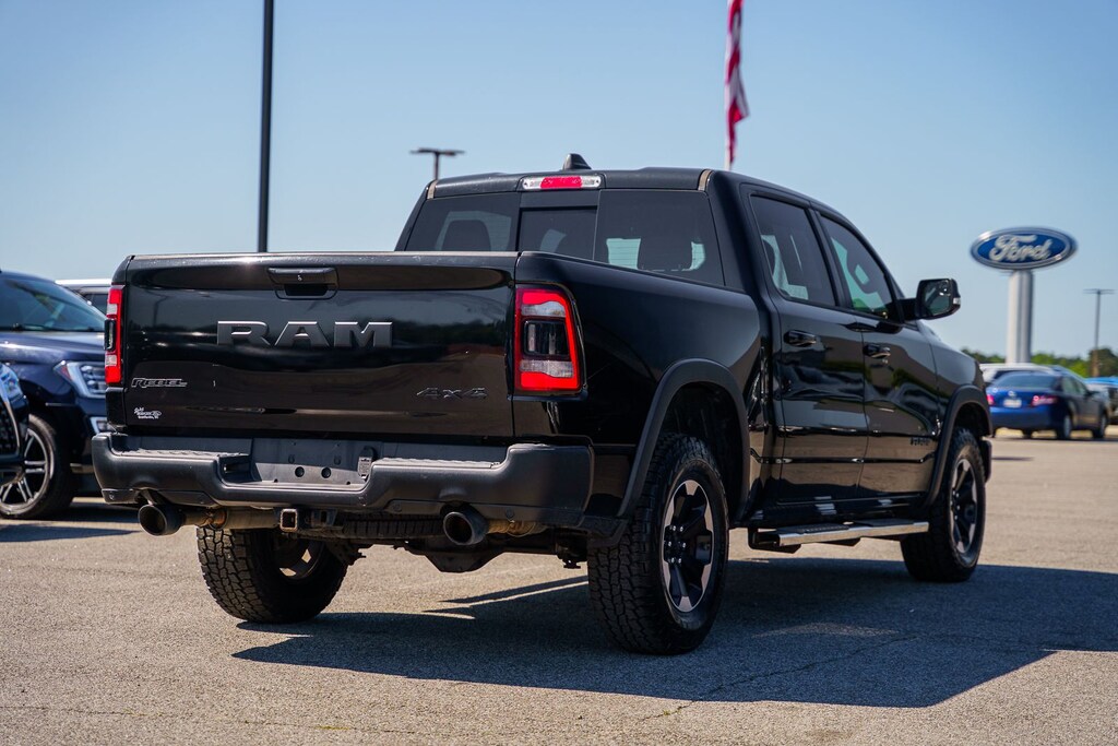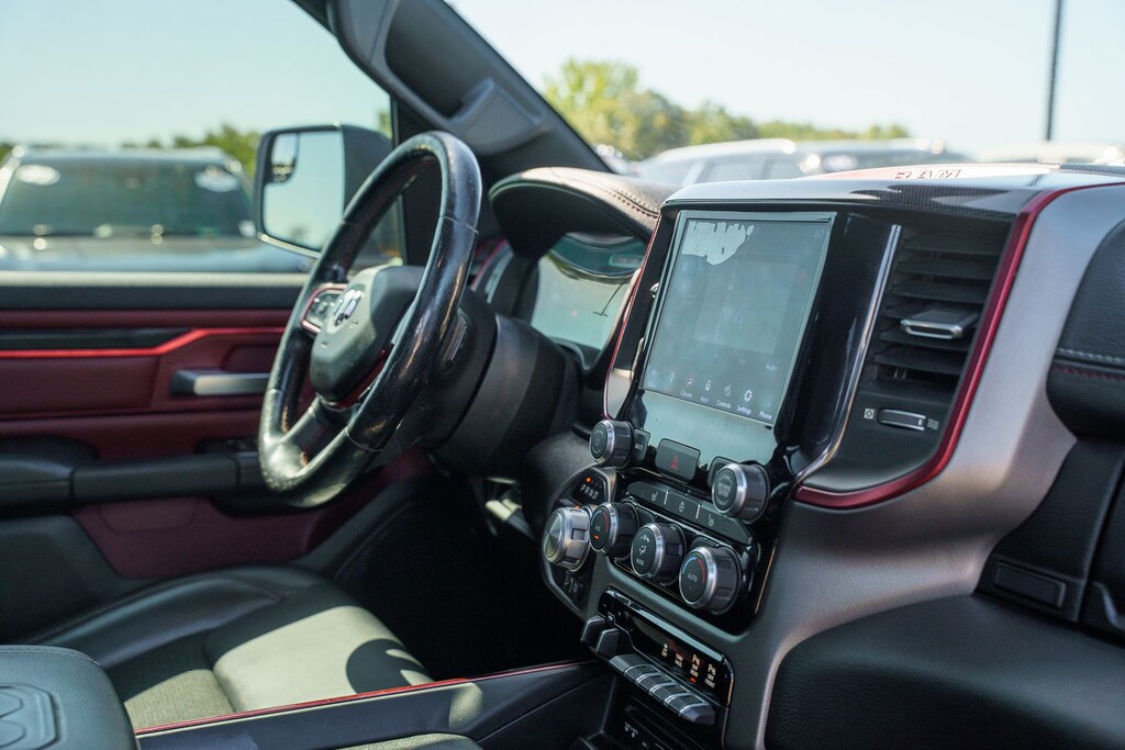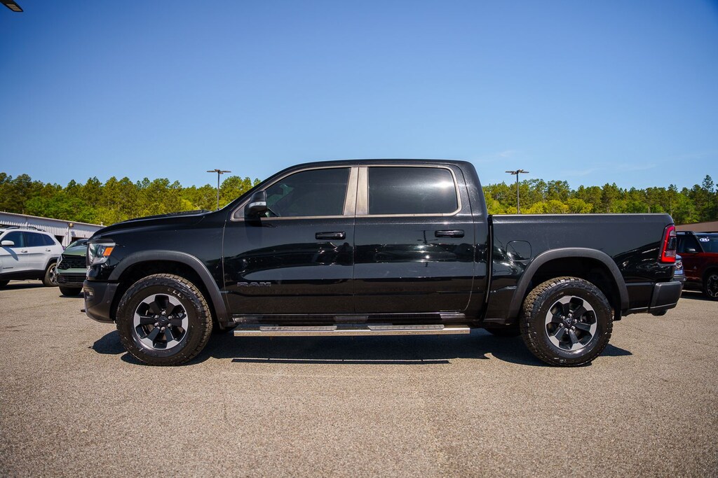 This vehicle comes equipped with Quick Order Package 25W Rebel (Body Color Door Handles), Rebel Level 2 Equipment Group (115V Auxiliary Rear Power Outlet, 2 USB Full Function/Charge Only Media Hub, 8.4" Touchscreen Display, Air Conditioning ATC w/Dual Zone Control, Apple CarPlay, Auto-Dimming Exterior Driver Mirror, Auto-Dimming Rear-View Mirror, Exterior Mirrors Courtesy Lamps, Exterior Mirrors w/Supplemental Signals, Foam Bottle Insert (Door Trim Panel), Google Android Auto, Heated Front Seats, Heated Steering Wheel, Integrated Center Stack Radio, ParkSense Front/Rear Park Assist w/Stop, Power Adjustable Pedals, Power Heated Fold Away Mirrors, Power-Folding Mirrors, Radio: Uconnect 4 w/8.4" Display, Rain Sensitive Windshield Wipers, Rear Dome w/On/Off Switch Lamp, Rear Underseat Compartment Storage, Rear Window Defroster, Remote Proximity Keyless Entry, Remote Start System, Security Alarm, Single Disc Remote CD Player, Sun Visors w/Illuminated Vanity Mirrors, and Universal Garage Door Opener), Ford Blue Certified Eligible Certified, 1-Year SiriusXM Radio Service, 1-Yr SiriusXM Guardian Trial, 3.92 Rear Axle Ratio, 4-Wheel Disc Brakes, 48V Belt Starter Generator, 5-Year SiriusXM Traffic Service, 5-Year SiriusXM Travel Link Service, 6 Speakers, ABS brakes, Air Conditioning, Alloy wheels, AM/FM radio: SiriusXM, Brake assist, Cloth/Vinyl Low Back Bucket Seats, Compass, Delay-off headlights, Disassociated Touchscreen Display, Dome Dual LED Reading Lamp, Driver door bin, Dual front impact airbags, Dual front side impact airbags, Dual-Pane Panoramic Sunroof, Electronic Stability Control, For Details, Visit DriveUconnect.com, For More Info, Call 800-643-2112, Front anti-roll bar, Front Bucket Seats, Front Center Armrest w/Storage, Front fog lights, Front reading lights, Front wheel independent suspension, Fully automatic headlights, GPS Antenna Input, GPS Navigation, HD Radio, Heated door mirrors, Illuminated entry, Leather steering wheel, Low tire pressure warning, Manufacturer's Statement of Origin, No Satellite Coverage w/HI/AK/PR/VI/GU, Occupant sensing airbag, Outside temperature display, Overhead airbag, Overhead console, Overhead LED Lamps, Panic alarm, ParkView Rear Back-Up Camera, Passenger door bin, Passenger vanity mirror, Power door mirrors, Power driver seat, Power steering, Power windows, Premium Overhead Console, Radio data system, Radio: Uconnect 3 w/5" Display, Radio: Uconnect 4C Nav w/8.4" Display, Rear anti-roll bar, Rear seat center armrest, Rear step bumper, Remote keyless entry, SiriusXM Satellite Radio, SiriusXM Traffic Plus, SiriusXM Travel Link, Speed control, Split folding rear seat, Steering wheel mounted audio controls, Tachometer, Telescoping steering wheel, Tilt steering wheel, Traction control, Trip computer, Variably intermittent wipers, Voltmeter, and Wheels: 18" x 8" Painted Black.