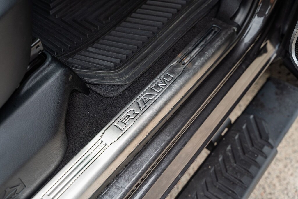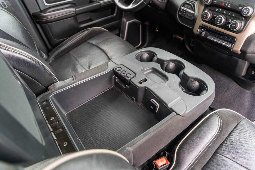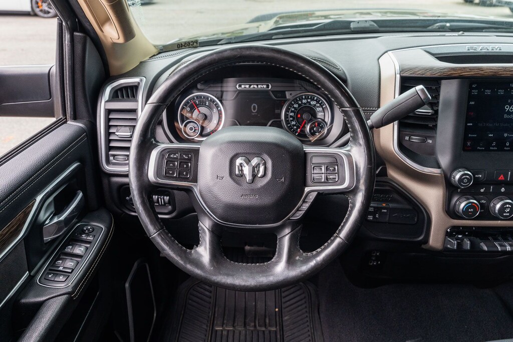This vehicle comes equipped with Quick Order Package 2HH Laramie, Ford Blue Certified Eligible Certified, 10 Speakers, 115V Auxiliary Rear Power Outlet, 2 Way Rear Headrest Seat, 220 Amp Alternator, 3.73 Axle Ratio, 4 Way Front Headrests, 4-Wheel Disc Brakes, 400W Inverter, 8.4" Touchscreen Display, ABS brakes, Active Noise Control System, Adjustable pedals, Air Conditioning, Alloy wheels, AM/FM radio: SiriusXM, Anti-Spin Differential Rear Axle, Apple CarPlay, Apple CarPlay/Android Auto, Auto-dimming Rear-View mirror, Automatic temperature control, Brake assist, Bumpers: chrome, Compass, Delay-off headlights, Driver door bin, Driver vanity mirror, Dual front impact airbags, Dual front side impact airbags, Electronic Stability Control, Electronically Controlled Throttle, Front anti-roll bar, Front Center Armrest w/Storage, Front dual zone A/C, Front fog lights, Front reading lights, Front Seat Back Map Pockets, Fully automatic headlights, Garage door transmitter, Google Android Auto, GPS Antenna Input, Heated door mirrors, Heated Front Seats, Heated front seats, Heated Steering Wheel, Heated steering wheel, Illuminated entry, Integrated Center Stack Radio, Integrated Voice Command w/Bluetooth, Leather steering wheel, Leather Trim 40/20/40 Bench Seat, Low tire pressure warning, Manufacturer's Statement of Origin, Occupant sensing airbag, Outside temperature display, Overhead airbag, Overhead console, Panic alarm, ParkView Rear Back-Up Camera, Passenger door bin, Passenger vanity mirror, Power 2-Way Driver Lumbar Adjust, Power 2-Way Passenger Lumbar Adjust, Power Adjust 8-Way Driver Seat, Power Adjust 8-Way Front Passenger Seat, Power door mirrors, Power driver seat, Power passenger seat, Power steering, Power windows, Radio data system, Radio: Uconnect 4 w/8.4" Display, Rear 60/40 Folding Seat, Rear anti-roll bar, Rear reading lights, Rear seat center armrest, Rear step bumper, Rear window defroster, Remote keyless entry, Security system, SiriusXM Satellite Radio, Speed control, Split folding rear seat, Steering wheel mounted audio controls, Tachometer, Tilt steering wheel, Tip Start, Traction control, Trip computer, Turn signal indicator mirrors, USB Host Flip, Variably intermittent wipers, Vendor Painted Cargo Box Tracking, Voltmeter, and Wheels: 18" x 8.0" Polished Aluminum.
