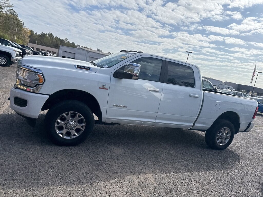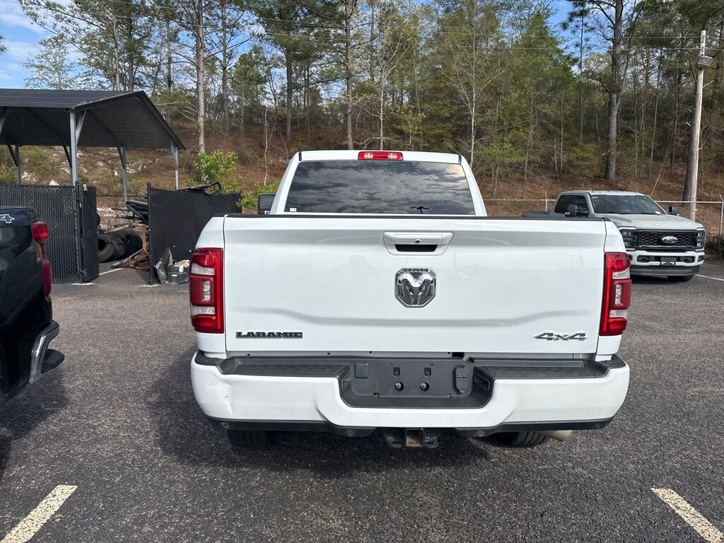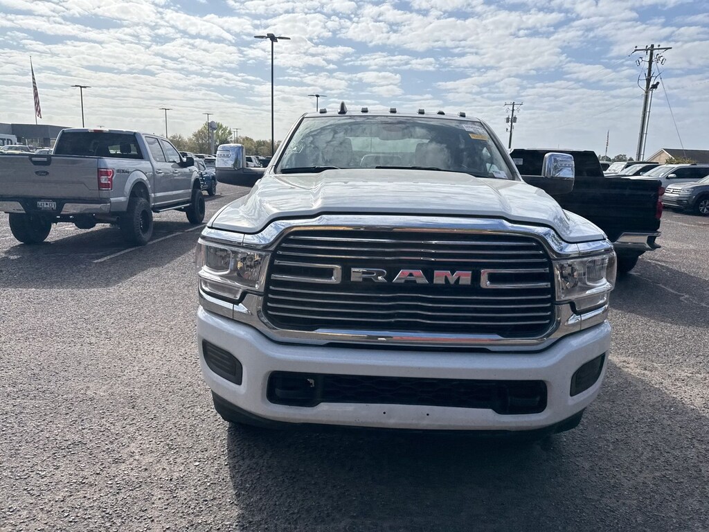 This vehicle comes equipped with Quick Order Package 2HH Laramie, Ram Certified, 10 Speakers, 115V Auxiliary Rear Power Outlet, 2 Way Rear Headrest Seat, 220 Amp Alternator, 3.73 Axle Ratio, 4 Way Front Headrests, 4-Wheel Disc Brakes, 4G LTE Wi-Fi Hot Spot, 5th Wheel/Gooseneck Towing Prep Group, ABS brakes, Active Noise Control System, Air Conditioning, Alexa Built-In, Alloy wheels, AM/FM radio: SiriusXM with 360L, Apple CarPlay, Apple CarPlay/Android Auto, Auto Power-Folding Mirrors, Auto-dimming Rear-View mirror, Automatic temperature control, Brake assist, Bumpers: body-color, Center Hub, Chrome Exterior Mirrors, Clearance Lamps, Compass, Connected Travel & Traffic Services, Connectivity - US/Canada, Delay-off headlights, Disassociated Touchscreen Display, Driver door bin, Driver vanity mirror, Dual front impact airbags, Dual front side impact airbags, Electronic Stability Control, Electronically Controlled Throttle, Emergency Vehicle Alert System (EVAS), Folding Flat Load Floor Storage, For Details Visit DriveUconnect.com, For More Info, Call 800-643-2112, Front anti-roll bar, Front Center Armrest w/Storage, Front dual zone A/C, Front License Plate Bracket, Front reading lights, Front Seat Back Map Pockets, Fully automatic headlights, Garage door transmitter, Global Telematics Box Module (TBM), Google Android Auto, GPS Antenna Input, GPS Navigation, HD Radio, Heated door mirrors, Heated Front Seats, Heated front seats, Heated Steering Wheel, Heated steering wheel, High Back Seats, Illuminated entry, Integrated Voice Command w/Bluetooth, Leather steering wheel, Leather Trim 40/20/40 Bench Seat, Low tire pressure warning, MOPAR Spray In Bedliner, Navigation System, Occupant sensing airbag, Off-Road Information Pages, Outside temperature display, Overhead airbag, Overhead console, Panic alarm, ParkView Rear Back-Up Camera, Passenger door bin, Passenger vanity mirror, Power 8-Way Adjustable Passenger Seat, Power Adjust 8-Way Driver Seat, Power Adjust Mirrors, Power door mirrors, Power driver seat, Power passenger seat, Power steering, Power windows, Power-Adjustable Convex Aux Mirrors, Radio data system, Radio: Uconnect 5 Nav w/8.4" Display, Rear 60/40 Folding Seat, Rear reading lights, Rear seat center armrest, Rear step bumper, Remote keyless entry, Security system, SiriusXM Radio Service, SiriusXM w/360L, Speed control, Split folding rear seat, Steering wheel mounted audio controls, Tachometer, Tilt steering wheel, Tip Start, Traction control, Trailer Tow Pages, Trip computer, Turn signal indicator mirrors, Variably intermittent wipers, Vendor Painted Cargo Box, Vendor Painted Cargo Box Tracking, Voltmeter, and Wheels: 18" x 8.0" Polished Aluminum.