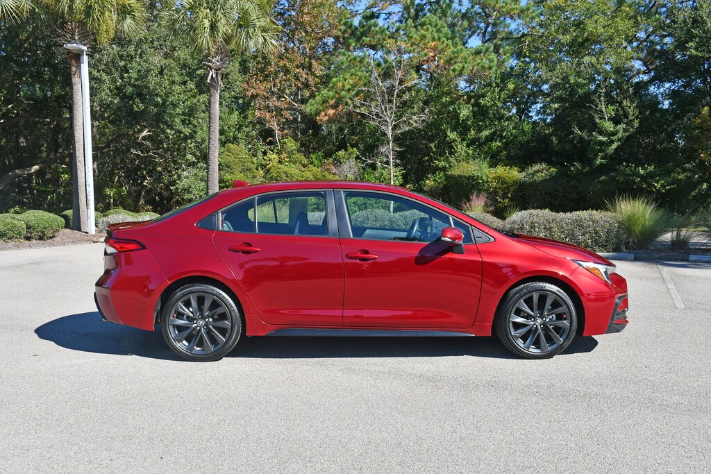 Personally, I was searching for a car that has a nice, sporty look to it, but most importantly, a car that I would feel safe driving. The exterior has a great, sporty and aggressive look compared to older Corolla models, while the interior is well-designed and comfortable—The dashboard has a clean, futuristic feel to it. I like that the dashboard also gives you the option to view your speed digitally, and displays speed-limit signs, brighten or dim control lights / LCD screen. The reverse camera has a nice view range while displaying great image quality. Taller drivers/passengers have lots of legroom upfront, but I’ll admit not so much legroom when sitting in the backseat. also something to think about when using lane assist—depending on the quality of road you’re driving on, the car sometimes picks up tire skid marks resulting in the car trying to divert away from it, but it rarely ever happens. Overall, it’s a great sporty and reliable car with great fuel economy.