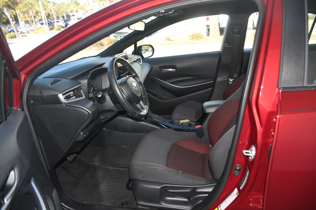 And so far, I like it. I was able to get a 2022 with leather seats, heated front, adjustable driver seat (lumbar support), stitching on the steering wheel and weather mats. I did notice a little bit of a pick-up in power mode on the highway, but it's not a race car. Gas mileage is great. The car had 571 miles on it when it gave me a warning of low fuel. The dash read 29 miles left until empty. I gassed up. The driver seat is comfortable with the options for adjustments. When you press the start button, the car is quiet once on. The car was preset for automatic door unlocking when you shut the car off. I disabled that on the touch screen for safety reasons. I want to be the one to unlock the doors. I keep some armor-all wipes in the door because the leather can get a little scuffed up looking. One time when I shut the car off, the dash showed, "window open." Cool. I think it's pretty fun to drive. IMO, the car needs better visibility. The touch screen should be lower and I removed the rear head rests. (They are easy to put on and take off). I don't often have rear passengers. The trunk is a little small. I haven't signed up for Toyota Connect yet (SOS button, Wi-fi, drive history, theft tracker). As far as value, I bought at a BAD time (during the chip shortage) so I did pay over sticker. However, I needed a reliable and safe car, and I owned a Corolla in the past - this one fit the bill. No more belts to change either. So far, So Good!