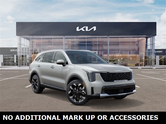 Prices do not include, tax, license, and $599.50 Administration Fees. Price includes: $2500 - KFA Dealer Choice Program: $2500 discount and 5.25% APR for 36 months. $30.08 per $1000 financed. Available to well qualified buyers who finance through Kia Finance America. 506. Exp. 03/02/2026 HEATED SEATS, LEATHER SEATS, USB PORT, BACKUP CAMERA, SATELLITE RADIO, BLUETOOTH, SYNC, NAVIGATION SYSTEM, SUNROOF, POWER LIFTGATE, 2nd Row Captain's Chairs, EX Premium Package, LED Interior Lighting, Radio: AM/FM Bose Premium Audio System. WE ONLY ADVERTISE REBATES THAT EVERY CUSTOMER QUALIFIES FOR AND WE DO NOT ADD ACCESSORIES THAT ARE MANDATORY PURCHASES. Silver 2026 Kia Sorento EX 8 Speed Dual Clutch 2.5L I4 DGI Turbocharged DOHC 16V LEV3-SULEV30 281hp