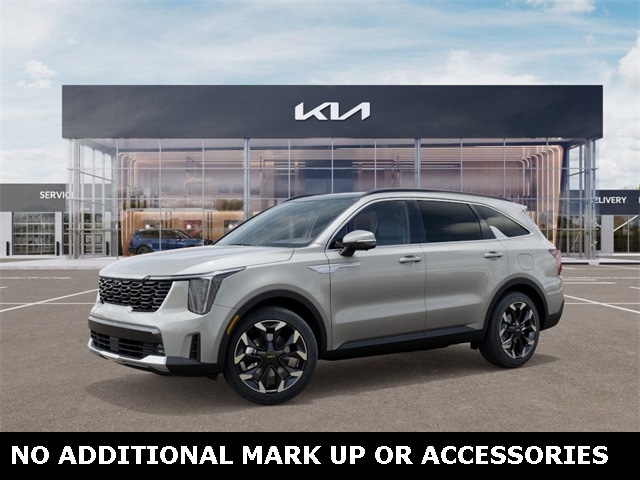 Prices do not include, tax, license, and $599.50 Administration Fees. Price includes: $2500 - KFA Dealer Choice Program: $2500 discount and 5.25% APR for 36 months. $30.08 per $1000 financed. Available to well qualified buyers who finance through Kia Finance America. 506. Exp. 02/02/2026 HEATED SEATS, LEATHER SEATS, USB PORT, BACKUP CAMERA, SATELLITE RADIO, BLUETOOTH, SYNC, NAVIGATION SYSTEM, SUNROOF, POWER LIFTGATE, ABS brakes, Active Cruise Control, Alloy wheels, Electronic Stability Control, Front dual zone A/C, Heated & Ventilated Front Bucket Seats, Heated door mirrors, Heated front seats, Illuminated entry, Low tire pressure warning, Navigation System, Power Liftgate, Power moonroof, Remote keyless entry, Traction control. WE ONLY ADVERTISE REBATES THAT EVERY CUSTOMER QUALIFIES FOR AND WE DO NOT ADD ACCESSORIES THAT ARE MANDATORY PURCHASES. New Price! Ivory Silver 2026 Kia Sorento SX 8 Speed Dual Clutch 2.5L I4 DGI Turbocharged DOHC 16V LEV3-SULEV30 281hp