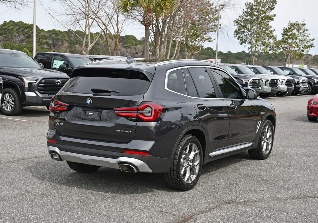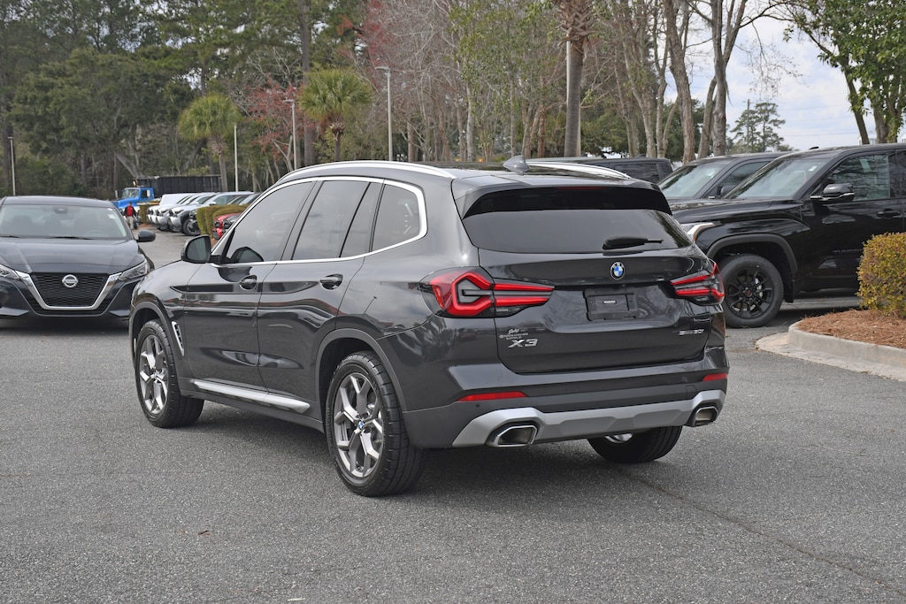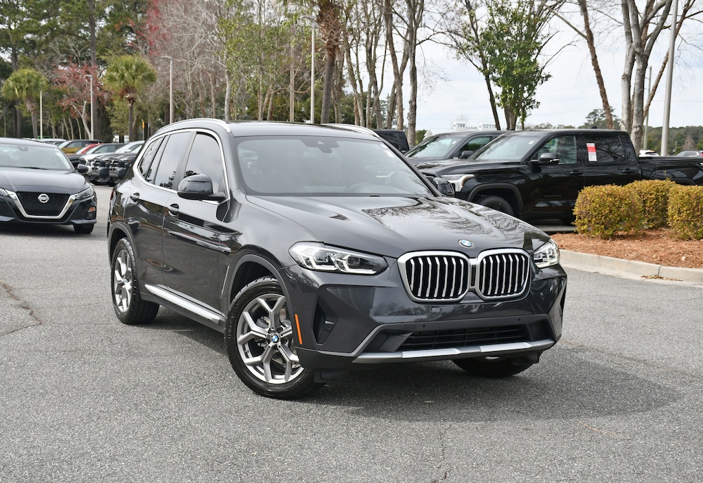 ***Stokes Toyota Hilton Head*** Panoramic Roof** 2022 BMW X3 sDrive30i in Dark Graphite, Factory Equipped With: Leather Seats, Power Windows, Power Locks, Cruise Control, Remote Keyless Entry, Integrated Back Up Camera, Navigation, Panormaic Sunroof, Alloy Wheels, Power Lift Gate, 12 Speakers, ABS brakes, Air Conditioning, Apple CarPlay & Android Auto Compatibility, Automatic temperature control, Bumpers: body-color, Dual front impact airbags, Dual front side impact airbags, Front Bucket Seats, Hi-Fi Sound System, Low tire pressure warning, Lumbar Support, Memory seat, Navigation, Panic alarm, Power door mirrors, Power Front Seats, Rear window defroster, Rear window wiper, Tilt steering wheel, Trip computer, Variably intermittent wipers, Wheels: 19" x 7.5" Y-Spoke (Style 693).