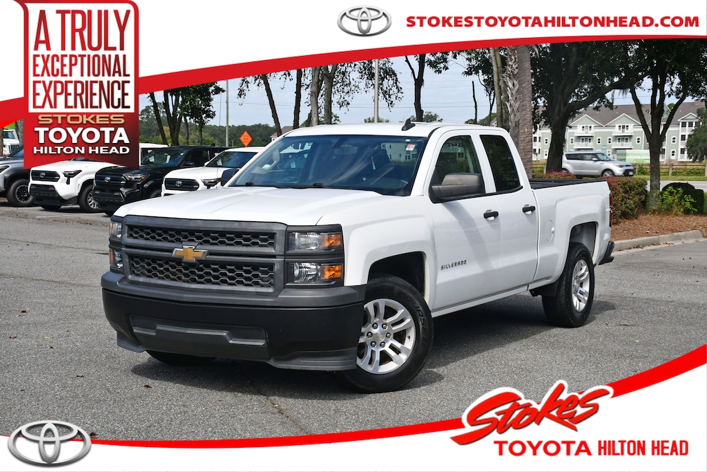 ***Stokes Toyota Hilton Head*** 2015 Chevrolet Silverado 1500 WT in Summit White, Factory Equipped With: Power Windows, Power Locks, Cruise Control, Integrated Back Up Camera, Alloy Wheels, 110-Volt AC Power Outlet, 150 Amp Alternator, 3.5" Diagonal Monochromatic Display, 6 Speaker Audio System, 6 Speakers, ABS brakes, Bed Liner, Black Power Adjustable Heated Outside Mirrors, Brake assist, Deep-Tinted Glass, Dual front impact airbags, Graphite-Colored Rubberized-Vinyl Floor Covering, Heavy-Duty Rear Locking Differential, Manual Tilt Wheel Steering Column, Power steering, Power Windows w/Driver Express Up, Preferred Equipment Group 1WT, Rear Vision Camera w/Dynamic Guide Lines, Remote Keyless Entry, SiriusXM Satellite Radio, Solar Absorbing Tinted Glass, Speed control, Trailering Equipment, Variably intermittent wipers, WT Convenience Package.