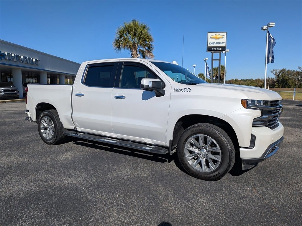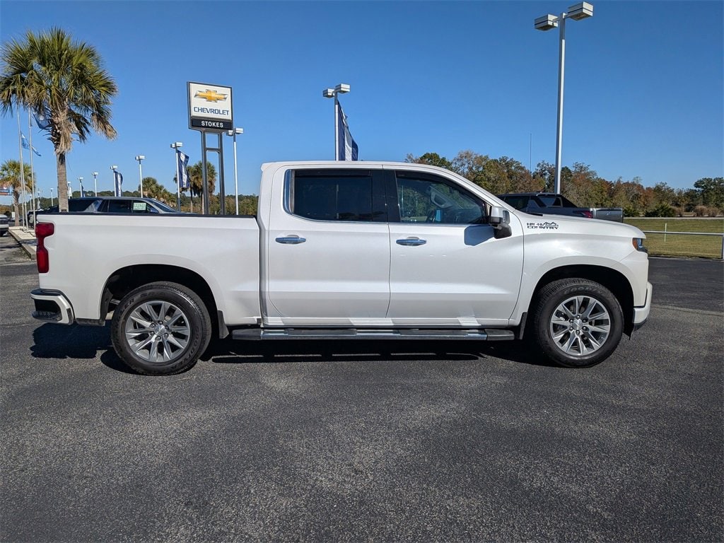 NAVIGATION SYSTEM, BACKUP CAMERA, AGGRESSIVE PRICING, ALLOY WHEELS, BLUETOOTH, CLIMATE PACKAGE, HEAT PACKAGE, LEATHER SEATS, MEMORY PACKAGE, POWER PACKAGE, REMOTE START, TECHNOLOGY PACKAGE, TOW PACKAGE, APPLE CAR PLAY, ANDROID AUTO, 8-Speed Automatic, 4WD, Jet Black Leather. Iridescent Pearl Tricoat 2019 Chevrolet Silverado 1500 High Country 4WD 8-Speed Automatic EcoTec3 5.3L V8Odometer is 3042 miles below market average!**** Stokes Chevrolet is not responsible for any price discrepancies, statements of condition, or incorrect equipment listed on a vehicle. Vehicles may have minor road chips, light scratches, wheel scuffs, etc. Depending on the age of the vehicle, normal wear and tear should be anticipated. We may or may not have all the keys and floor mats. We will be happy to obtain extra oneâs for you at our dealer cost. Price does include all applicable rebates and incentives offered by manufacturer and/or finance source and $1000 trade assistance, must have trade to qualify. Price does not include dealer addendum *Reconditioning/UCI. The full cash price charged at any dealership depends on many factors, including all products and services bought with the vehicle. It is the customer's sole responsibility to verify the existence and condition of any equipment listed. Neither the dealership nor dealer website provider are responsible for misprints on prices or equipment. This site, and all information and materials appearing on it, are presented to the user as is without warranty of any kind, either express or implied. Customers must mention this advertisement to receive the advertised price. While great effort is made to ensure the accuracy of the information on this site, errors do occur so please verify information with a customer service rep. This is easily done by calling us at (843)761-8084 or by visiting us at the dealership. Anyone that submits a form online that includes a phone number has agreed to all forms of contact, which would include, calling and texting.. All vehicles are subject to prior sale. Prices shown do not tax, tag, registration, title, license charges and $599.50 Closing Fee on all vehicles. Vehicles shown at different locations are not currently in our inventory (Not in Stock) but can be made available to you at our location within a reasonable date from the time of your request, not to exceed one week.