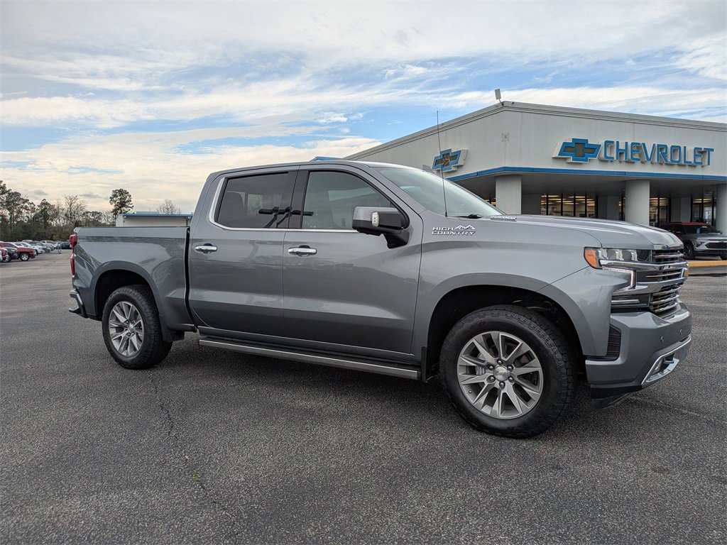 BACKUP CAMERA, AGGRESSIVE PRICING, ALLOY WHEELS, BLUETOOTH, CLIMATE PACKAGE, REMOTE START, 10-Speed Automatic, 4WD, Jet Black Leather. Satin Steel Metallic 2021 Chevrolet Silverado 1500 High Country 4WD 10-Speed Automatic 3.0L I6Odometer is 42922 miles below market average! 22/26 City/Highway MPG**** Stokes Chevrolet is not responsible for any price discrepancies, statements of condition, or incorrect equipment listed on a vehicle. Vehicles may have minor road chips, light scratches, wheel scuffs, etc. Depending on the age of the vehicle, normal wear and tear should be anticipated. We may or may not have all the keys and floor mats. We will be happy to obtain extra oneâs for you at our dealer cost. Price does include all applicable rebates and incentives offered by manufacturer and/or finance source and $1000 trade assistance, must have trade to qualify. Price does not include dealer addendum *Reconditioning/UCI. The full cash price charged at any dealership depends on many factors, including all products and services bought with the vehicle. It is the customer's sole responsibility to verify the existence and condition of any equipment listed. Neither the dealership nor dealer website provider are responsible for misprints on prices or equipment. This site, and all information and materials appearing on it, are presented to the user as is without warranty of any kind, either express or implied. Customers must mention this advertisement to receive the advertised price. While great effort is made to ensure the accuracy of the information on this site, errors do occur so please verify information with a customer service rep. This is easily done by calling us at (843)761-8084 or by visiting us at the dealership. Anyone that submits a form online that includes a phone number has agreed to all forms of contact, which would include, calling and texting.. All vehicles are subject to prior sale. Prices shown do not tax, tag, registration, title, license charges and $599.50 Closing Fee on all vehicles. Vehicles shown at different locations are not currently in our inventory (Not in Stock) but can be made available to you at our location within a reasonable date from the time of your request, not to exceed one week.