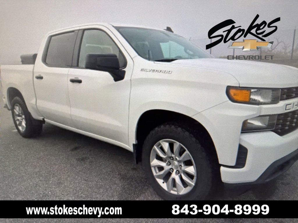 ALLOY WHEELS, BLUETOOTH, CLIMATE PACKAGE, TOW PACKAGE, 8-Speed Automatic, Black Cloth. Summit White 2021 Chevrolet Silverado 1500 Custom RWD 8-Speed Automatic 2.7L TurboOdometer is 15254 miles below market average! Recent Arrival!**** Stokes Chevrolet is not responsible for any price discrepancies, statements of condition, or incorrect equipment listed on a vehicle. Vehicles may have minor road chips, light scratches, wheel scuffs, etc. Depending on the age of the vehicle, normal wear and tear should be anticipated. We may or may not have all the keys and floor mats. We will be happy to obtain extra oneâs for you at our dealer cost. Price does include all applicable rebates and incentives offered by manufacturer and/or finance source and $1000 trade assistance, must have trade to qualify. Price does not include dealer addendum *Reconditioning/UCI. The full cash price charged at any dealership depends on many factors, including all products and services bought with the vehicle. It is the customer's sole responsibility to verify the existence and condition of any equipment listed. Neither the dealership nor dealer website provider are responsible for misprints on prices or equipment. This site, and all information and materials appearing on it, are presented to the user as is without warranty of any kind, either express or implied. Customers must mention this advertisement to receive the advertised price. While great effort is made to ensure the accuracy of the information on this site, errors do occur so please verify information with a customer service rep. This is easily done by calling us at (843)761-8084 or by visiting us at the dealership. Anyone that submits a form online that includes a phone number has agreed to all forms of contact, which would include, calling and texting.. All vehicles are subject to prior sale. Prices shown do not tax, tag, registration, title, license charges and $599.50 Closing Fee on all vehicles. Vehicles shown at different locations are not currently in our inventory (Not in Stock) but can be made available to you at our location within a reasonable date from the time of your request, not to exceed one week.