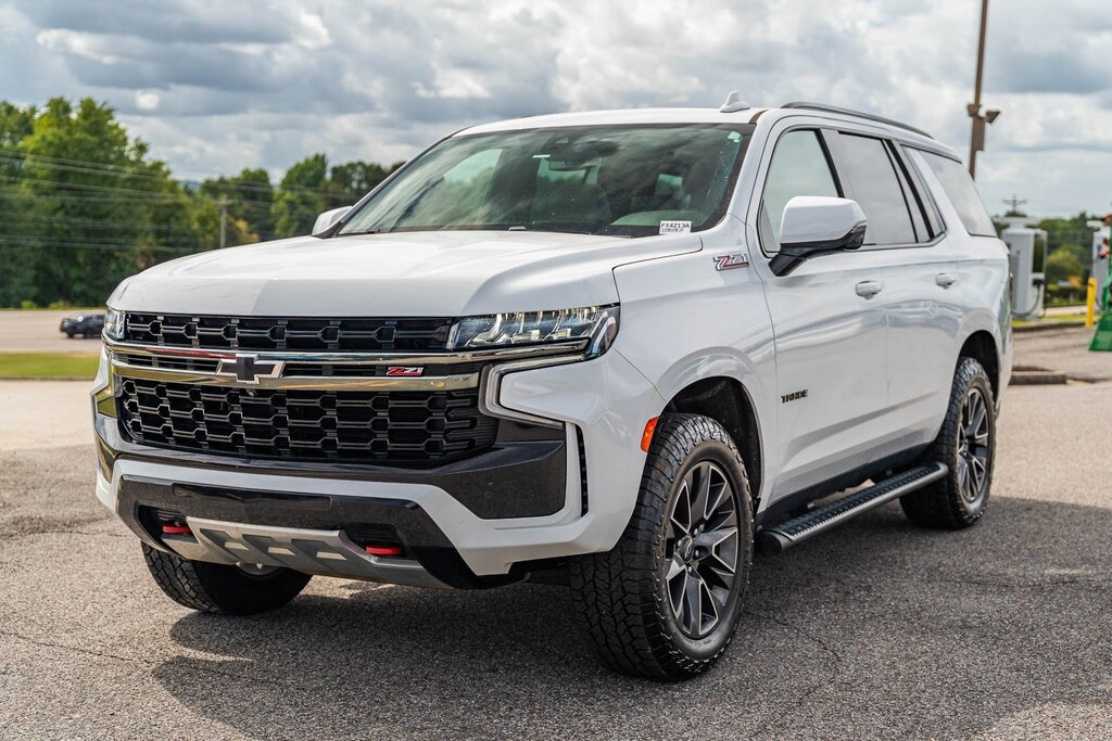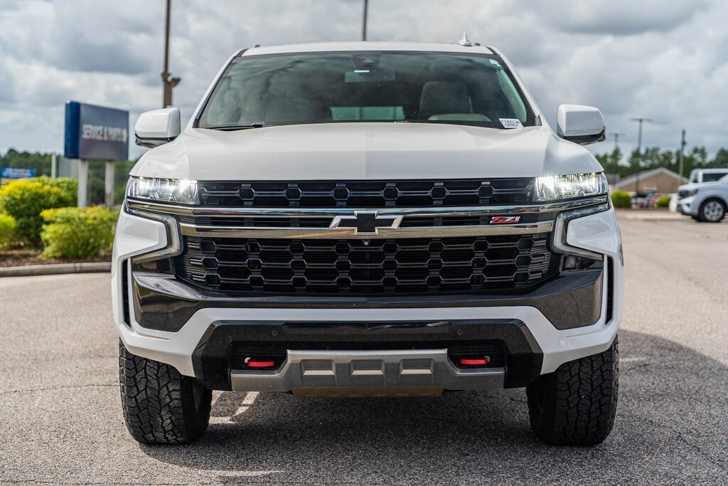 This vehicle comes equipped with Advanced Trailering Package (Advanced Trailering System, Hitch Guidance w/Hitch View, and Integrated Trailer Brake Controller), Driver Alert Package (Front & Rear Park Assist, Lane Change Alert w/Side Blind Zone Alert, Lane Keep Assist w/Lane Departure Warning, and Rear Cross Traffic Alert), License Plate Front Mounting Package, Luxury Package (2nd Row Pwr Release 60/40 Split-Folding Bench Seat, 3rd Row 60/40 Power-Folding Split-Bench Seat, Automatic Heated Steering Wheel, HD Surround Vision, Heated 2nd Row Outboard Seats, Memory Settings, Outside Heated Power-Adjustable Mirrors, Power Tilt & Telescopic Steering Column, and Rear Pedestrian Alert), Max Trailering Package (Extra Capacity Cooling System), Preferred Equipment Group 2Z7 (1st & 2nd Row Color-Keyed Carpeted Floor Mats, 2 USB Data Ports, 2-Speed Active Electronic AutoTrac Transfer Case, Auto-Dimming Inside Rear-View Mirror, Black Tubular Assist Steps, Bright Front & Rear Door Sill Plates, Color-Keyed Carpeting Floor Covering, Driver & Front Outboard Passenger Airbags, Floor Console w/Storage Area, Front High-Approach Angle Fascia, Hands-Free Rear Power Programmable Liftgate, HD Radio, Hill Descent Control, Infotainment Display, Leather-Wrapped Steering Wheel, LED Daytime Running Lamps, Memory Settings for Driver, Red Horizontal-Mounted Recovery Hooks, Remote Start, SiriusXM Radio w/360L, and Universal Home Remote), Z71 Signature Package (DISC) (Dual-Pane Power Panoramic Sunroof), 4WD, Gray Leather, 10-Way Power Driver & Passenger Seat Adjusters, 3.23 Rear Axle Ratio, 3rd row seats: split-bench, 4-Wheel Disc Brakes, 9 Speakers, ABS brakes, Air Conditioning, All-Weather Floor Mats, Alloy wheels, AM/FM radio: SiriusXM with 360L, Apple CarPlay/Android Auto, Auto High-beam Headlights, Auto-dimming Rear-View mirror, Automatic temperature control, Bose 9-Speaker Stereo Audio System Feature, Brake assist, Bumpers: body-color, Compass, Delay-off headlights, Driver door bin, Driver vanity mirror, Dual front impact airbags, Dual front side impact airbags, Electronic Stability Control, Emergency communication system: OnStar and Chevrolet connected services capable, Four wheel independent suspension, Front anti-roll bar, Front Bucket Seats, Front Center Armrest, Front dual zone A/C, Front High-Back Reclining Bucket Seats, Front reading lights, Fully automatic headlights, Garage door transmitter, Heated door mirrors, Heated Driver & Front Passenger Seats, Heated front seats, Illuminated entry, Leather Seat Trim, Leather steering wheel, Low tire pressure warning, Memory seat, Occupant sensing airbag, Outside temperature display, Overhead airbag, Overhead console, Panic alarm, Passenger door bin, Passenger vanity mirror, Power door mirrors, Power driver seat, Power Liftgate, Power passenger seat, Power Release 2nd Row Bucket Seats, Power steering, Power windows, Premium audio system: Chevrolet Infotainment 3, Premium Smooth Ride Suspension, Radio: Chevrolet Infotainment 3 Plus System, Rain sensing wipers, Rear air conditioning, Rear anti-roll bar, Rear reading lights, Rear seat center armrest, Rear window defroster, Rear window wiper, Remote keyless entry, Roof rack: rails only, Security system, Speed control, Speed-sensing steering, Split folding rear seat, Spoiler, Steering wheel mounted audio controls, Tachometer, Telescoping steering wheel, Tilt steering wheel, Traction control, Trip computer, Variably intermittent wipers, Voltmeter, and Wheels: 20" x 9" Machined Aluminum.