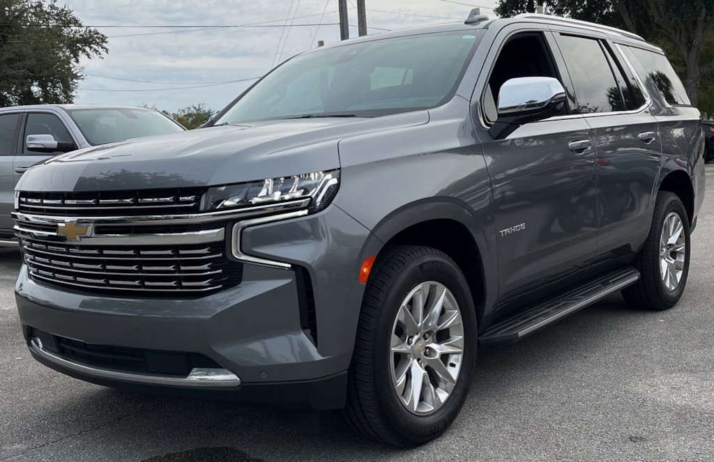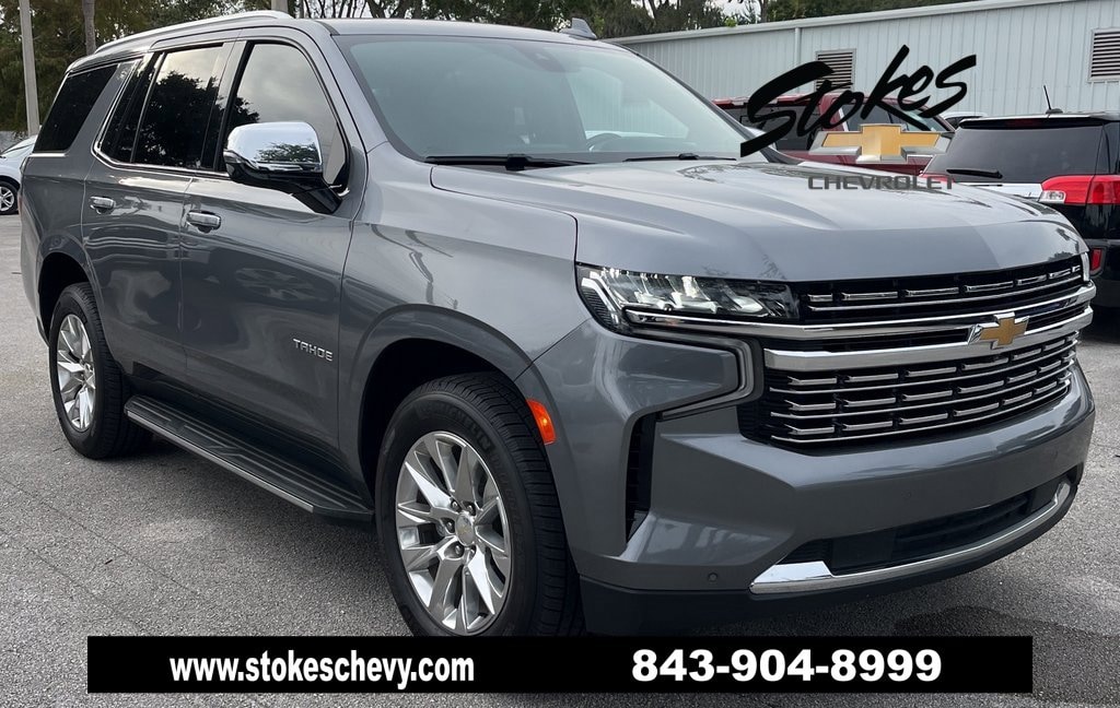 Jet Black Leather. Satin Steel Metallic 2021 Chevrolet Tahoe Premier RWD 10-Speed Automatic with Overdrive EcoTec3 5.3L V8