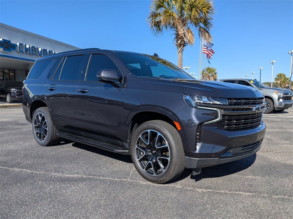 4WD, Jet Black/Victory Red Leather. Dark Ash Metallic 2022 Chevrolet Tahoe RST 4WD 10-Speed Automatic with Overdrive EcoTec3 5.3L V8