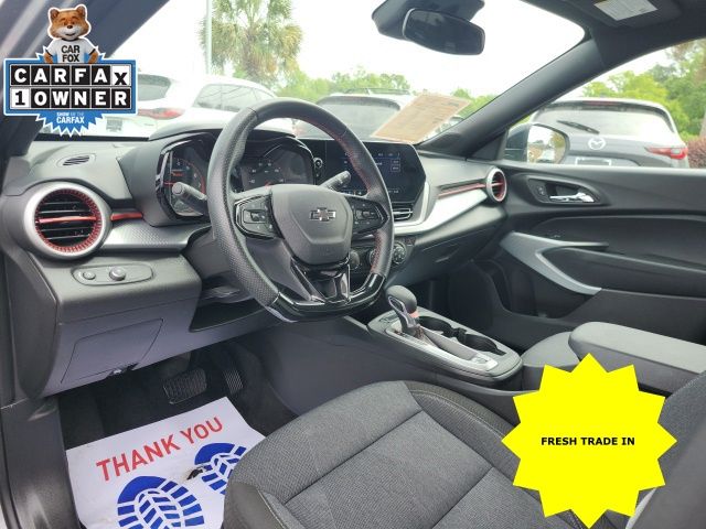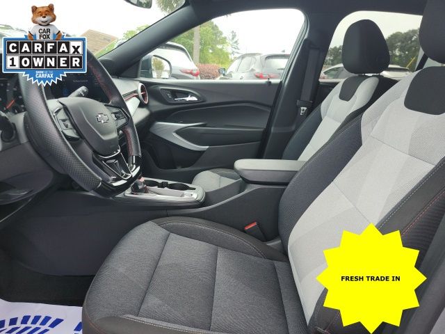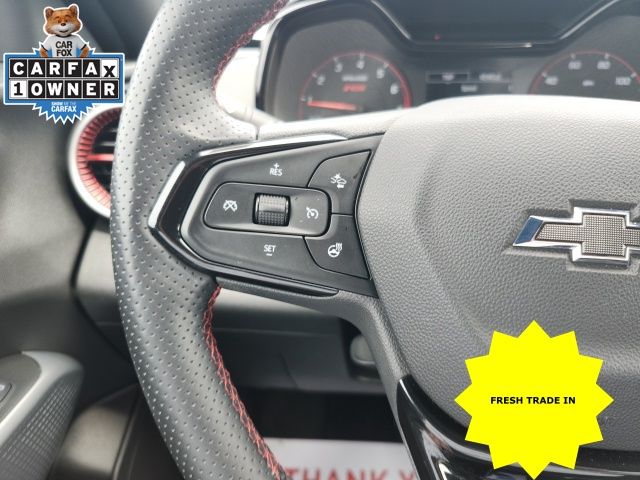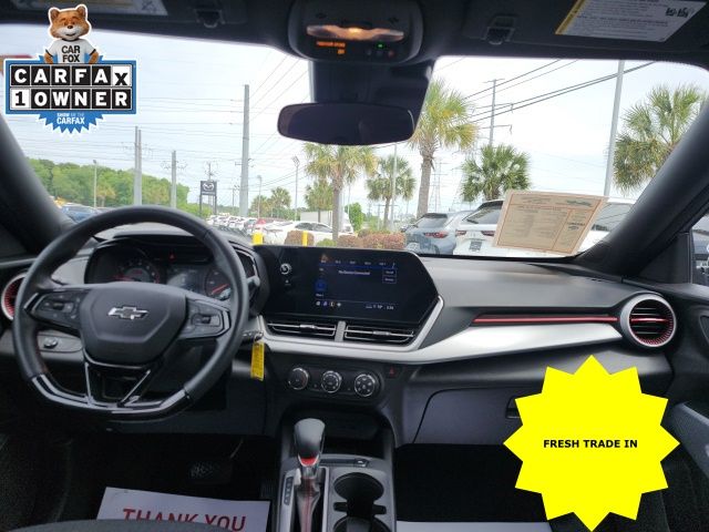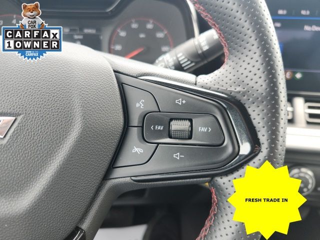 Step inside the Trax 1RS and you'll be greeted by a premium Jet Black interior, complete with a heated steering wheel and heated front seats for added comfort. The Chevrolet Infotainment 3 system with SiriusXM keeps you connected and entertained, while the 4-speaker audio system delivers crisp, clear sound.
