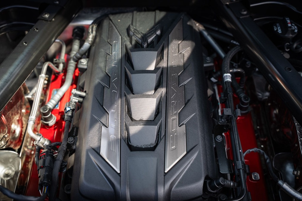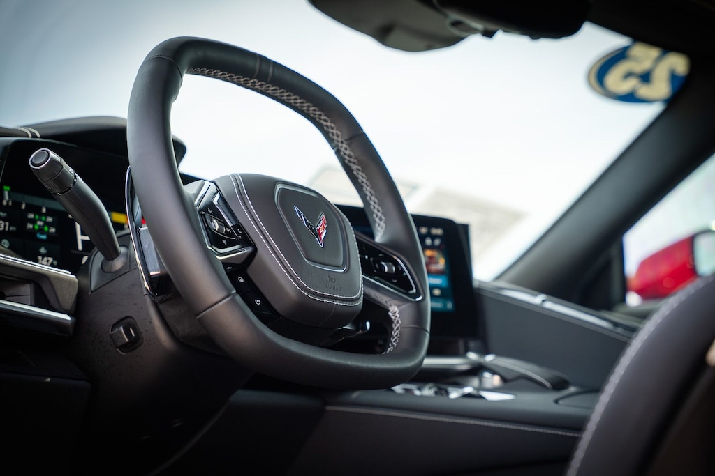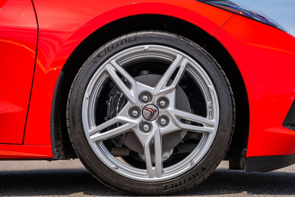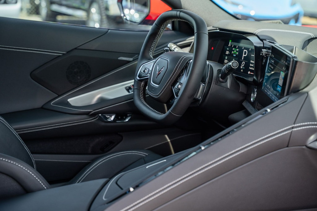 This vehicle comes equipped with Preferred Equipment Group 1LT, GM Certified, 10 Speakers, 4-Wheel Disc Brakes, 8-Way Power Driver Seat Adjuster, 8-Way Power Passenger Seat Adjuster, ABS brakes, Air Conditioning, Alloy wheels, AM/FM radio: SiriusXM, Auto High-beam Headlights, Auto-dimming Rear-View mirror, Automatic temperature control, Body-Color Removable Roof Panel, Brake assist, Bumpers: body-color, Compass, Delay-off headlights, Driver door bin, Driver vanity mirror, Dual front impact airbags, Dual front side impact airbags, Electronic Stability Control, Emergency communication system: OnStar and Chevrolet connected services capable, Four wheel independent suspension, Front anti-roll bar, Front Bucket Seats, Front Center Armrest, Front dual zone A/C, Front reading lights, Fully automatic headlights, GT1 Bucket Seats, Heated door mirrors, Illuminated entry, Leather Shift Knob, Leather steering wheel, Low tire pressure warning, Mulan Lthr Seating Surfaces w/Perforated Inserts, Navigation System, Occupant sensing airbag, Outside temperature display, Overhead console, Panic alarm, Passenger door bin, Passenger vanity mirror, Power door mirrors, Power driver seat, Power passenger seat, Power steering, Power windows, Premium audio system: Chevrolet Infotainment 3 Plus, Radio data system, Radio: Chevrolet Infotainment 3 Premium System, Rear anti-roll bar, Rear window defroster, Remote keyless entry, Speed control, Speed-sensing steering, Sport steering wheel, Steering wheel mounted audio controls, Tachometer, Telescoping steering wheel, Tilt steering wheel, Traction control, Trip computer, Turn signal indicator mirrors, Variably intermittent wipers, Voltmeter, and Wheels: 19" x 8.5" Fr/20" x 11" Rr Bright Silver.